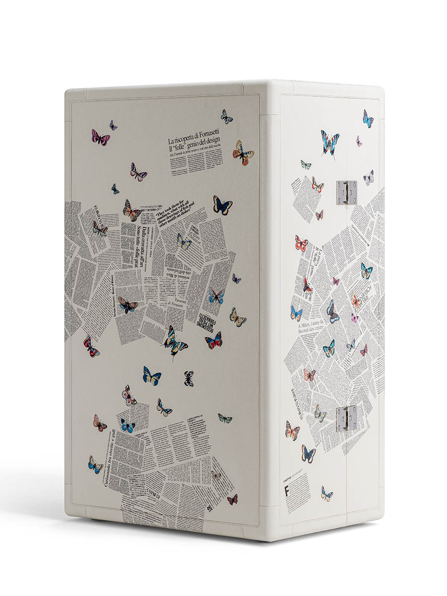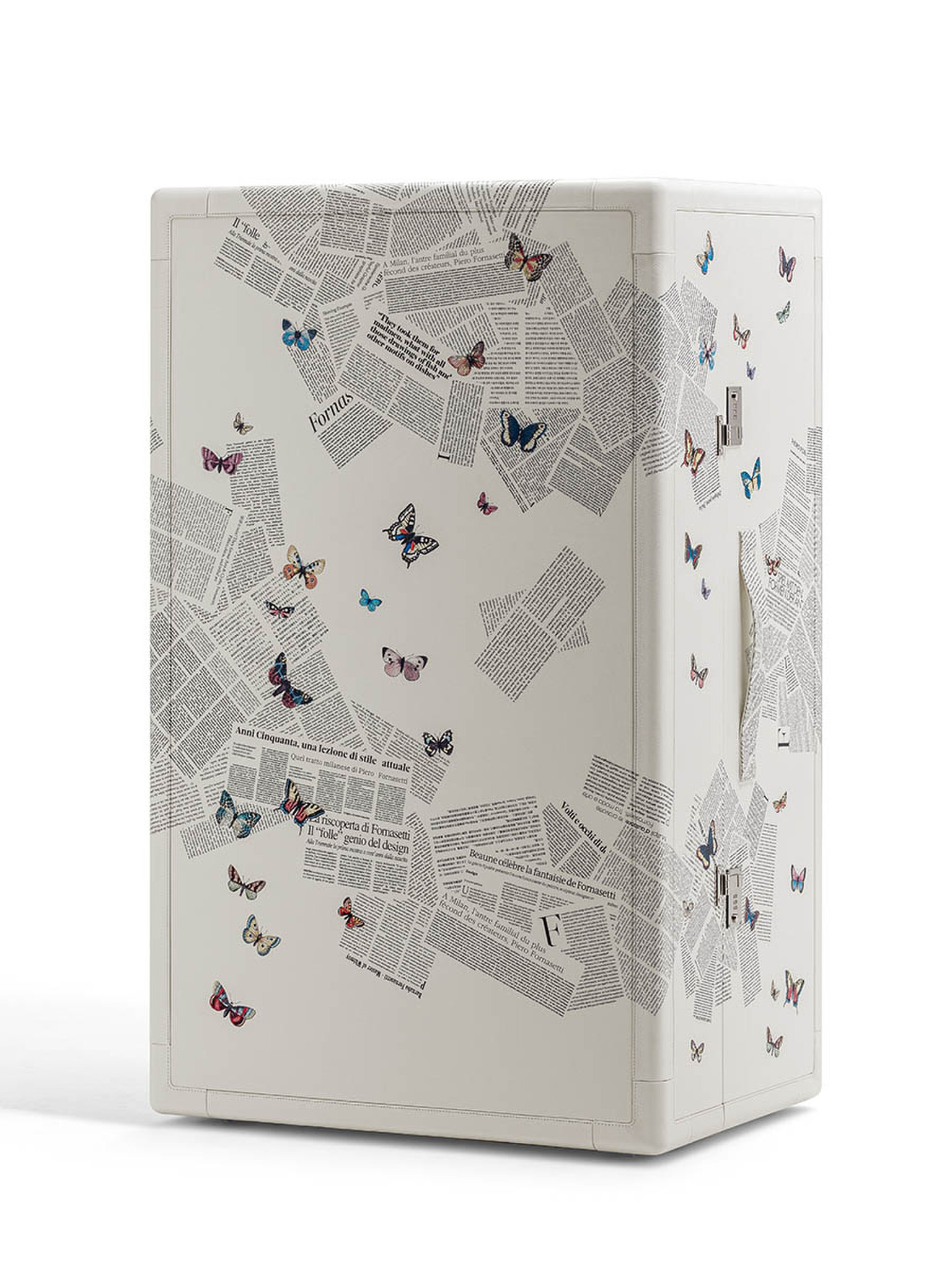 Легендарный предмет, напоминающий о золотом мире "Ревущих двадцатых", долгих поездках на пароходе и вечеринках в "Великом Гэтсби", шкаф для напитков Isidoro является результатом сотрудничества Poltrona Frau и Fornasetti, еще одного бренда, известного во всем мире благодаря дизайну и декорированию уникальных и неподвластных времени аксессуаров для мебели. Деревянный сундук воплощает в себе все черты высокого мастерства и итальянской креативности, характерные для Fornasetti и Poltrona Frau. Это деревянный сундук, обтянутый тисненой кожей с одним из самых характерных узоров архива Форназетти - декором "Ultime Noitizie". Созданный в 1950 году Пьеро Форназетти, его сын Барнаба переработал дизайн, внес изменения и вдохнул новую жизнь в модель "Ultime Notizie". Игривый обман зрения, который побуждает зрителя к "активному" и творческому видению: кожа выглядит как бумага, а бумага изначально задумывалась как печать на шелке. Визуальная легкость принта также является приглашением к концептуальной легкости: “Не зацикливайтесь на новостях, потому что они изменчивы".