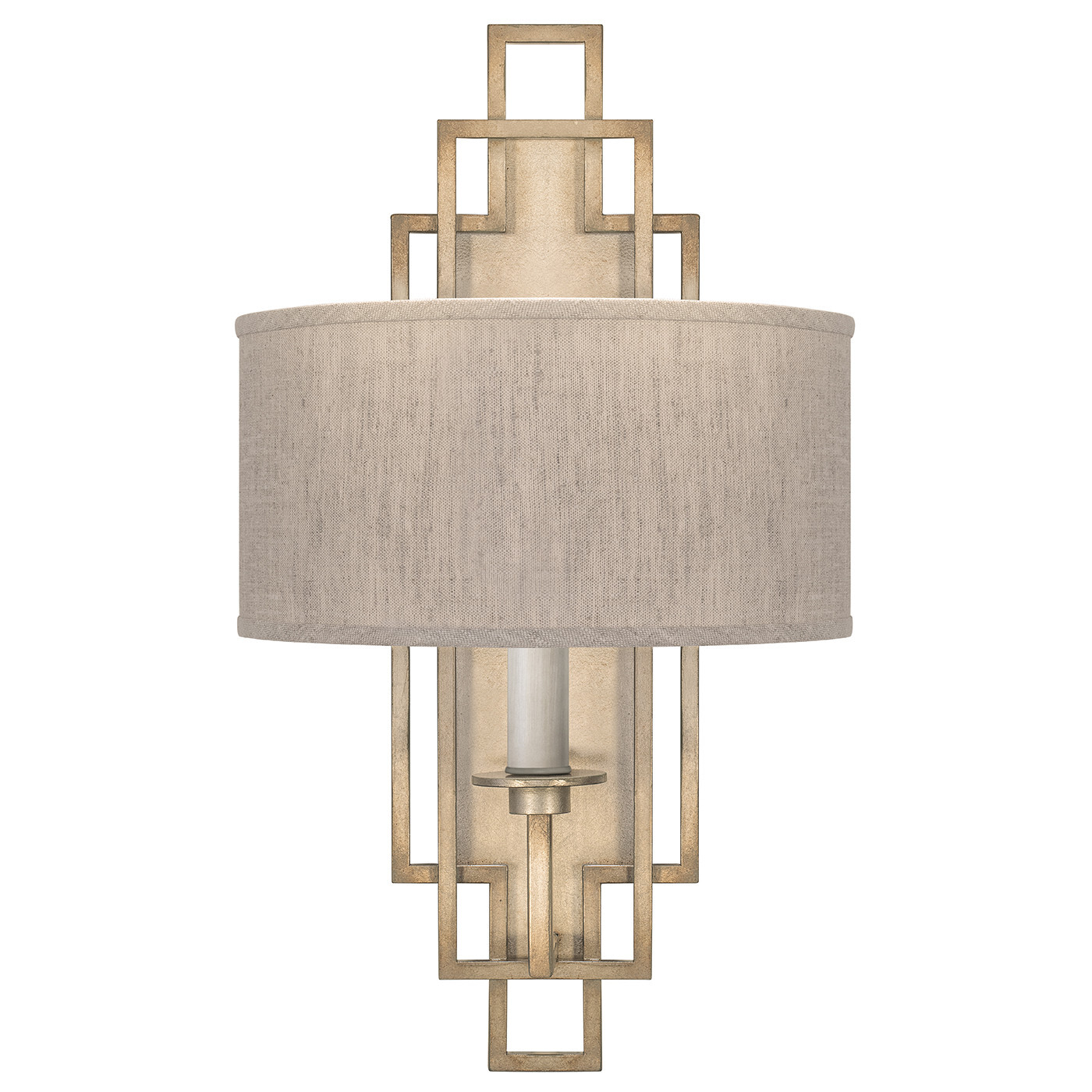 Это антикварное бра, выполненное опытными мастерами по металлу, вдохновлено уникальным переходным периодом в архитектуре и дизайне Сьенфуэгоса 1920-х годов. Доступны варианты бронзовой отделки с оттенком ткани Greige или без оттенка, серой отделки с оттенком ткани Greige или без оттенка, золотой отделки с оттенком ткани Greige или без оттенка, отделки сусальным золотом с оттенком ткани White или без оттенка и отделки сусальным серебром с оттенком ткани White или без оттенка.