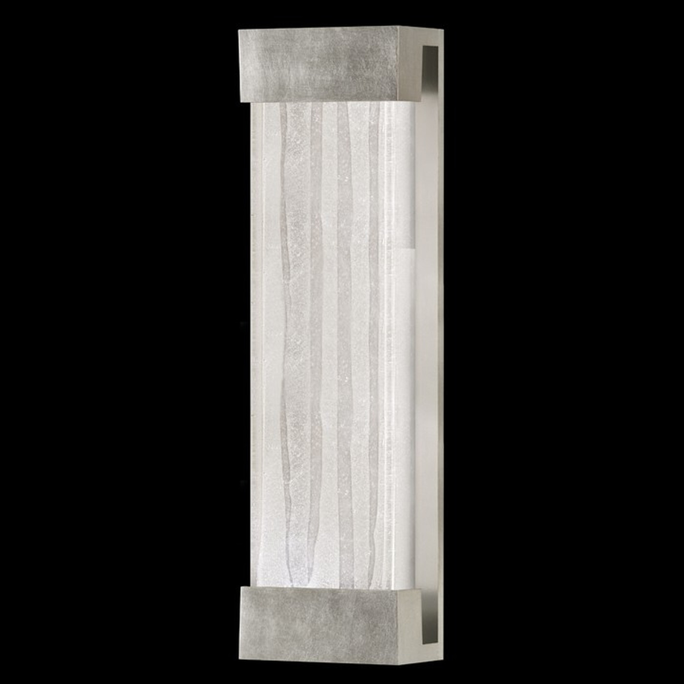 Настенное бра из художественного стекла, изготовленное из алюминия, с полированным блоком из хрустальных осколков ручной работы. Доступно в цветах сусального золота, сусального серебра и серебристой отделки для использования внутри помещений и бронзовой отделки для наружного использования. Этот светильник сфотографирован с ярко-белой лампой накаливания 4100K (США). Для экспорта мы рекомендуем лампы CFL с резьбой мощностью 13 Вт. Экспортные конфигурации не регулируются по яркости. Дополнительная информация: Серебристый и бронзовый цвета предназначены для использования внутри или снаружи помещений. Покрытие Silver Leaf предназначено только для использования внутри помещений. Настенные светильники обеспечивают освещение мойки вверх и вниз через полупрозрачные панели на каждом конце.