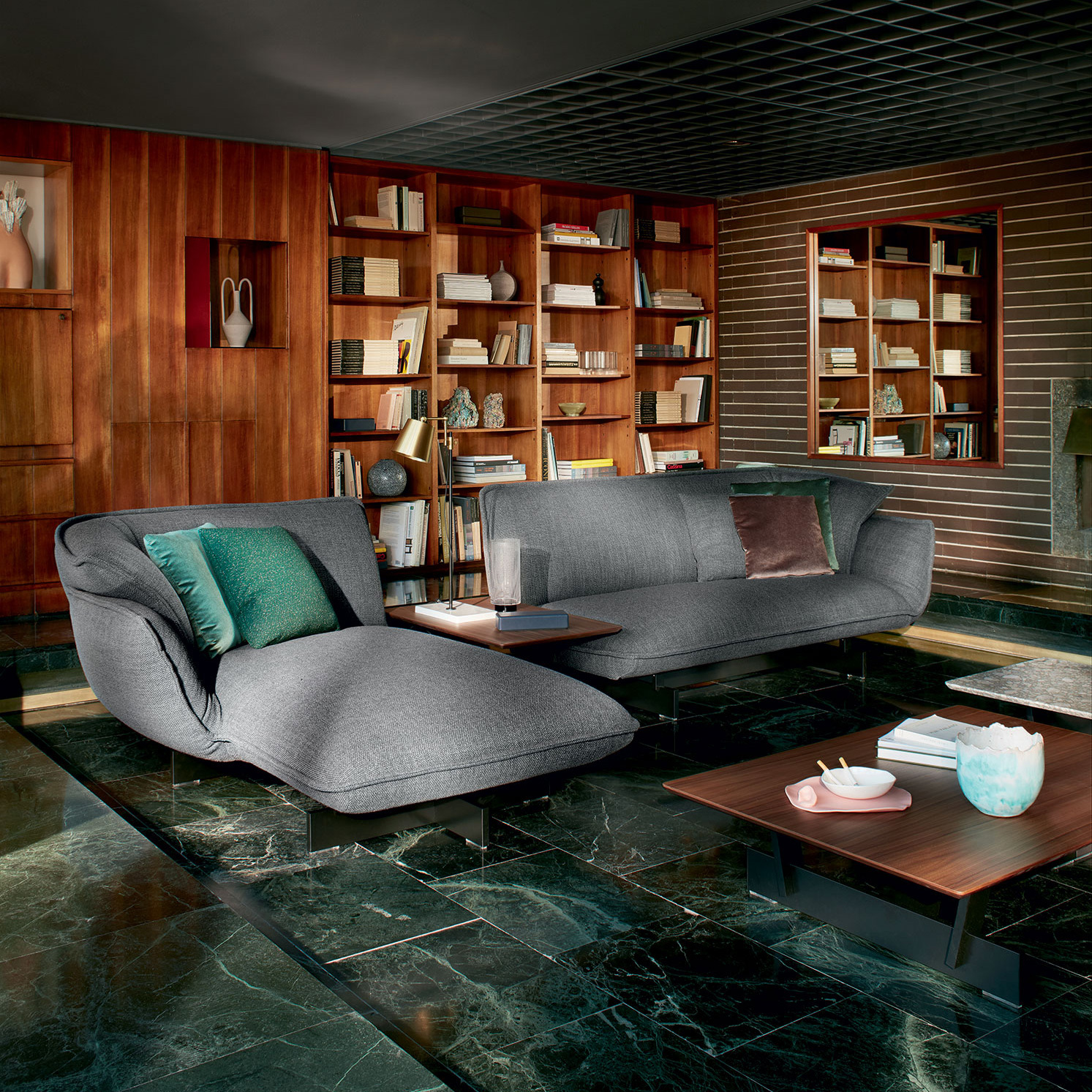 STRICTLY AN EMBRACE - это инновационная система мягких кресел, поддерживаемая балкой, которая позволяет комбинировать секционные элементы по индивидуальному заказу, создавая атмосферу расслабления и функциональности в современной гостиной.