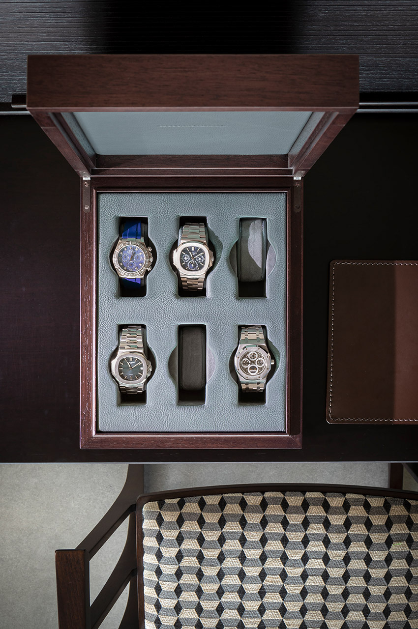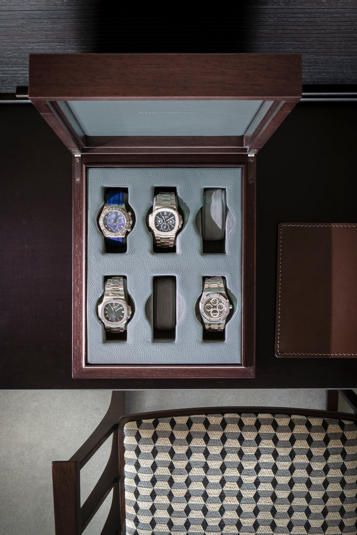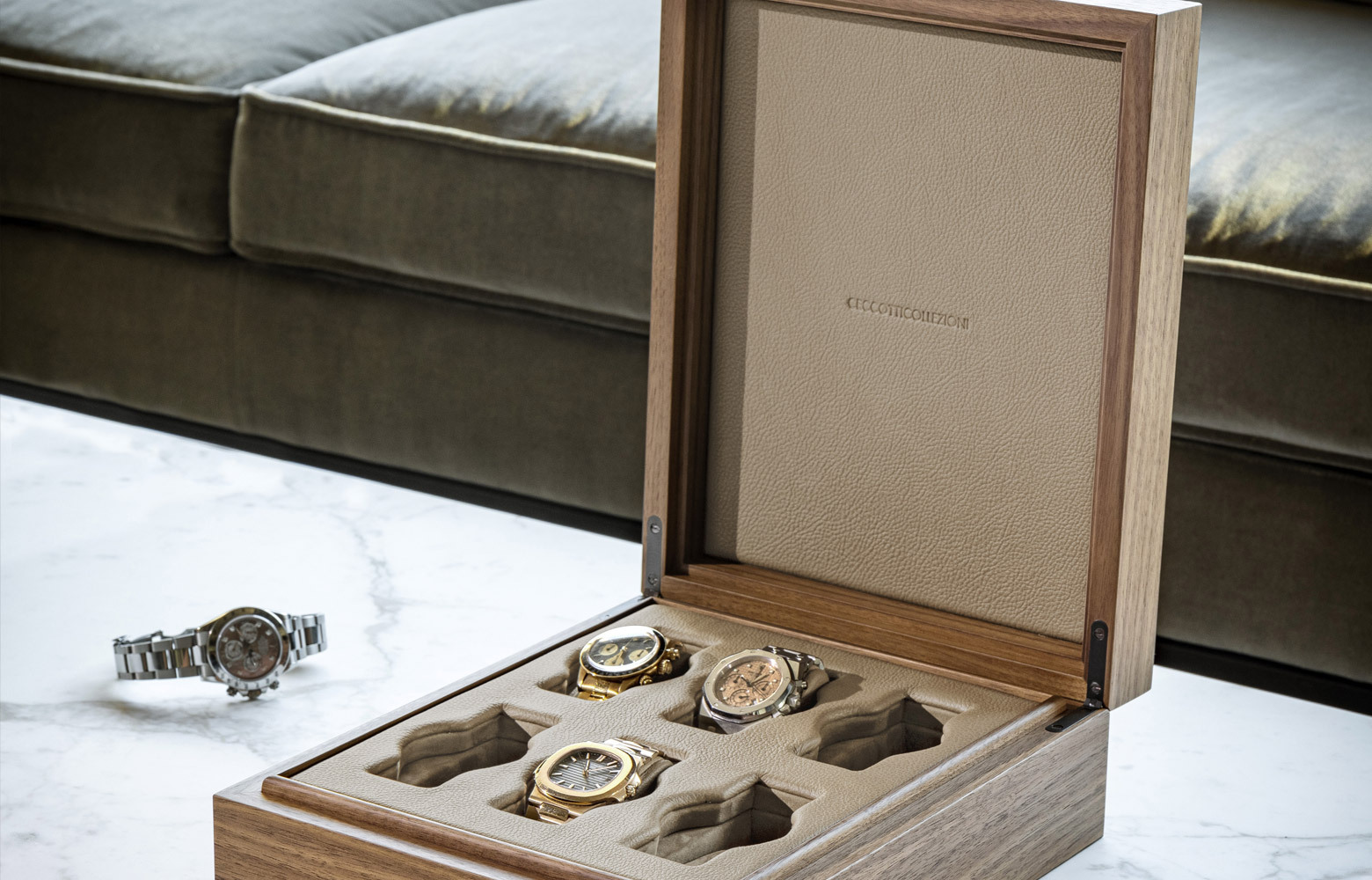 Футляр для часов изготовлен из фанеры американского ореха облицованной тополем и доступен в 2-х различных размерах. В маленьком футляре можно разместить до 6 часов а в большом - до 10. Внутренние детали обтянуты натуральной кожей Poltrona Frau а подушки из бархатистой кожи нубук от Poltrona Frau доступны в 4 цветовых сочетаниях. Отличайте друг друга: коллекция дизайнерских предметов созданных на основе знаний ремесленника о роскоши которые помогают подчеркнуть индивидуальность характер и уникальность каждого человека. Изделия которые воплощают в себе особые характеристики мастерства Ceccotti Collezioni и качество сырья такого как дерево кожа и металлы. Эксклюзивные личные почти интимные предметы рассказывающие историю в истории вещи которые объединяют совершенство мира Ceccotti с качеством жизни в доме.