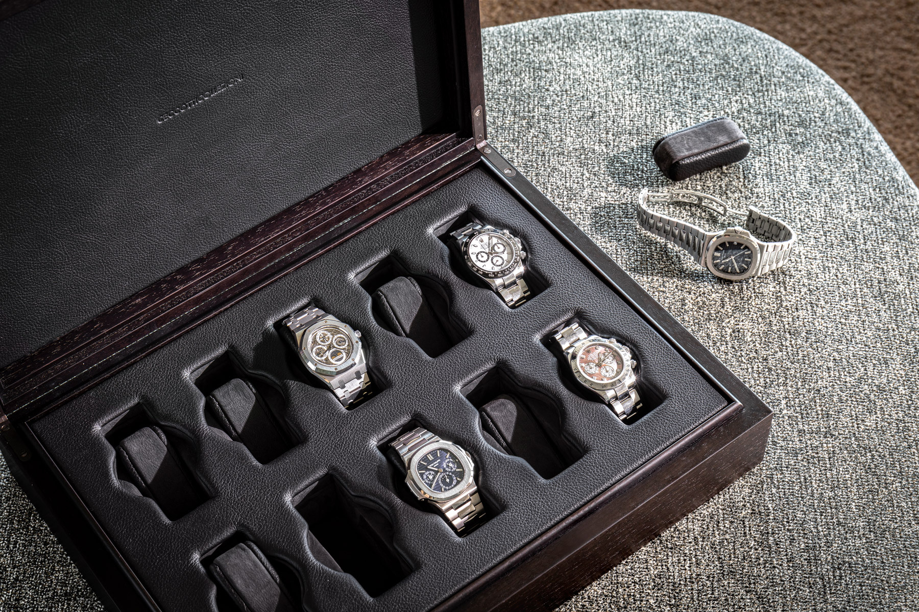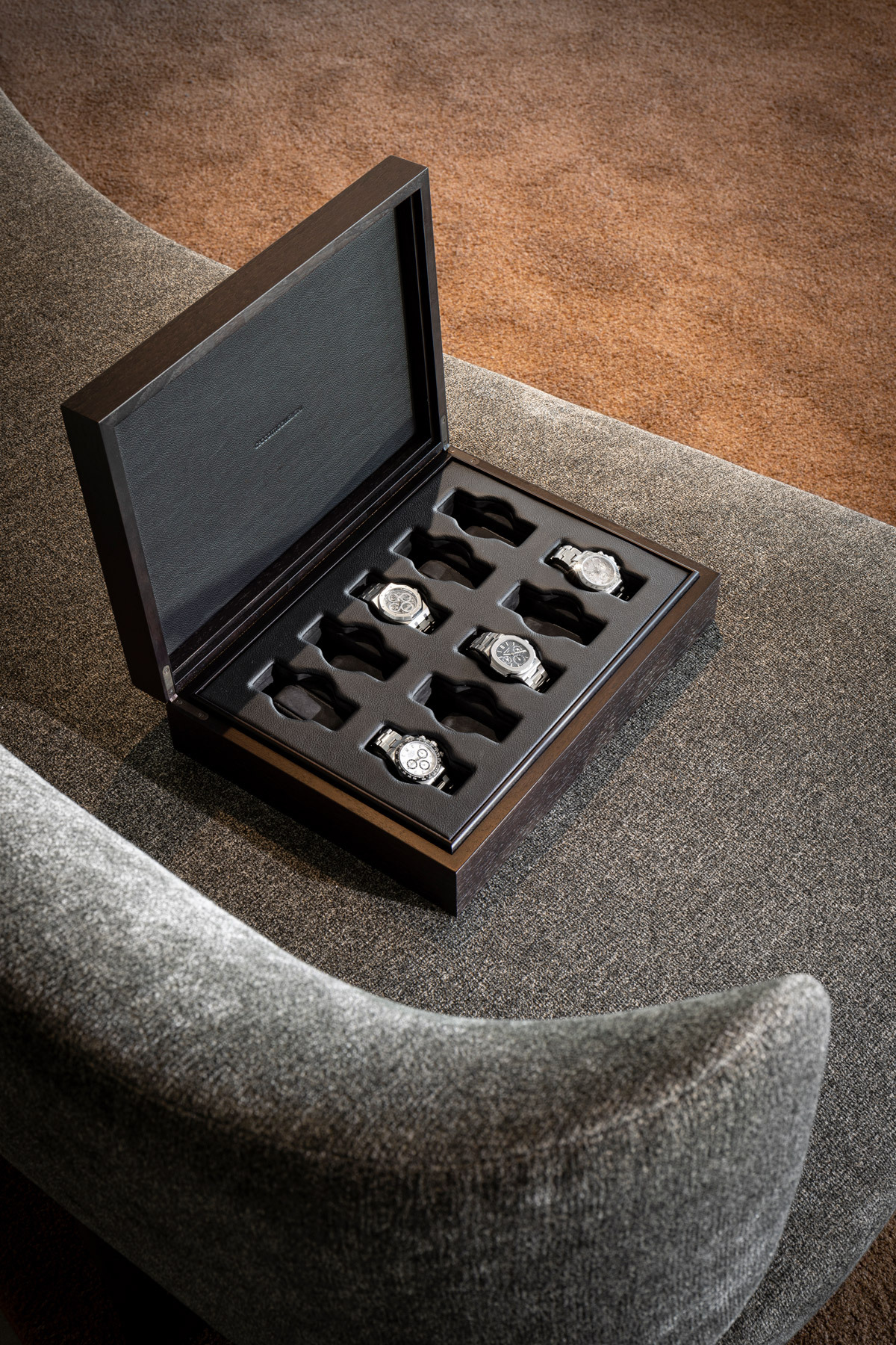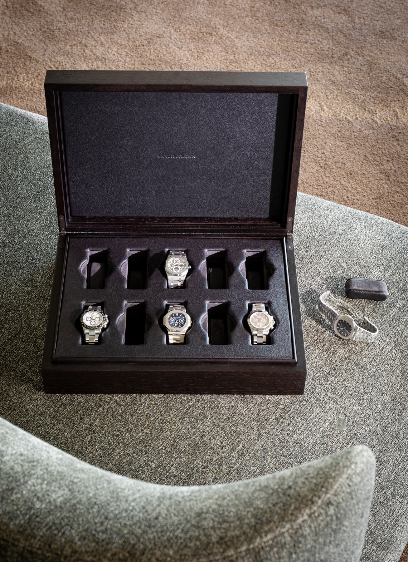 Футляр для часов изготовлен из фанеры американского ореха облицованной тополем и доступен в 2-х различных размерах. В маленьком футляре можно разместить до 6 часов а в большом - до 10. Внутренние детали обтянуты натуральной кожей Poltrona Frau а подушки из бархатистой кожи нубук от Poltrona Frau доступны в 4 цветовых сочетаниях. Отличайте друг друга: коллекция дизайнерских предметов созданных на основе знаний ремесленника о роскоши которые помогают подчеркнуть индивидуальность характер и уникальность каждого человека. Изделия которые воплощают в себе особые характеристики мастерства Ceccotti Collezioni и качество сырья такого как дерево кожа и металлы. Эксклюзивные личные почти интимные предметы рассказывающие историю в истории вещи которые объединяют совершенство мира Ceccotti с качеством жизни в доме.