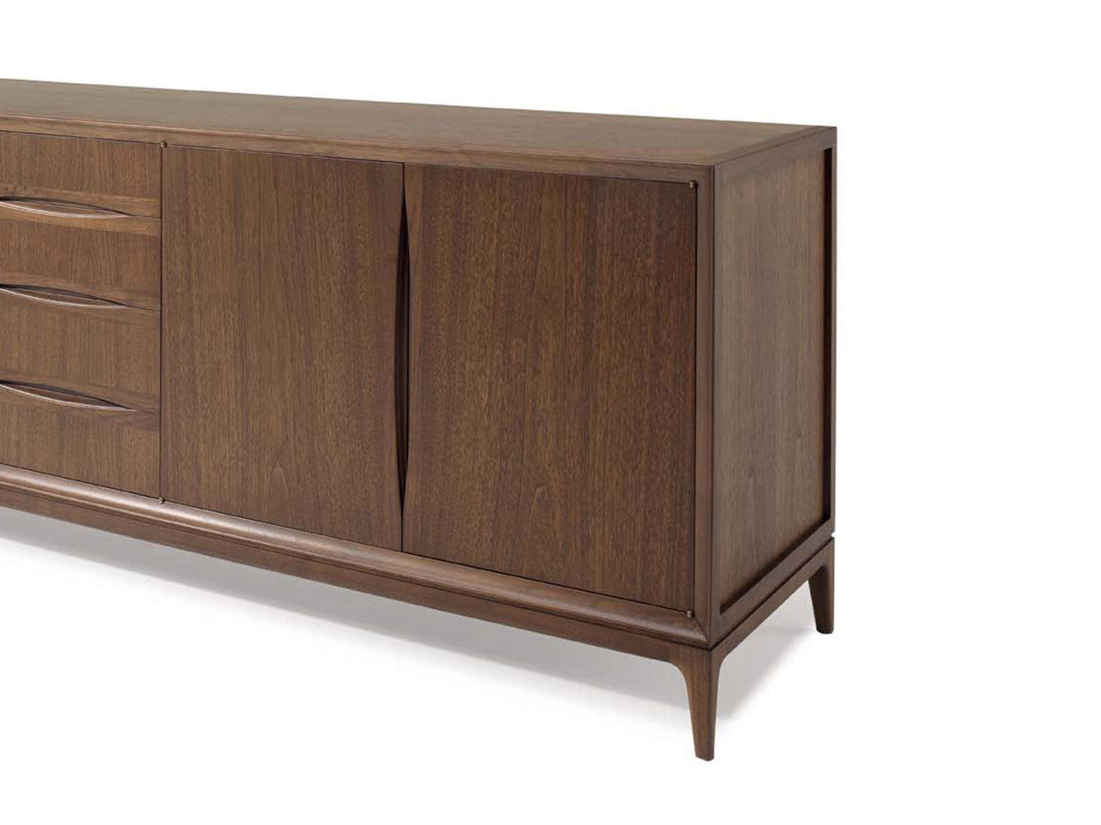 Шкаф Brad credenza представляющий собой идеальный компромисс между мастерством исполнения и дизайном был разработан студией CC studio в 2012 году. Его почти монолитная архитектура подчеркивается тонкими ножками. Доступный в четырех вариантах отделки он гарантирует максимальную индивидуализацию. Brad предлагает достаточно места для хранения: помимо четырех дверей с внутренней полкой он также оснащен четырьмя центральными выдвижными ящиками. Еще одно изделие Ceccotti Collezioni из массива американского ореха и шпонированной фанеры которое с помощью дерева стремится переписать историю самых традиционных шкафов для хранения не выходя при этом за рамки привычного.