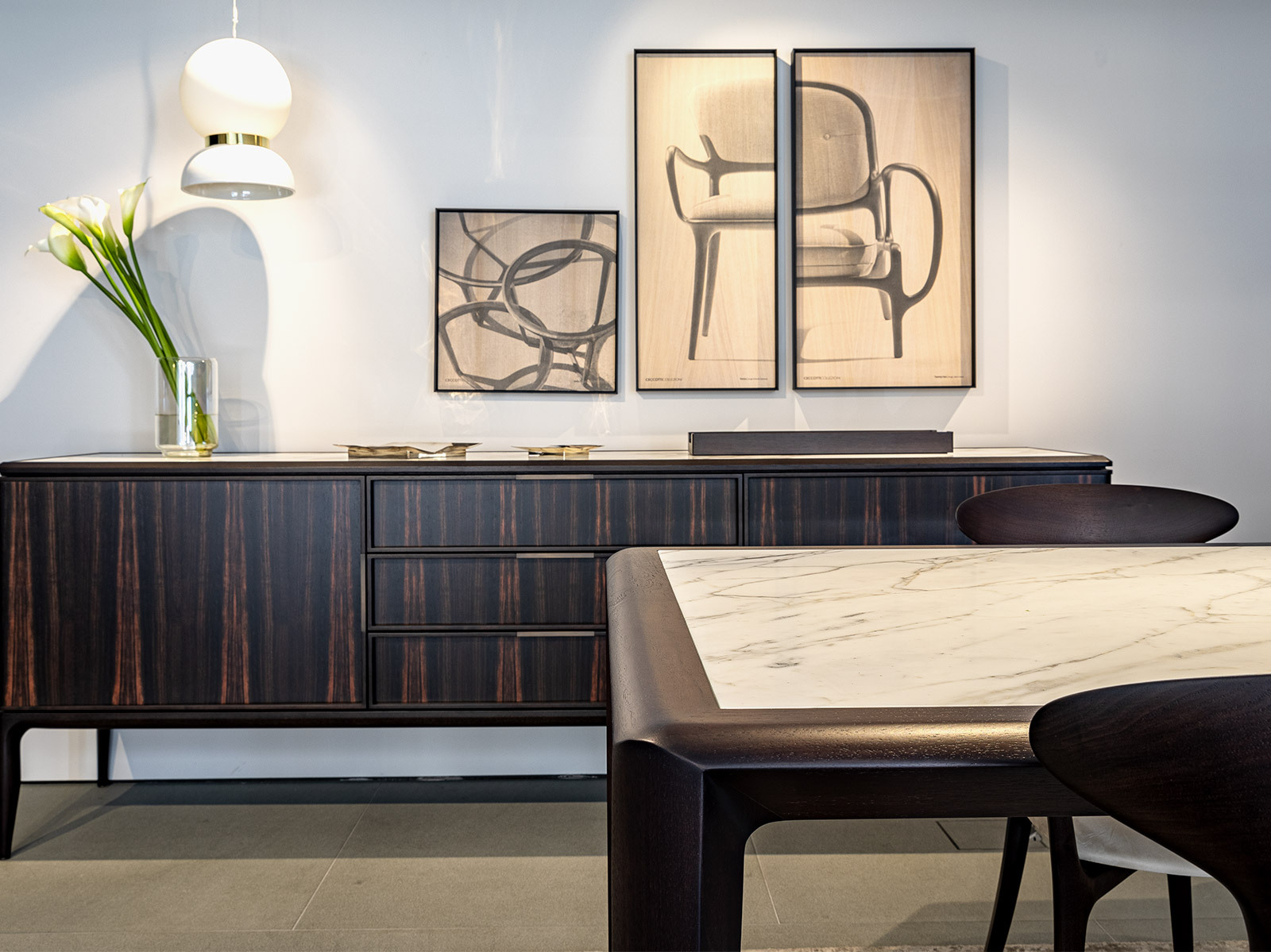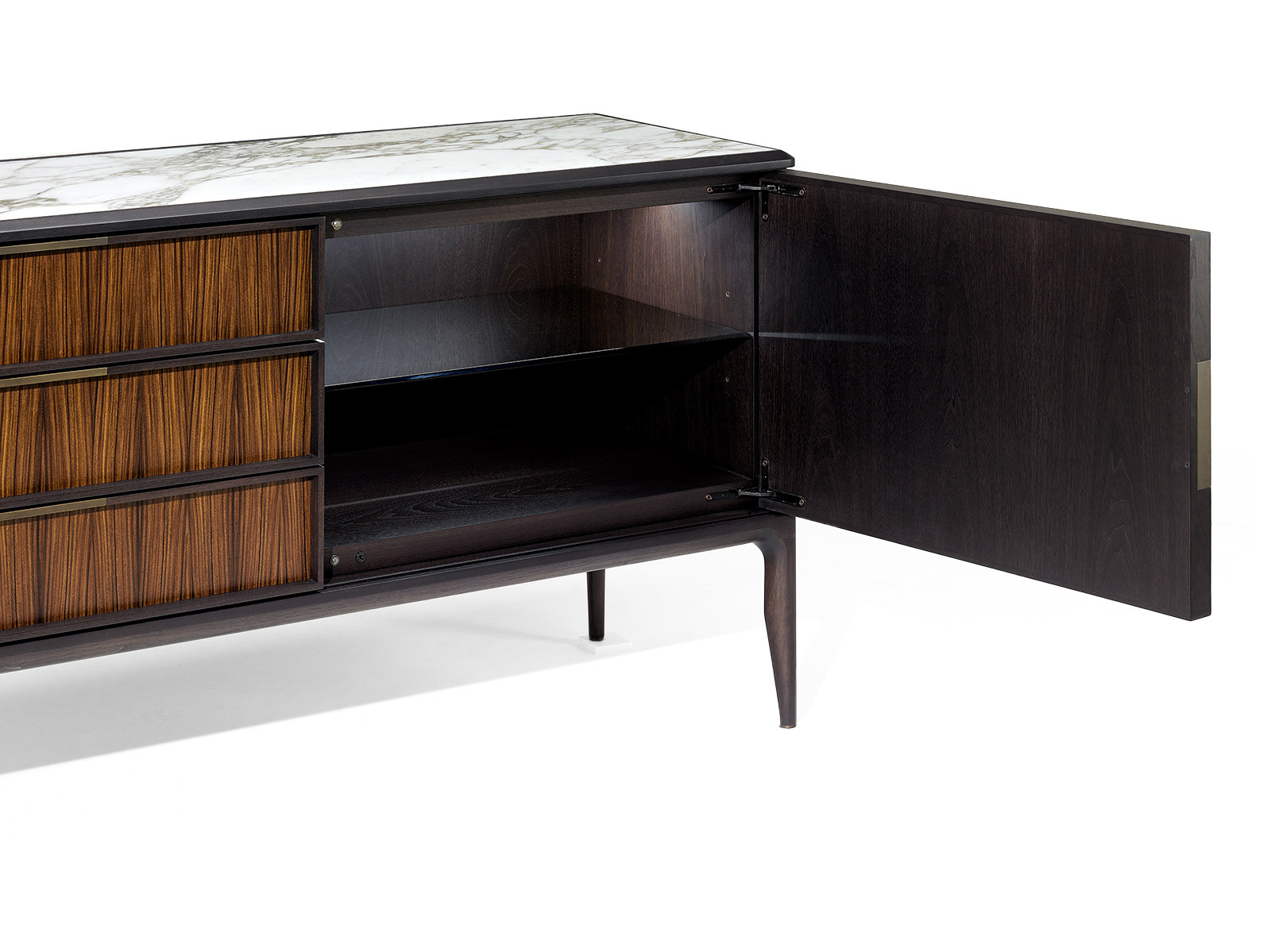 В 2020 году студия DRAW Studio разработала сервант и шкафы Oblique. Этот продукт отличается ритмичным дизайном. Строгая геометрия профилей из массива дерева чередуется с плавными линиями основания. Слегка наклонные поверхности дверей еще больше подчеркивают этот эффект. Это дизайнерское решение дало название изделию и позволило встроить ручки в рамы и выровнять переднюю часть шкафчика по краю. По этим причинам Oblique представляет собой один из лучших образцов мастерства и стиля Ceccotti Collezioni. Шкаф-купе выпускается в двух вариантах: с 4 дверцами или с двумя дверцами и тремя центральными выдвижными ящиками. Для увеличения объема внутреннего пространства в каждом отделении имеется прозрачная стеклянная полка. Основание и каркас изделия выполнены из массива американского ореха. Дверцы боковые стенки и фасады выдвижных ящиков могут быть выполнены из ореха розового дерева эбенового дерева кожи или матового лака. Столешница стеллажа может быть выполнена из дерева цветного стекла или мрамора. Для завершения этого решения был разработан ряд аксессуаров таких как светодиодная подсветка дополнительные полки и перегородки для выдвижных ящиков. Кроме того внутреннюю поверхность комода можно обшить тканью а внутренние стенки выдвижных ящиков - тканью или кожей.