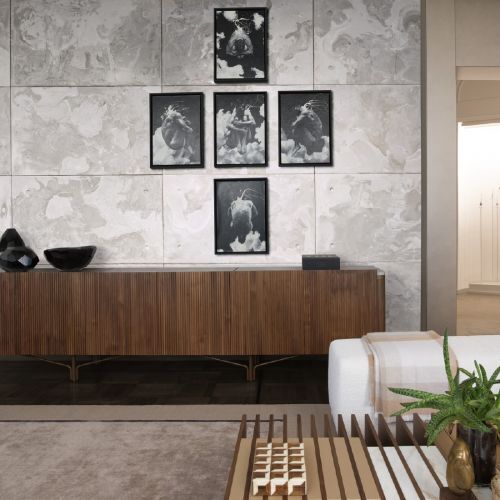 Современный комод Charlotte со структурой орехового дерева от итальянской фабрики Giorgetti. Дизайн комода, вдохновленный архитектурой, отличается системой дверей из элегантного рифленого дерева со смелым декоративным мотивом.