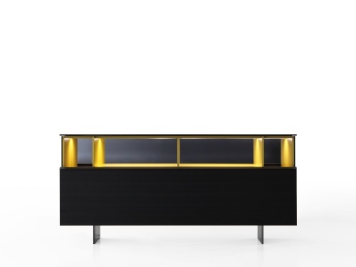 Низкий буфет Gallery - это сервант с чистым и рациональным дизайном. Версия с одной раздвижной дверцей, поднимающейся вверх, расширяет ассортимент Gallery. Даже в этой версии раздвижная дверца, поднимающаяся вверх, открывает богатое и функциональное внутреннее пространство, идеально подходящее для хранения ценной посуды и использования в качестве винного шкафа. Привлекательность этого серванта также заключается в особом эффекте, создаваемом зеркальной задней панелью, которая делает внутренние матовые лакированные полки, доступные в одном из цветов коллекции, более яркими и драгоценными. Конструкция и раздвижные двери могут быть покрыты матовым или глянцевым лаком, а также выполнены из дерева коллекции Porro. Покрытие может быть выполнено в различных вариантах отделки: от матового или глянцевого лакированного покрытия до дерева Порро и изысканного и элегантного мрамора, доступного в матовом или глянцевом исполнении. Низкий шкаф опирается на металлическую ножку с минимальной отделкой железом. Низкий шкаф Gallery доступен в двух вариантах ширины: 3000 мм и 2480 мм.