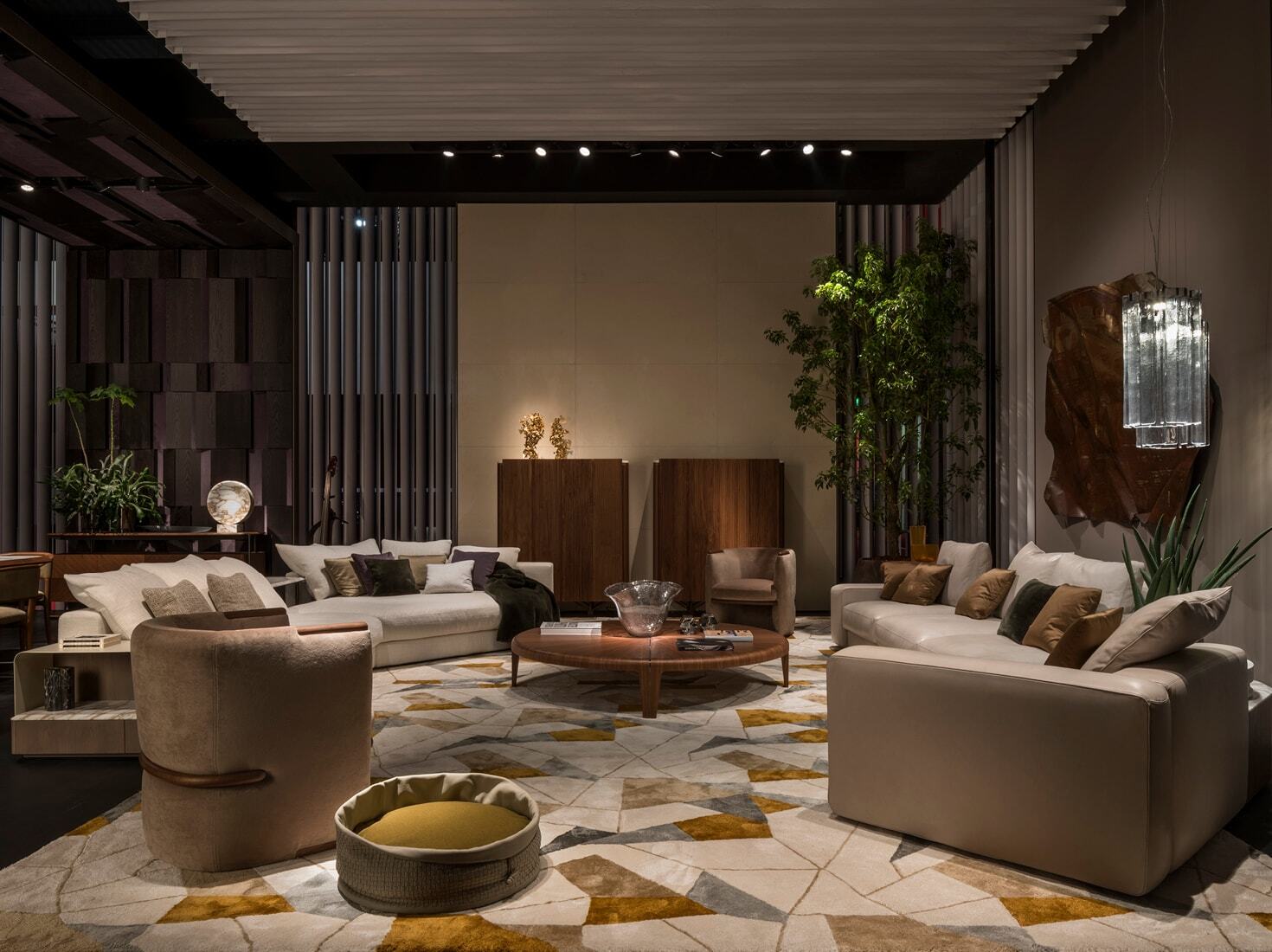 Многоцветный ковер из бамбукового шелка и льна, сделанный вручную с техникой тафтинга.