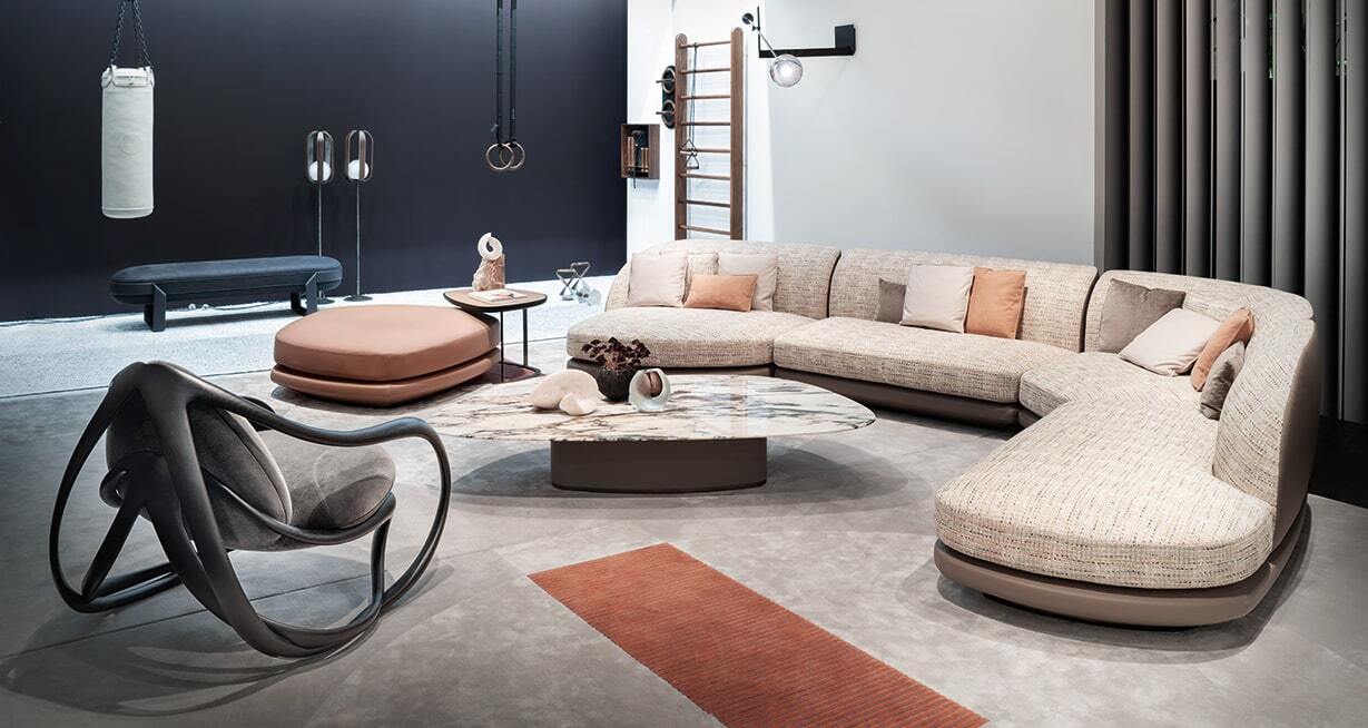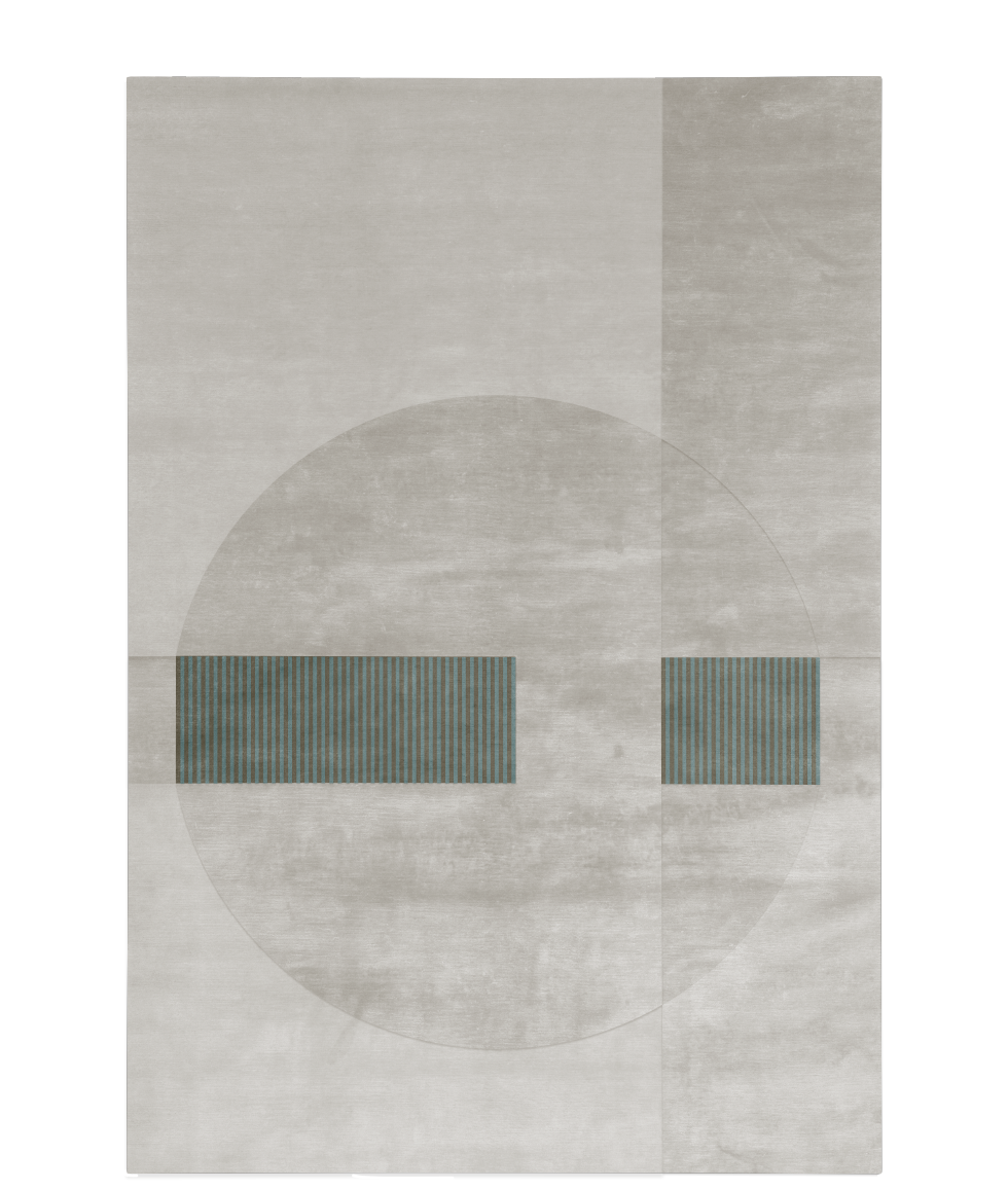Отсылка к линиям и цветам абстрактного искусства в ковре ручной работы из бамбукового шелка и шерсти.