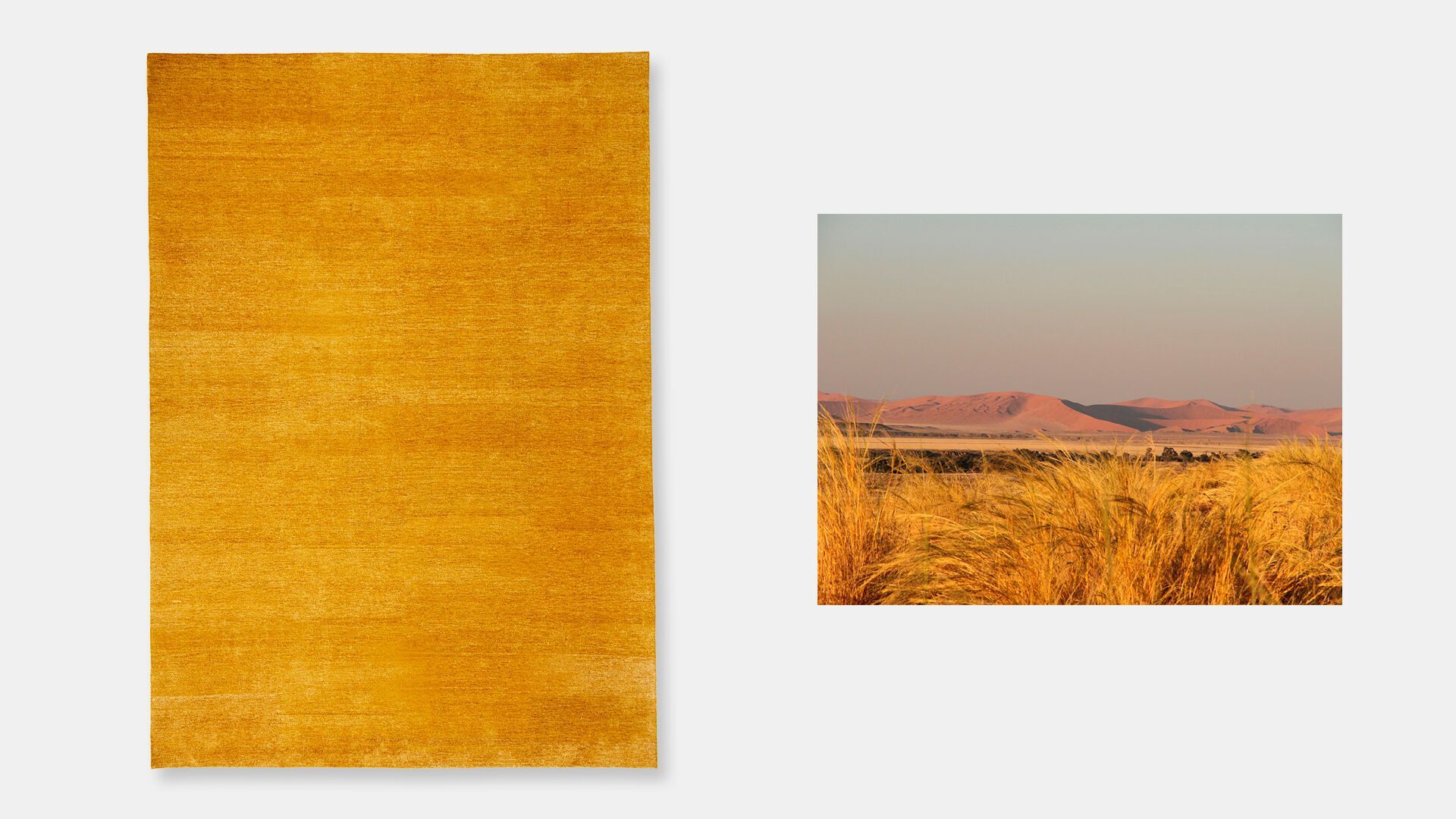 В Южной Африке говорят: «Поверни лицо к солнцу, и тени останутся позади». Ковер Ilanga — солнце на свахили — сияет глубоким солнечным желтым, изготовлен из равных частей тибетской горной шерсти, тонкого китайского шелка и волокон крапивы.