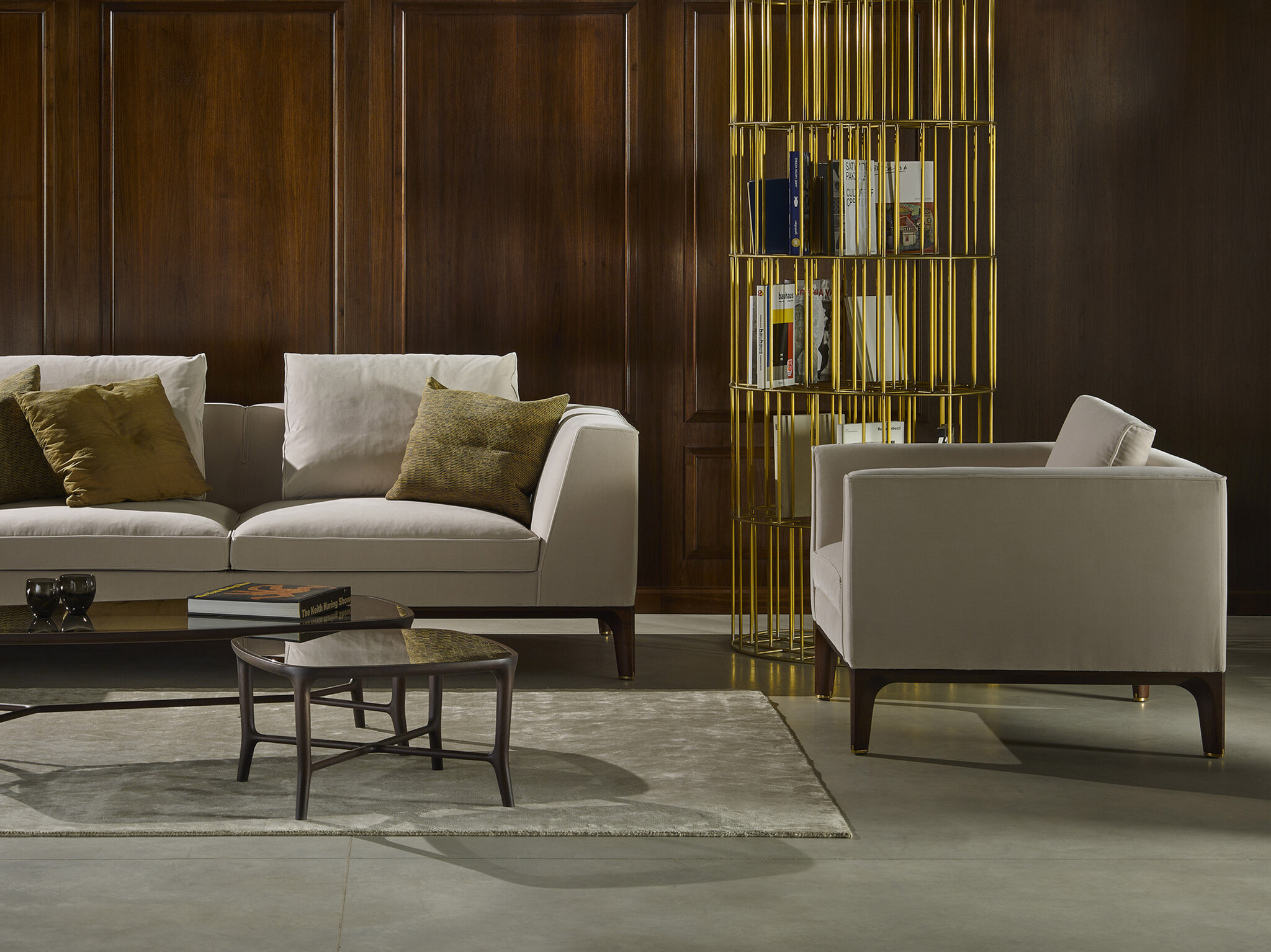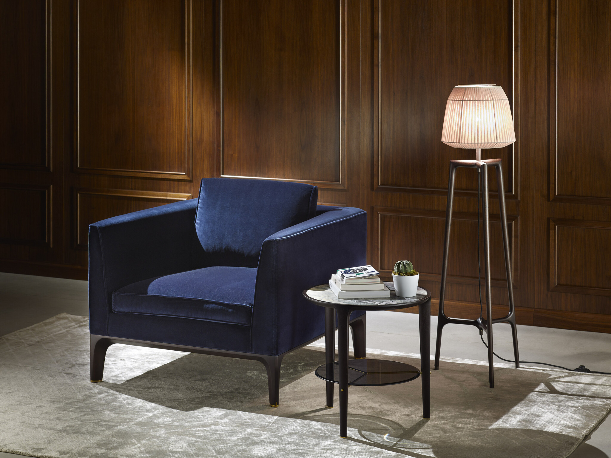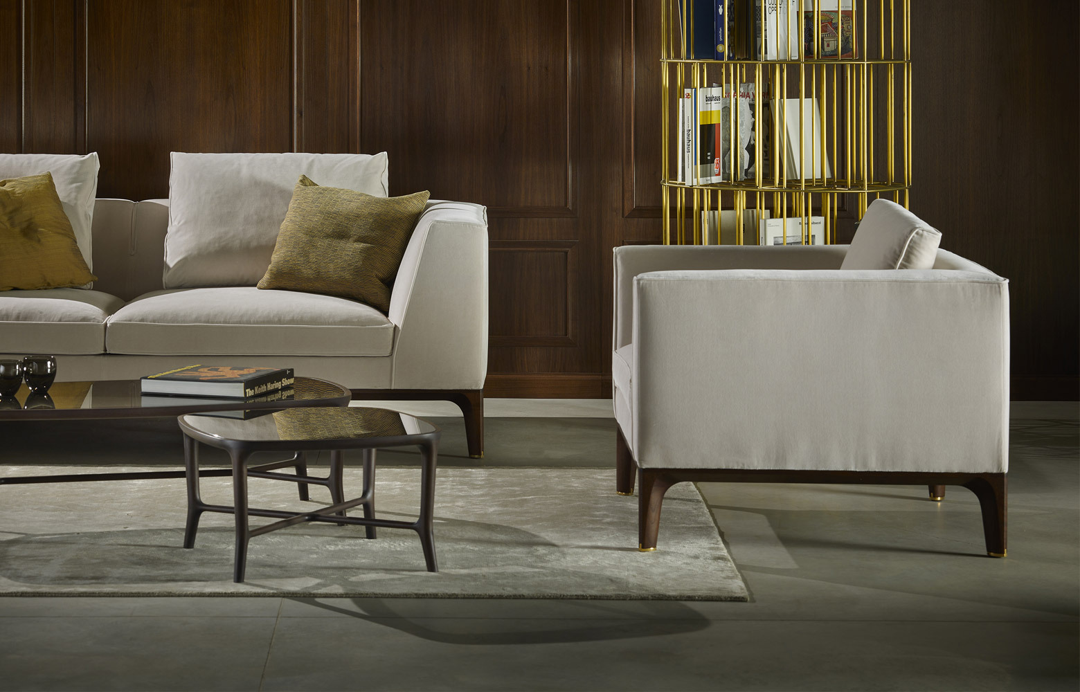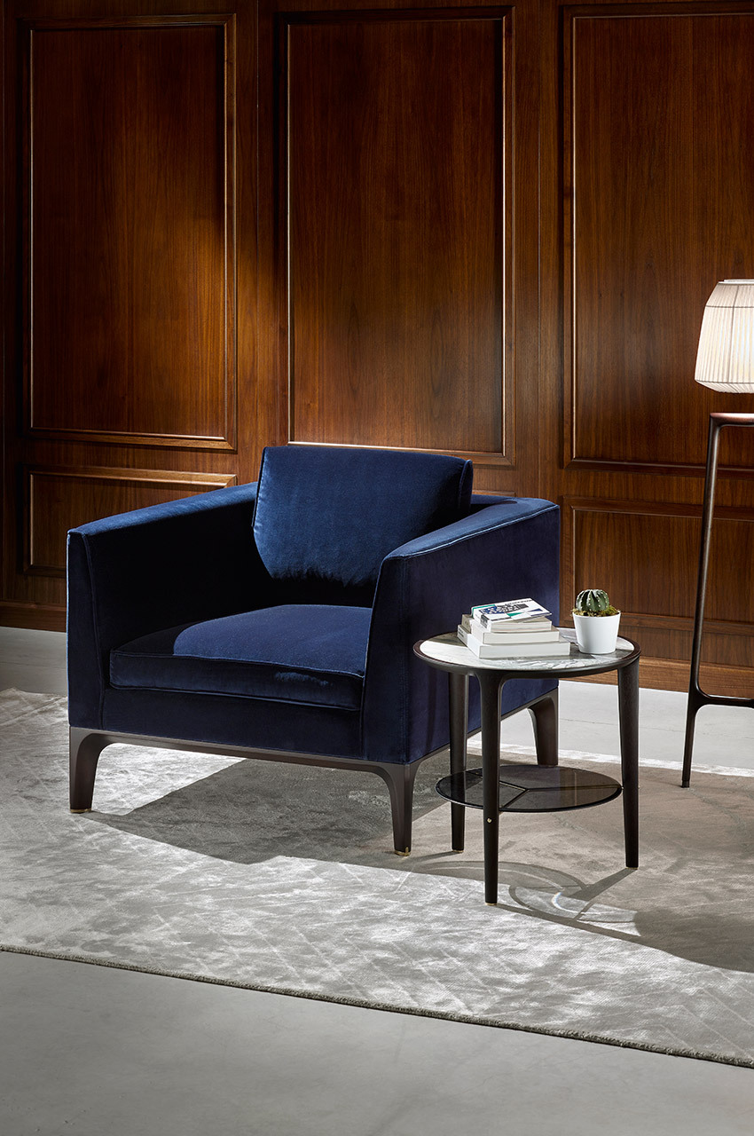 Кресло D.G. — место для личного отдыха. Спроектированное Джузеппе Казарозой в 2019 году оно вместе с небольшим диваном завершает систему Don Giovanni. Предназначенное для гостиной кресло элегантно вписывается в любые комнаты благодаря своему стилю и изяществу. Внутренний каркас выполнен из фанеры а основание — из цельного американского ореха. Для сиденья использована резина с верхним слоем из пуха а подушки наполнены пухом и rhombo-fe. Латунные ножки являются дополнительным эстетическим элементом кресла. Обивка может быть выполнена из ткани кожи или натуральной кожи по желанию.