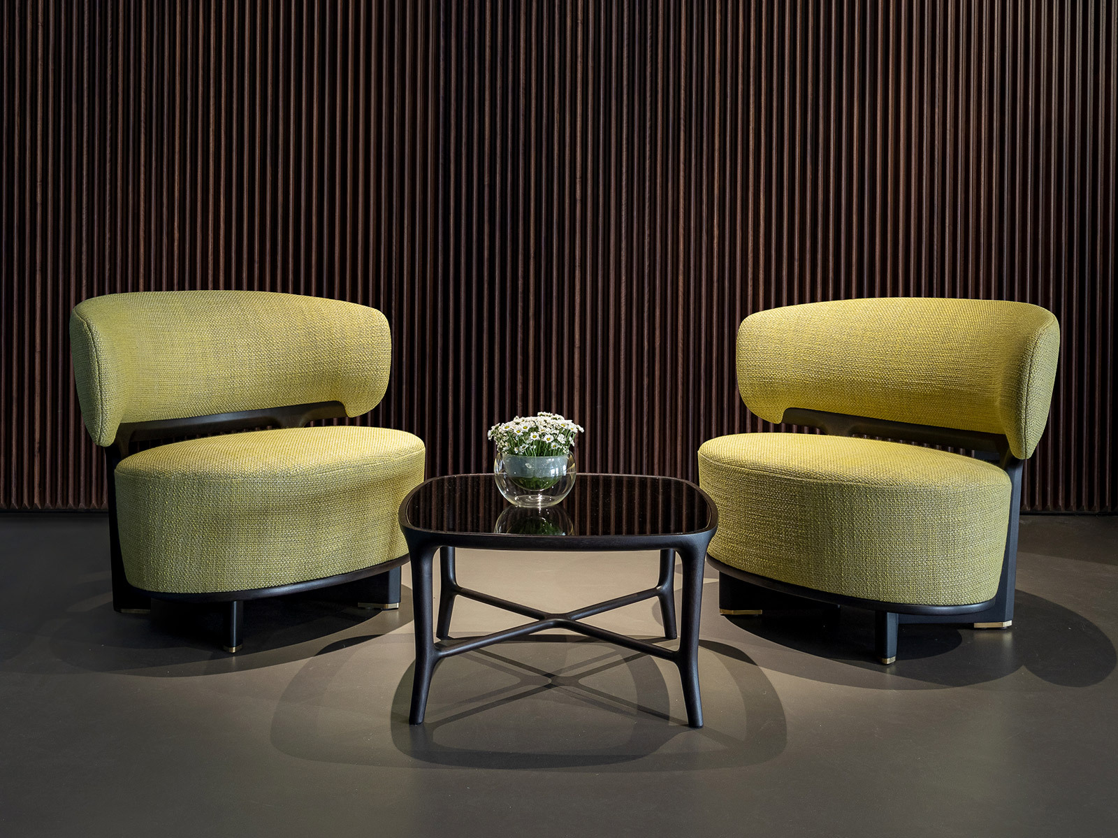 Icolounge — вечное произведение для расслабления спроектированное Роберто Лаццерони в 2020 году. Сочетает умеренно крупный каркас из массива американского ореха с удобным глубоким эллиптическим сиденьем из обитой фанеры тополя. Тонкая спинка полностью огибает сидящего плавно переходя в подлокотник. Конструкция заимствована у дивана но имеет новые пропорции позволяющие поддерживать устойчивость. Основание в форме буквы X оснащено 8-мм латунными ножками что демонстрирует внимание Ceccotti Collezioni к деталям. Модель доступна в различных отделках с обивкой тканью кожей или натуральной кожей предназначена стать центровой в доме или общественном пространстве.