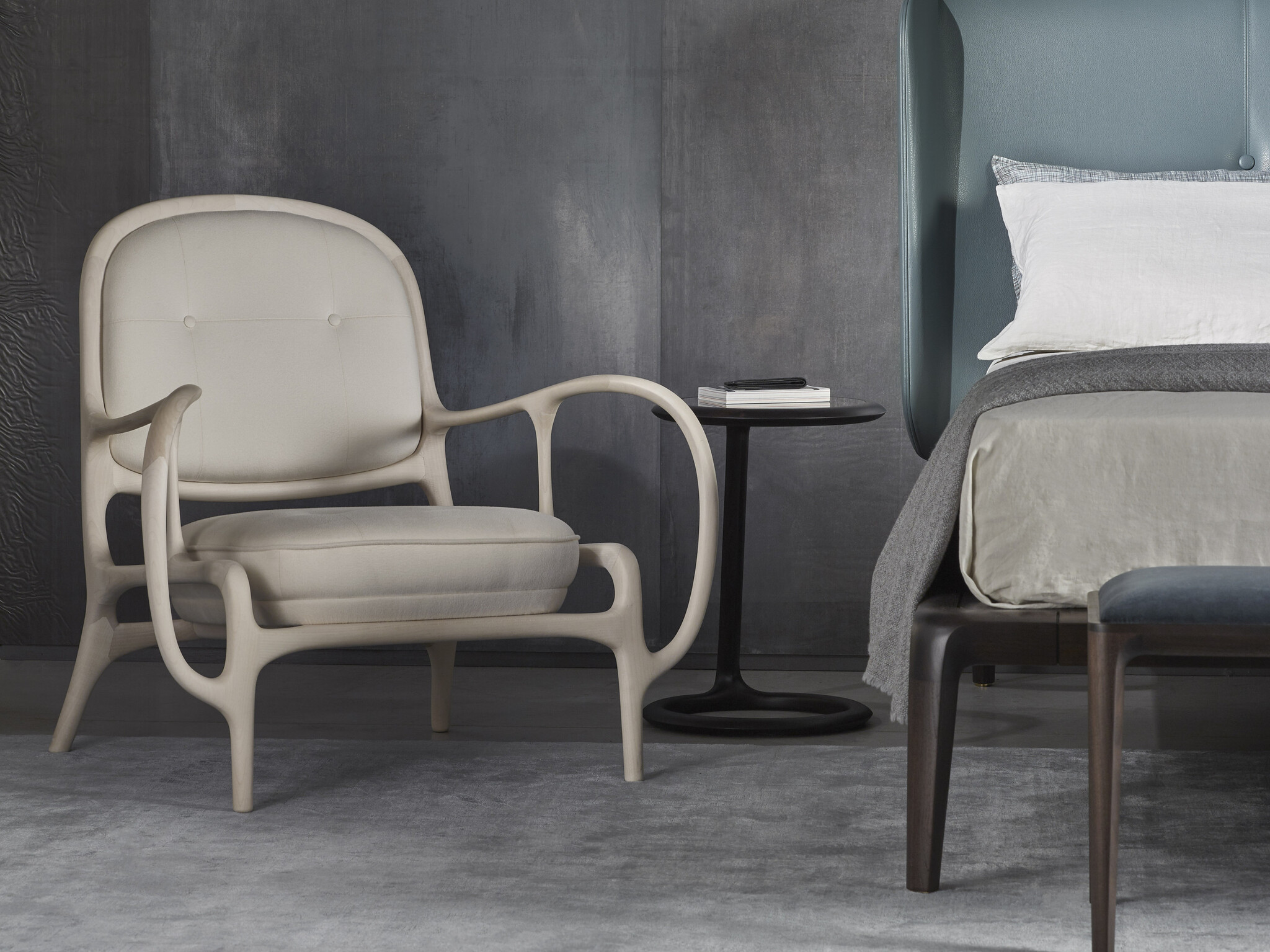 Кресло Twenty Two созданное испанским дизайнером Хайме Хайоном в 2009 году имеет каркас из цельного американского ореха или клена и вдохновлено округлыми линиями начала XX века напоминающими стиль Либерти. Название связано с 22 деревянными элементами из которых состоит кресло склеиваемыми в процессе требующем восьми часов склеивания и 72 часов сушки. Оно является отличным примером сложности дизайна возможного благодаря техникам мастерству и вниманию к качеству материалов которые составляют ДНК Ceccotti Collezioni. Сиденье и спинка мягкие и могут быть обиты тканью кожей или натуральной кожей а под сиденьем расположен кожаный лоток всё это обеспечивает максимальный комфорт.