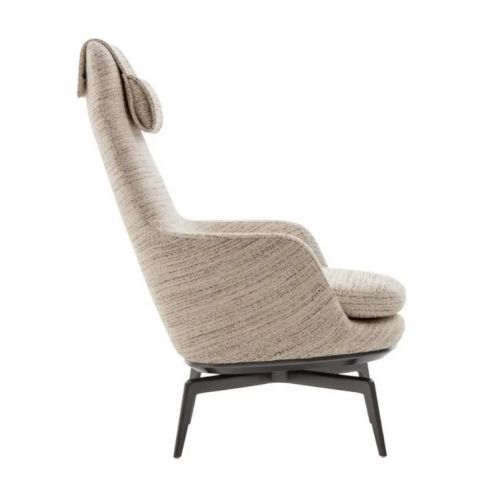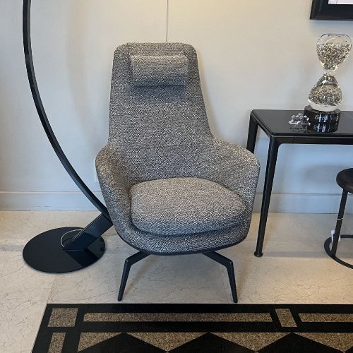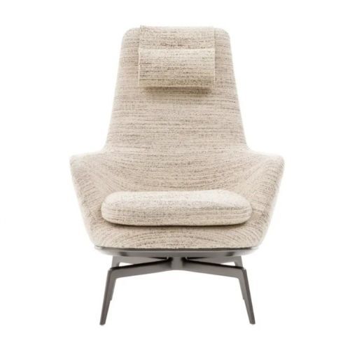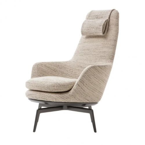 Вращающееся кресло Caratos с высокой спинкой и подголовником, дизайн Antonio Citterio, отличается плавными формами и легкой рамой, которая выполнена из окрашенного литого под давлением алюминия. Кресло будет уместно в любом современном интерьере гостинной и даже в спальне. В наличии 2 штуки. Кресла выполнено в ткани, ножки из металла graphite painted.