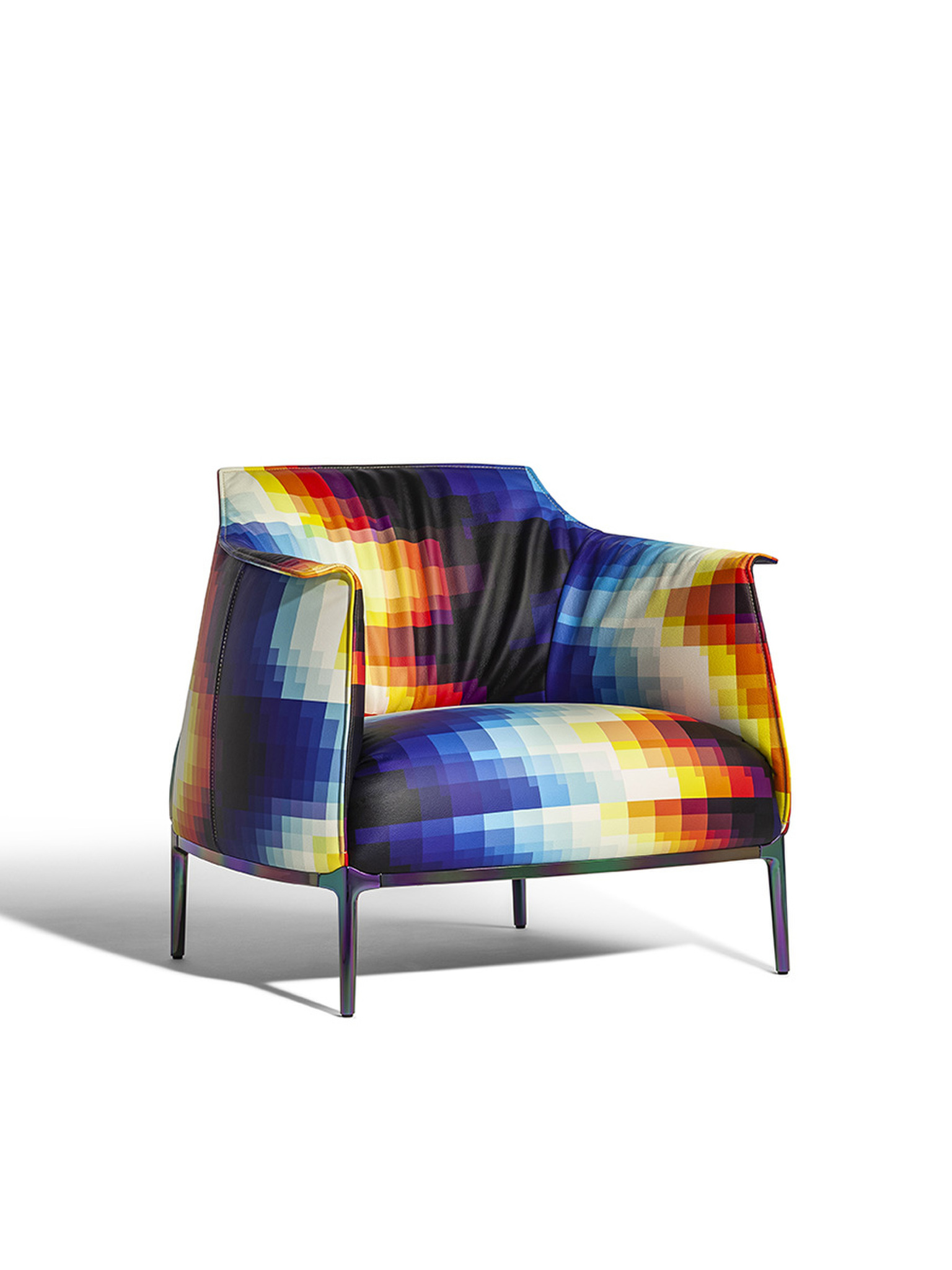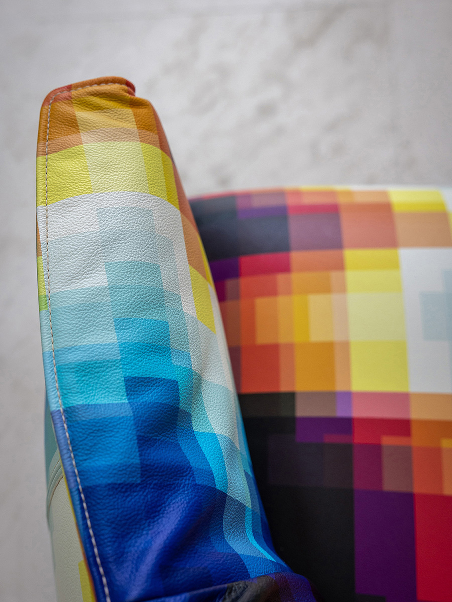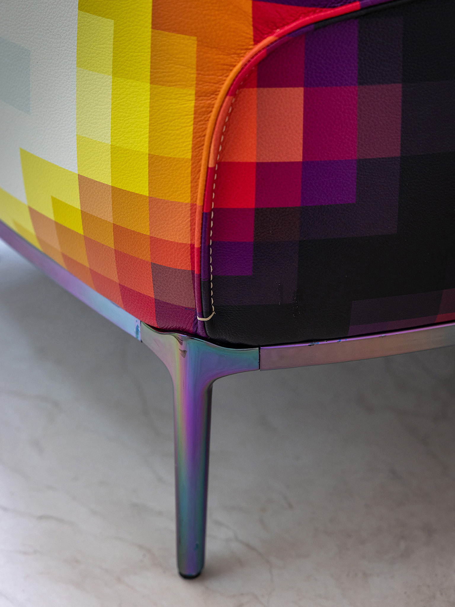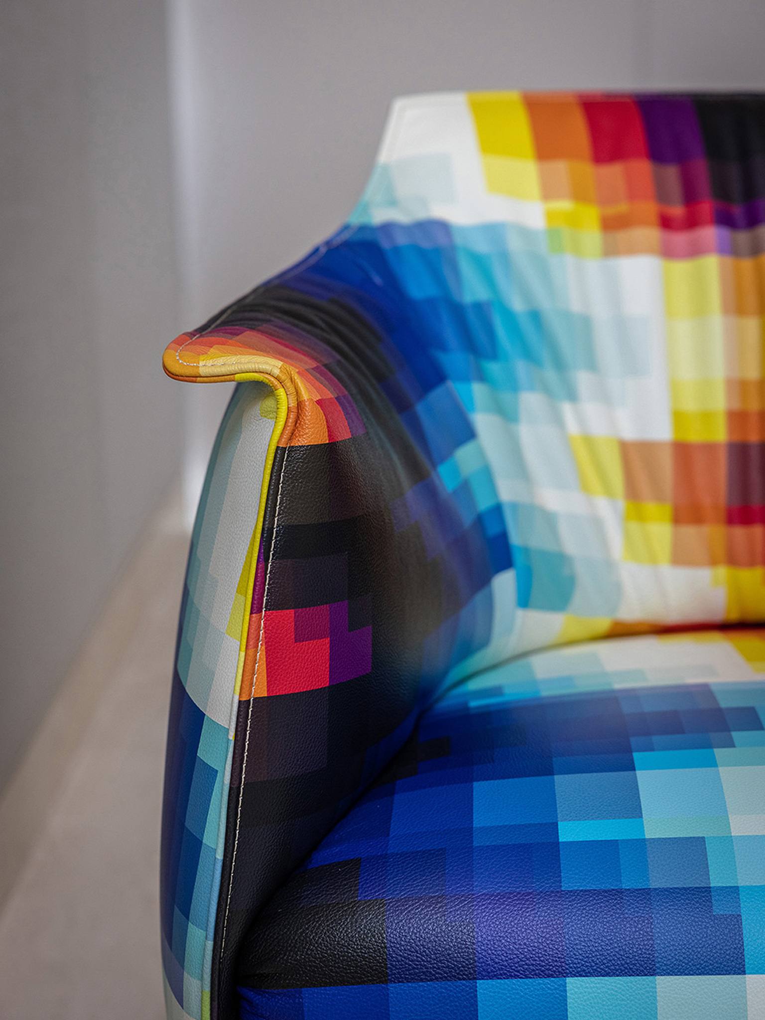 Лимитированная юбилейная серия Archibald, выпущенная всего в количестве 110 экземпляров в честь 110-летия Poltrona Frau, представляет собой новую интерпретацию культового кресла Archibald от художника-визуалиста Фелипе Пантоне. Это неожиданное сочетание наследия и мастерства Poltrona Frau, а также оптического и цифрового языка аргентино-испанского уличного художника, наполненного яркими красками. Вдохновленный палитрой ColorSphere®, Фелипе Пантоне создает узор, который размывает контуры и оживляет кожаную поверхность кресла. Простой баланс форм и неподвластная времени элегантность Archibald воплощены в ультрасовременном стиле.