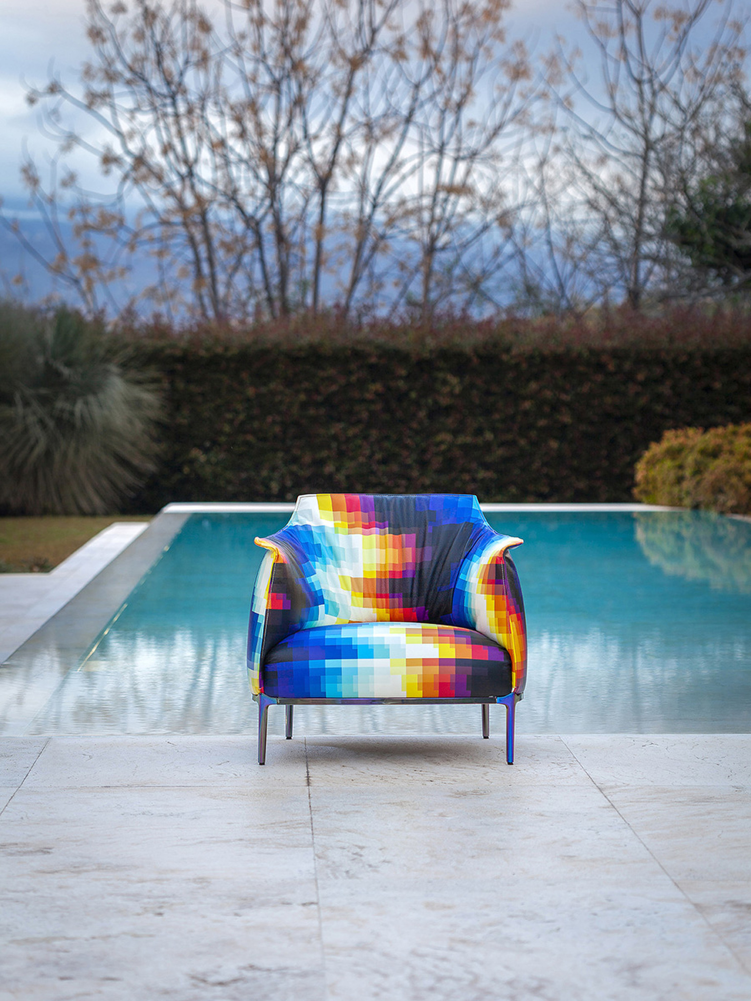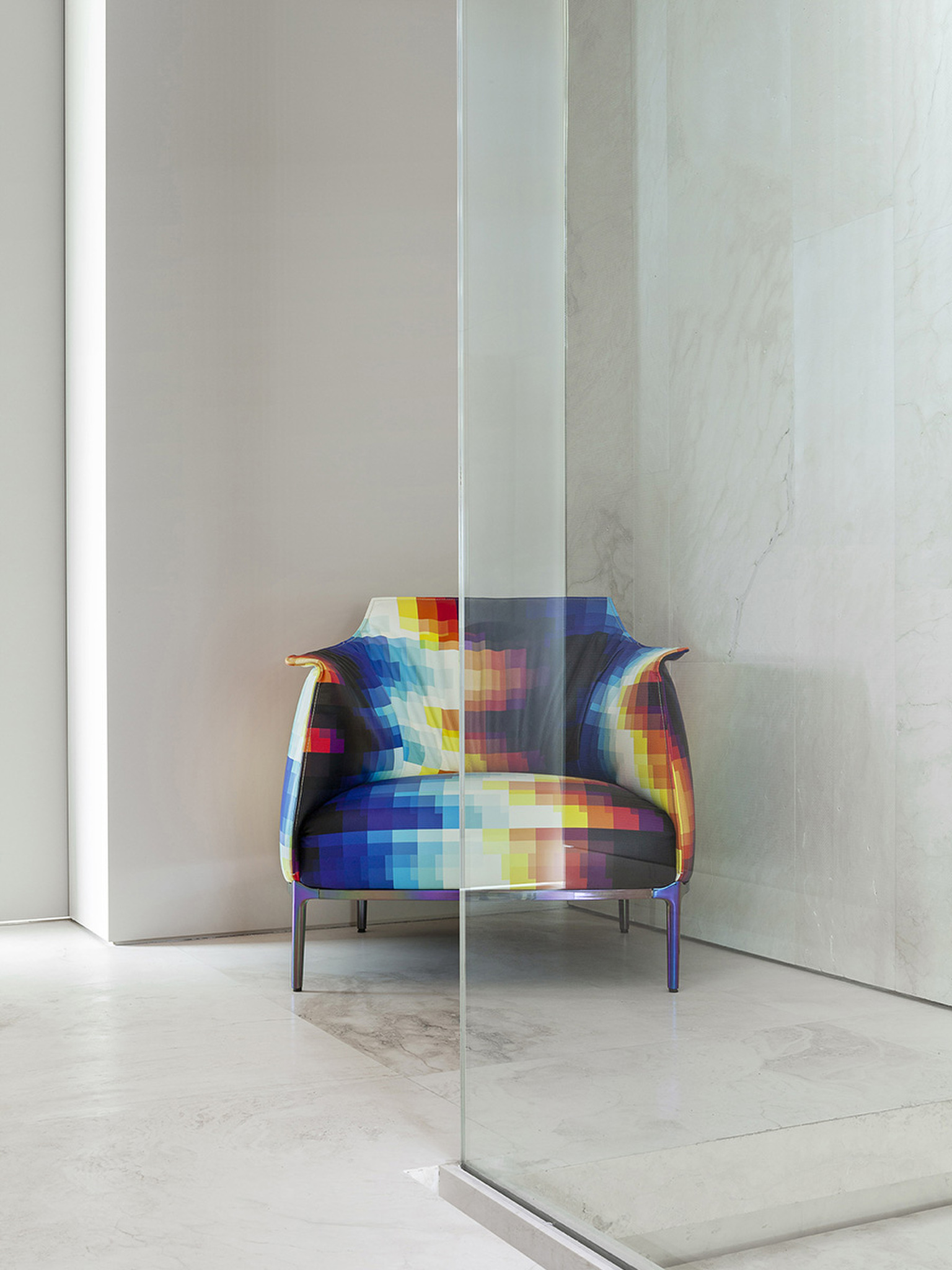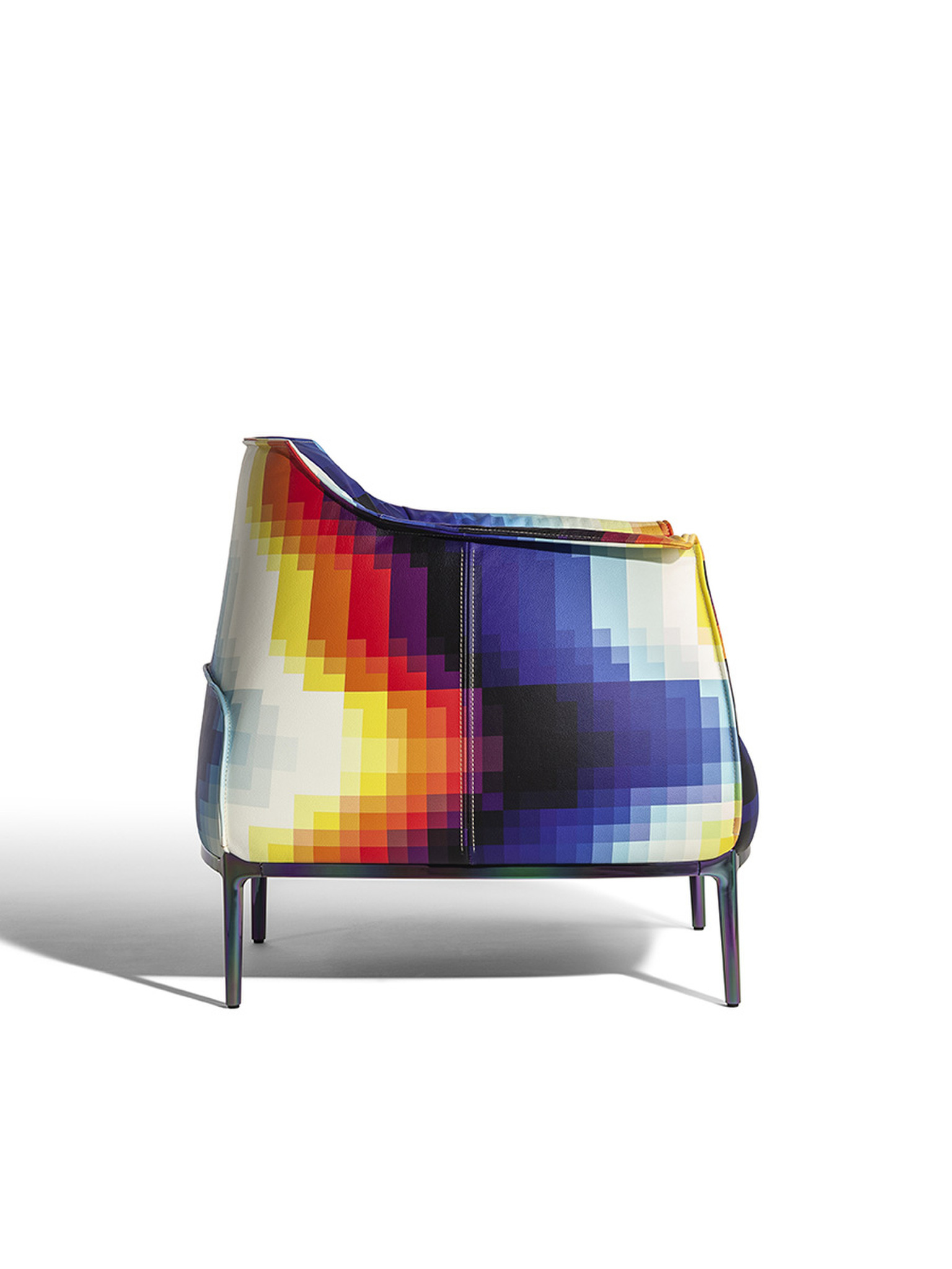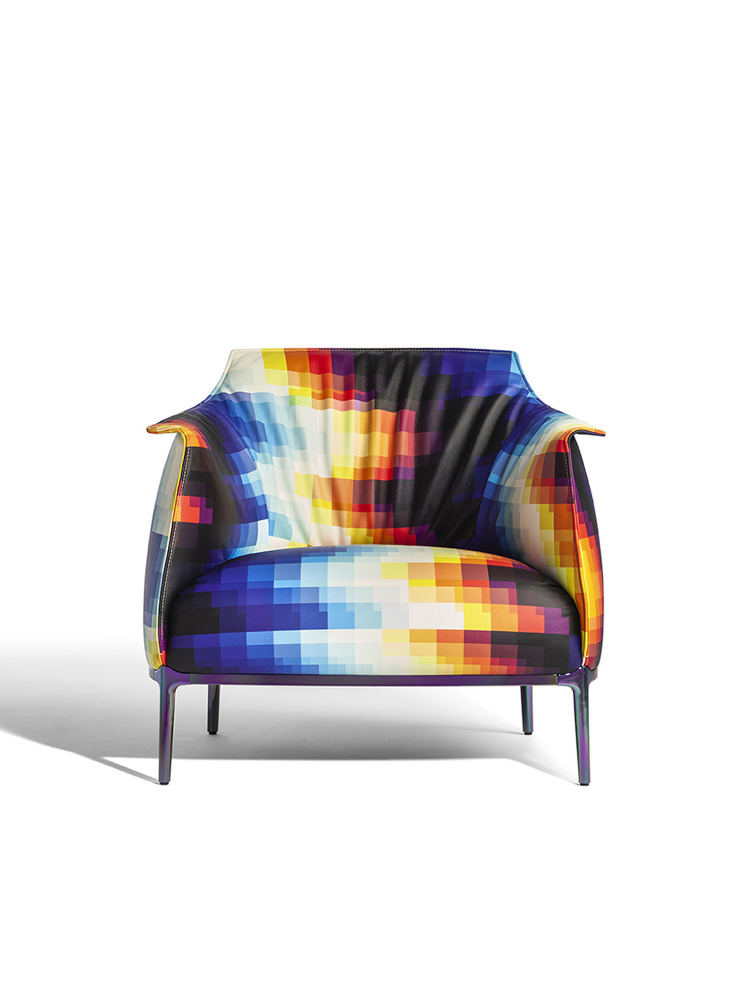 Лимитированная юбилейная серия Archibald, выпущенная всего в количестве 110 экземпляров в честь 110-летия Poltrona Frau, представляет собой новую интерпретацию культового кресла Archibald от художника-визуалиста Фелипе Пантоне. Это неожиданное сочетание наследия и мастерства Poltrona Frau, а также оптического и цифрового языка аргентино-испанского уличного художника, наполненного яркими красками. Вдохновленный палитрой ColorSphere®, Фелипе Пантоне создает узор, который размывает контуры и оживляет кожаную поверхность кресла. Простой баланс форм и неподвластная времени элегантность Archibald воплощены в ультрасовременном стиле.