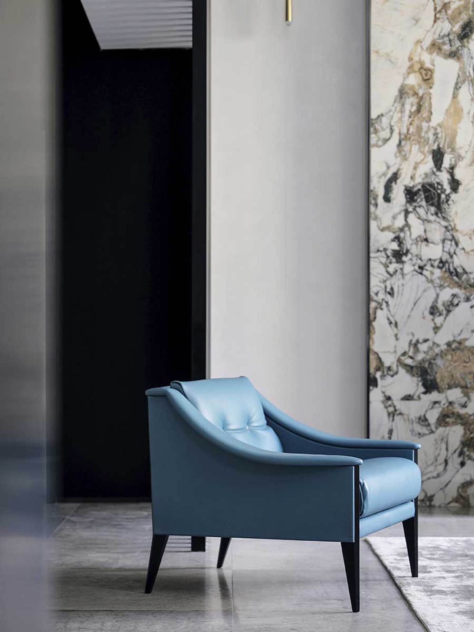Разработанное в 1965 году кресло Dezza воплощает в себе некоторые из наиболее важных дизайнерских принципов Джио Понти как с формальной точки зрения (например, ножка с характерным заостренным треугольным поперечным сечением), так и с методологической, благодаря революционной модульной системе, состоящей из ограниченного количества деталей для сборки. Диван и кресла Dezza, удобные, легкие и очень универсальные, переизданы в новом изысканном исполнении, которое подчеркивает их формальную красоту и неповторимый стиль.