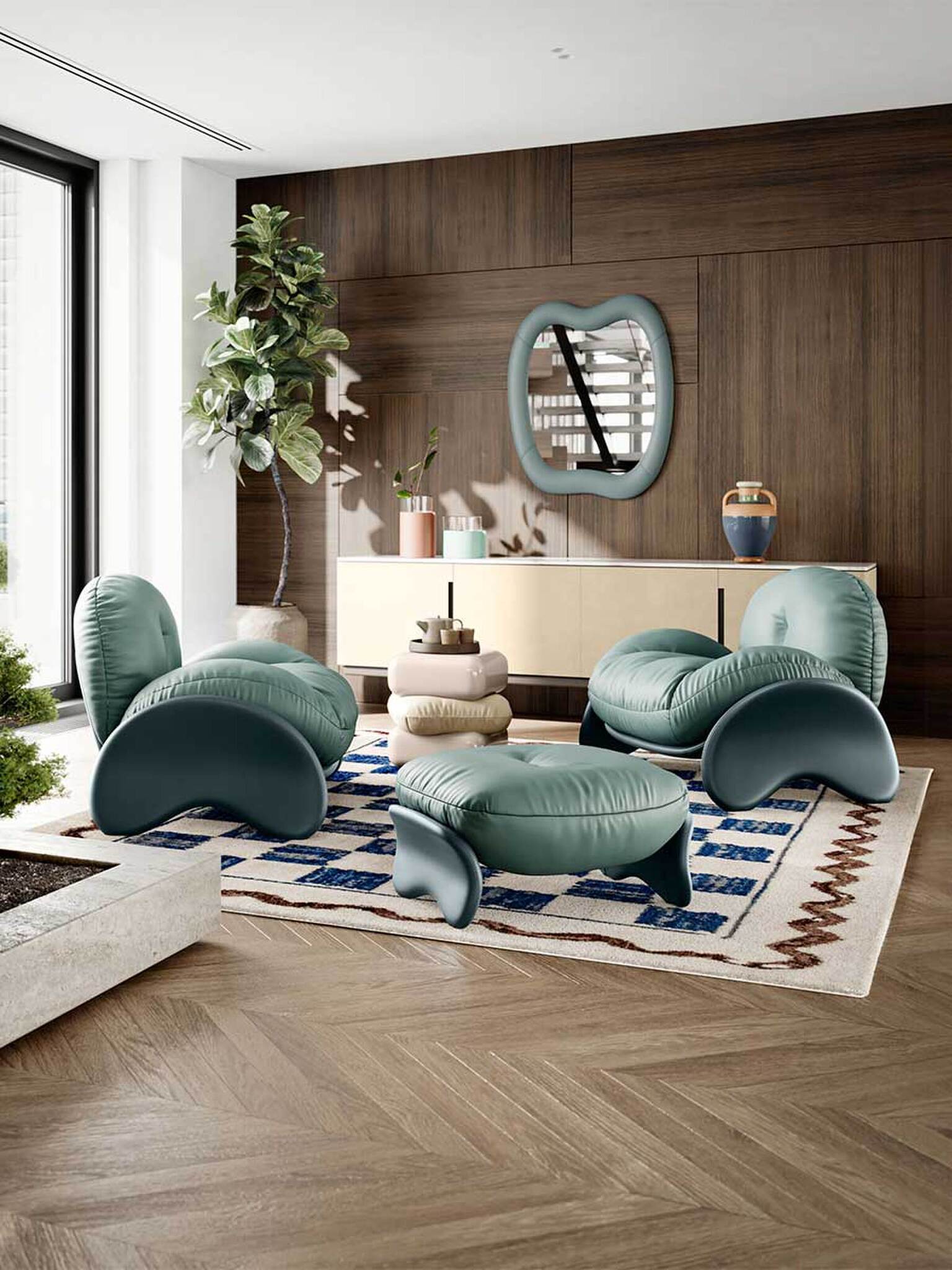 Мягкость, смелость и веселье - все это в одной коллекции: Squash, разработанной британской художницей Фэй Тугуд (Faye Toogood), очаровывает своей легкомысленной беспечностью, начиная с игривого и чувственного названия, отражающего мягкий и скульптурный подход к дизайну. Коллекция создает ощущение комфорта и уюта с первого взгляда. Пышные и смелые, но в то же время нежные и успокаивающие формы сочетаются с сочетанием мягких и жестких материалов. Плавные контуры и мягкая обивка нарушают статичность официальной мебели. Традиционные английские народные элементы переработаны и сочетаются с влиянием 1970-х годов. Сквош предлагает концепцию простой современной элегантности, основанной на уникальных предметах, которые хорошо смотрятся по отдельности, вместе или в сочетании с другой мебелью.
