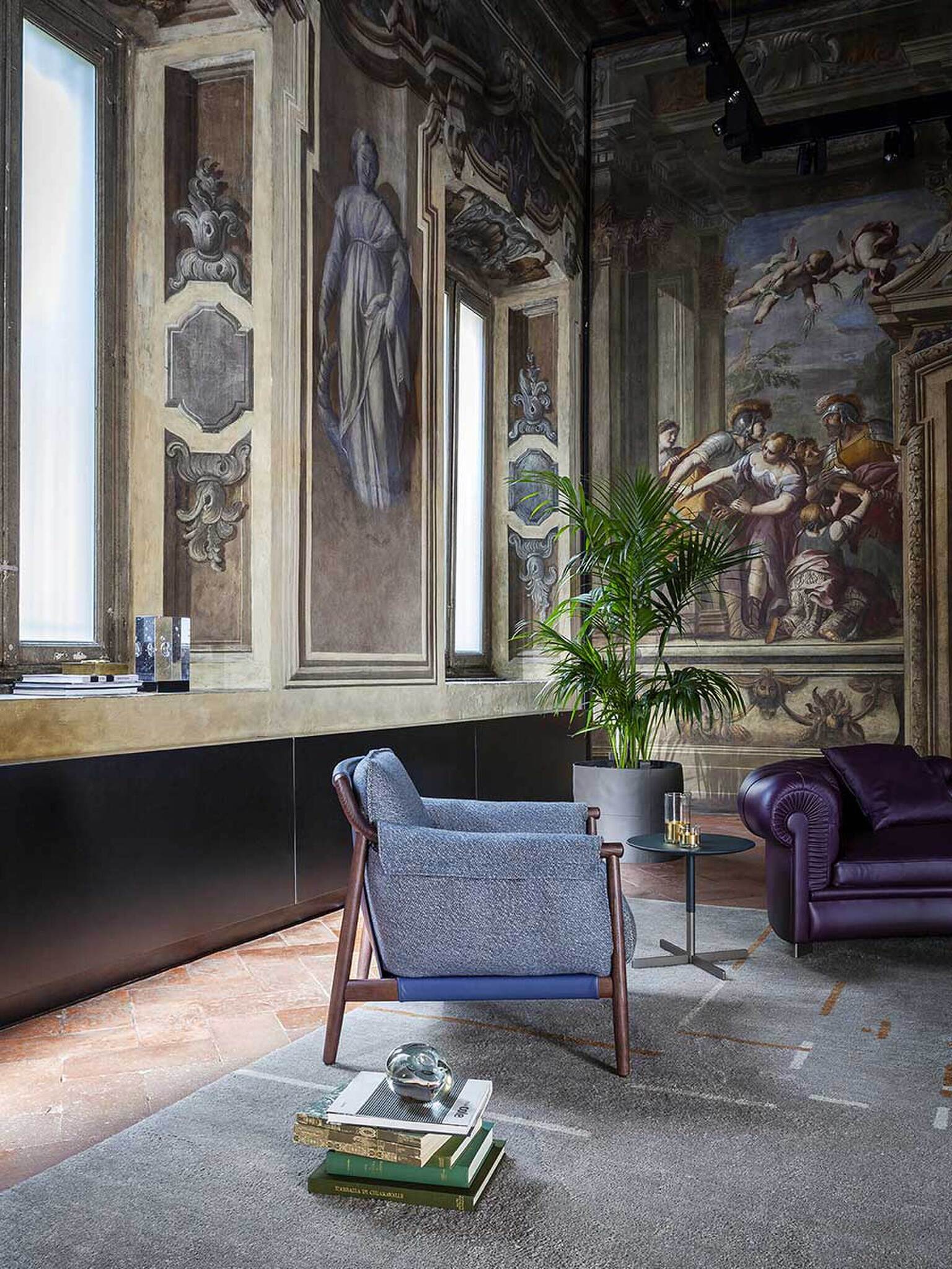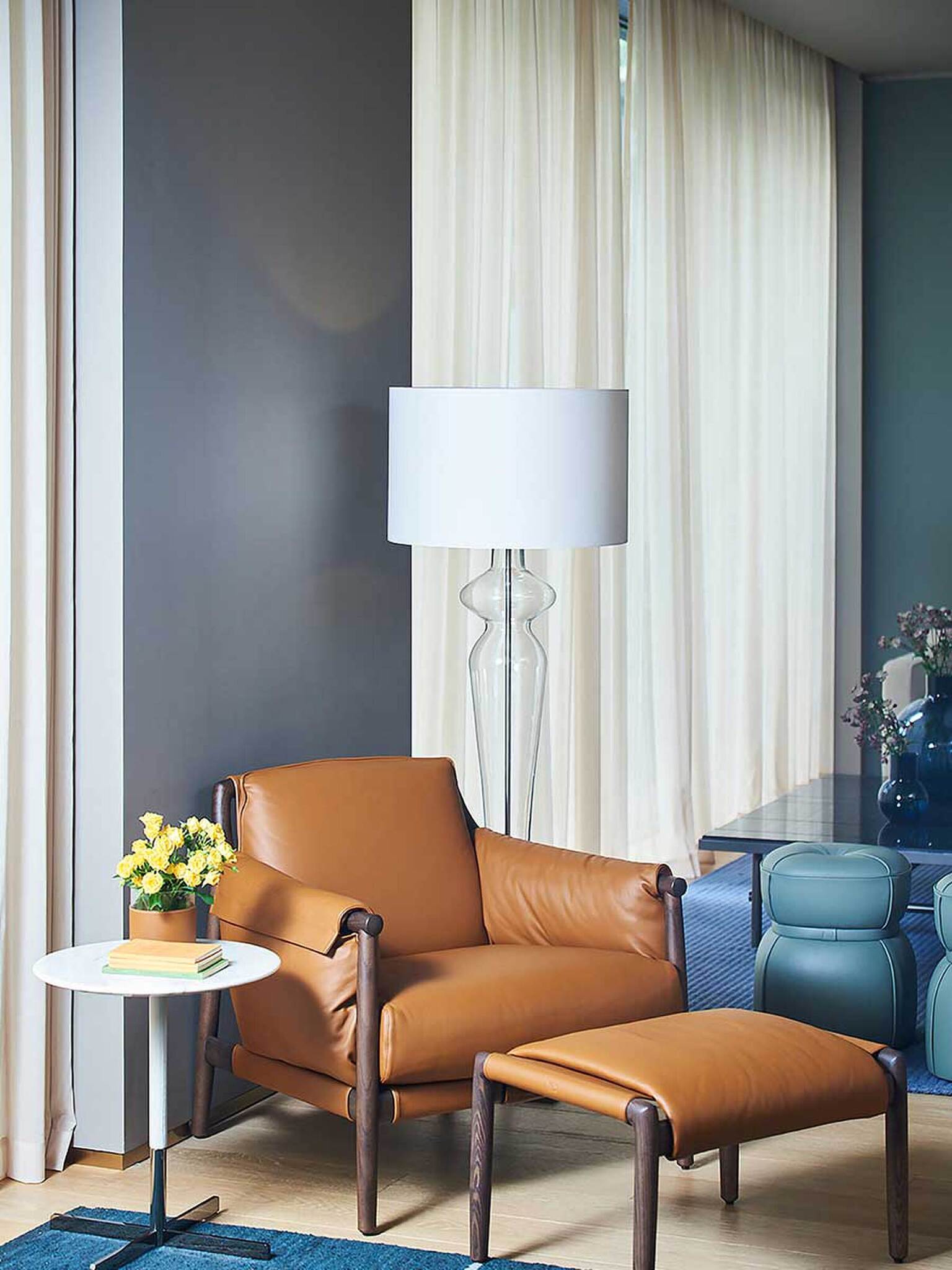Принципы дизайна, которые сделали кровать Times уникальной, были пересмотрены в кресле Times Lounge для создания неподвластного времени сиденья, сочетающего передовые технологии изготовления со сдержанной и мягкой современной эстетикой. Кресло Times Lounge, разработанное Spalvieri & Del Ciotto для Poltrona Frau, отличается изысканной и сверхлегкой конструкцией и чехлом, который естественным образом принимает форму сшитого на заказ костюма, делая его мягким и уютным. Пуф Times Lounge выполнен в том же концептуальном стиле. Конечный продукт - это изделие, предназначенное для дополнения кресла и повышения уровня комфорта, но оно также может стоять отдельно и использоваться в качестве временного сиденья.