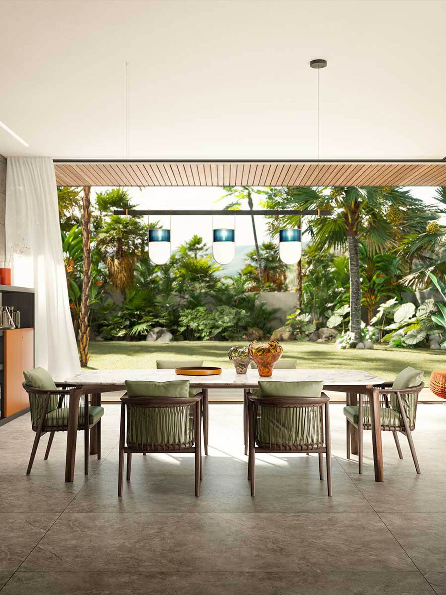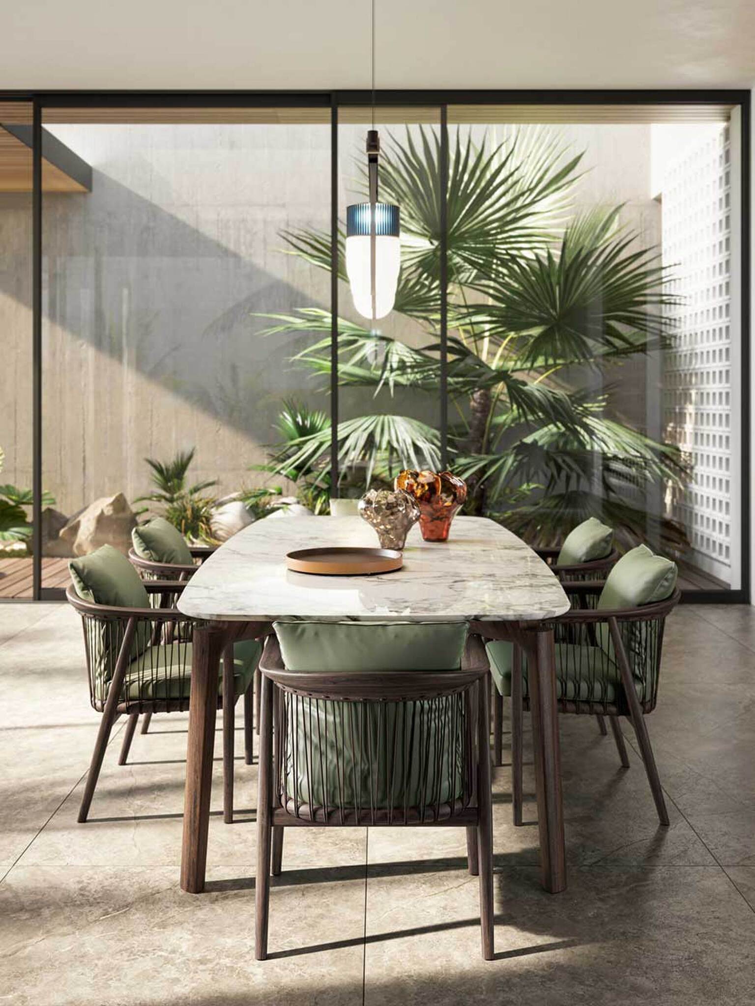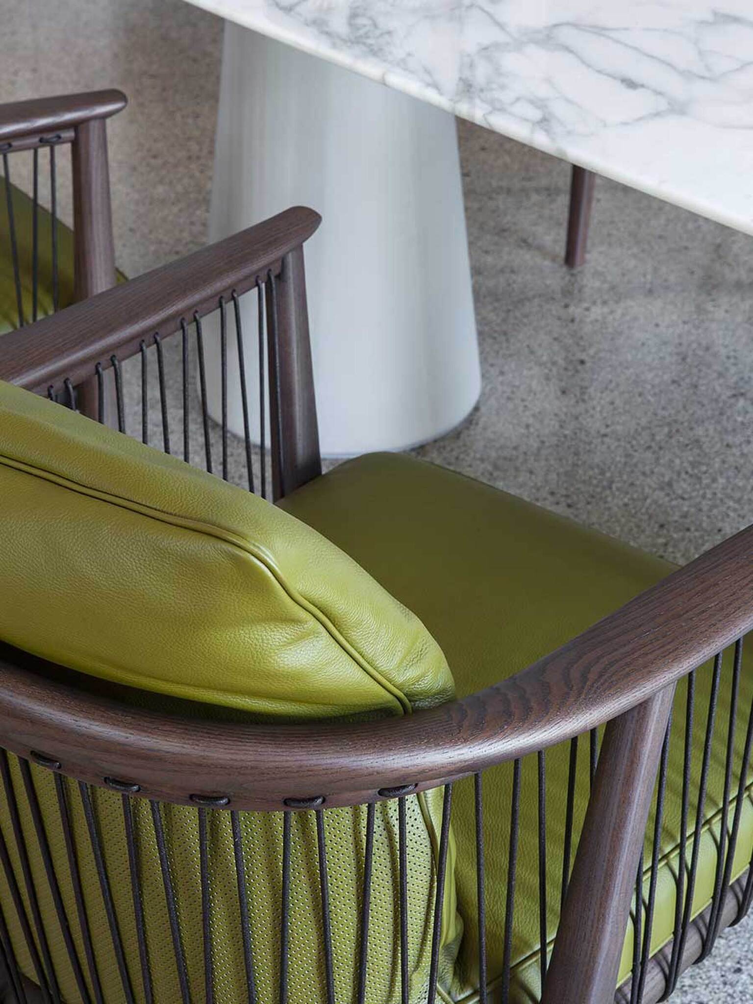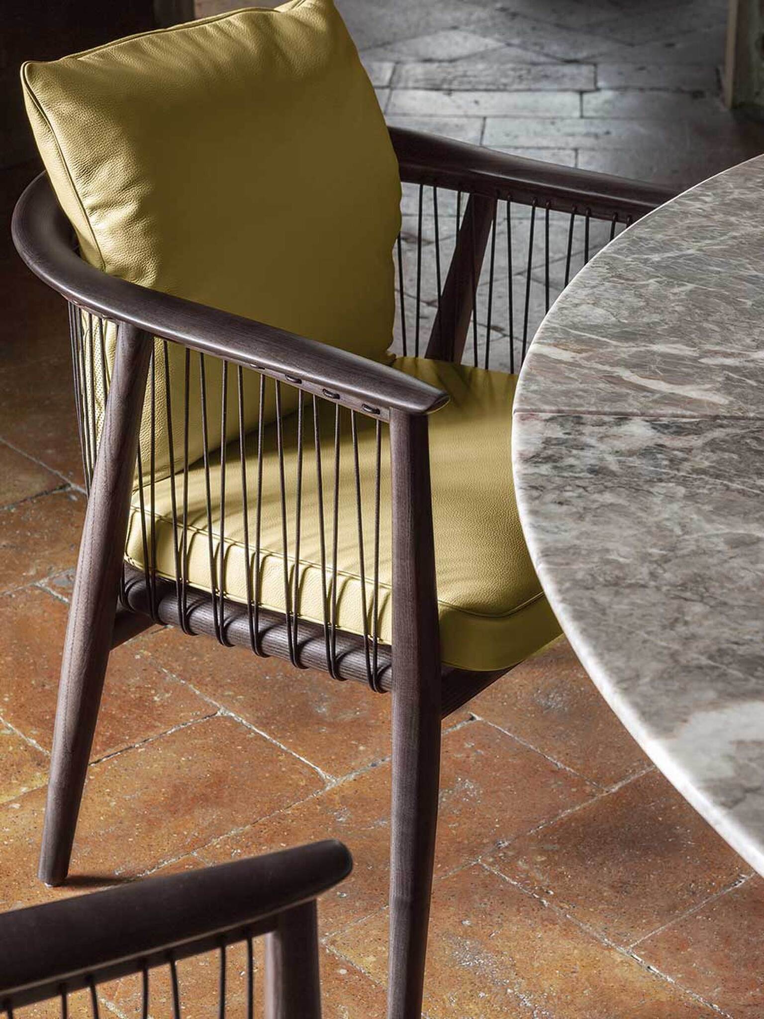 Вдохновленный ультракомфортным креслом, созданным для ресторана Four Season, удостоенного 3 звезд Мишлен в Гонконге, стул Viola, разработанный компанией AB Concept для Poltrona Frau, отличается элегантными линиями, которые не приносят ничего в жертву комфорту. Компания AB Concept пересмотрела классический дизайн, придав ему определенно современный оттенок. В результате получилось изделие с большой формальной легкостью и эффектом монолитности и пустоты, которое усиливает эффект стула для обеденного стола как при использовании отдельно, так и в сочетании со столом. Благодаря своим мягким и удобным изгибам деревянная спинка также образует подлокотник и украшена переплетением из шестидесяти шнурков из кожи седла, которые соединяют ее с каркасом.