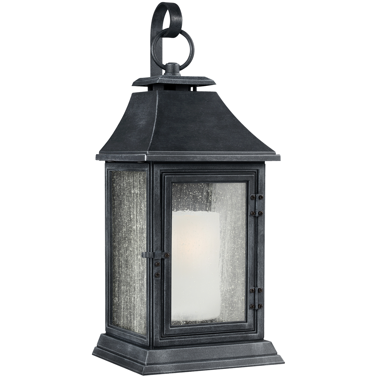Серия уличных светильников Shepherd оснащена декоративным пастушьим посохом, передней дверной панелью на защелках и петлях, абажуром из белого стекла во внутреннем корпусе и прозрачным наружным стеклом с зернами, что создает визуальный эффект старинных газовых фонарей.