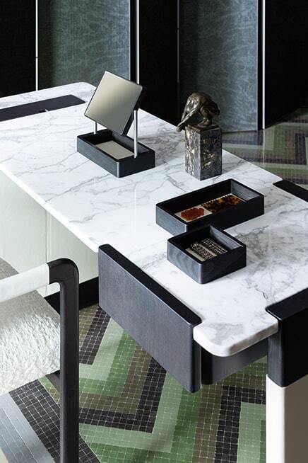Письменный стол или туалетный столик, функциональная станция, разработанная для различных интерьеров.