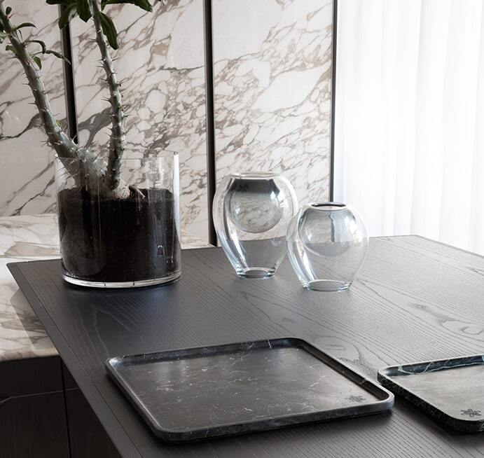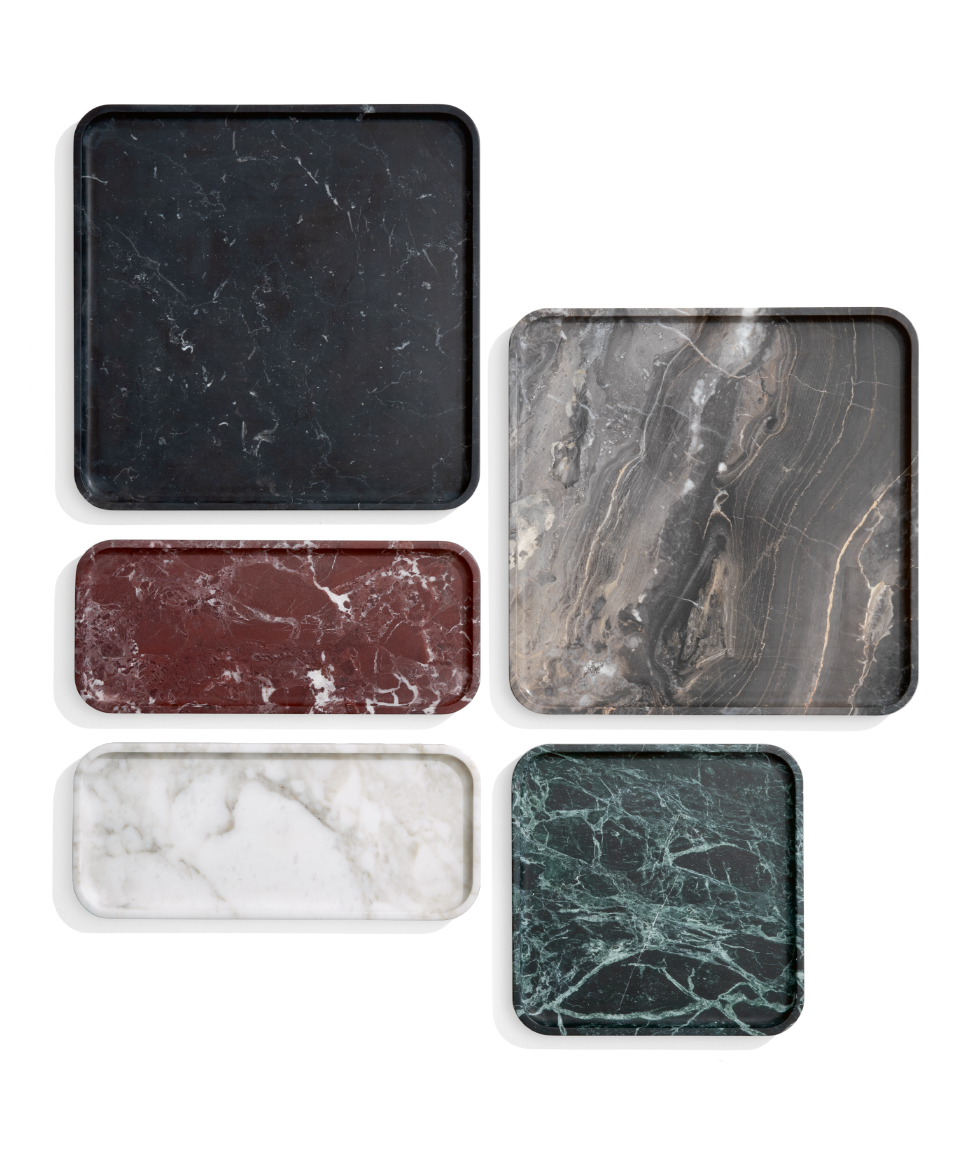 Мраморные подносы двух форм: квадратный и прямоугольный.