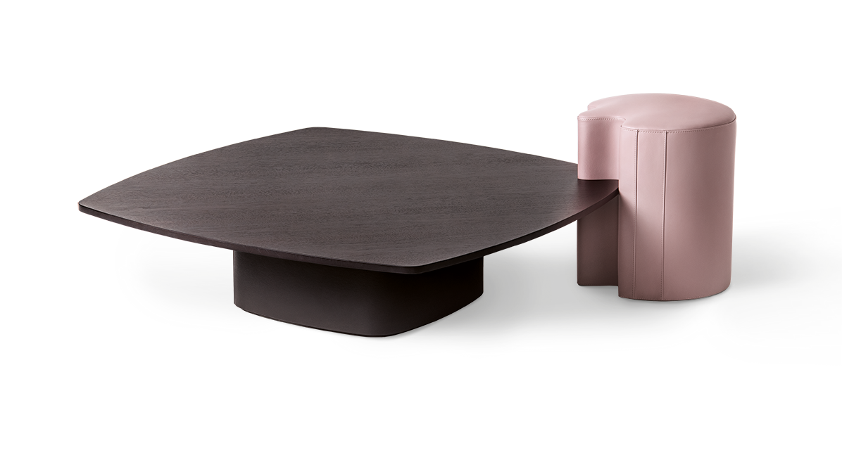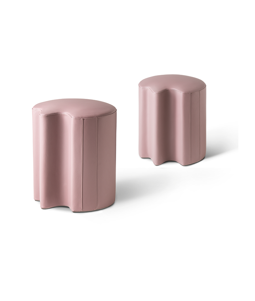 Пуф с органичными формами, выполненный из ткани или кожи.