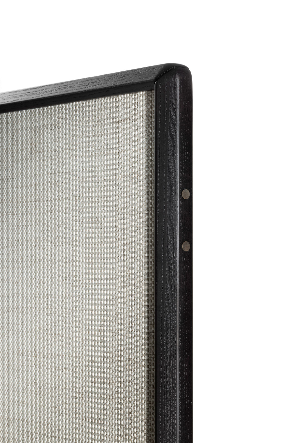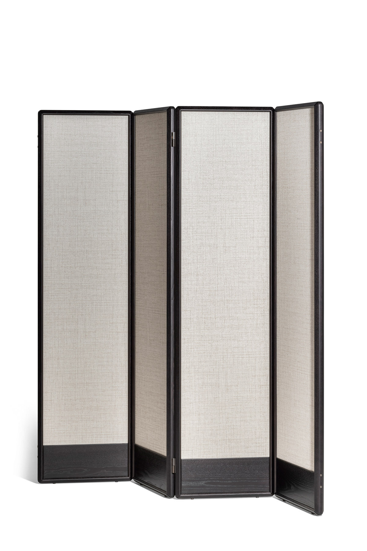 Ширма DUO состоит из 3 4 или 5 модулей высотой 180 см рамы из массива ясеня с различными вариантами отделки и панели с пустотелой сердцевиной. Экран полностью настраиваемый: для модулей можно выбрать обои или по запросу ткань или кожу. Кроме того модули могут иметь две стороны с различной отделкой. Ножки экрана регулируются по высоте благодаря регулировочным устройствам. Металлические детали выполнены из бронзированной латуни.