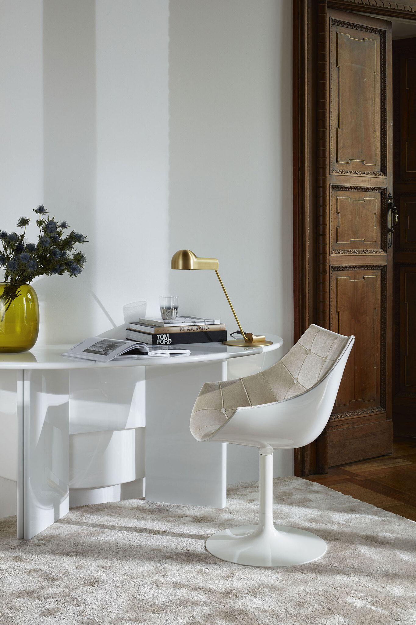 Японский архитектор Кадзухидэ Такахама спроектировал Antella как по-настоящему многофункциональный предмет мебели. В зависимости от конкретных потребностей, он может быть преобразован из настенной консоли в современный овальный стол, что делает Antella культовым и универсальным. Структура лакированной консоли выполнена из полиэстера, что напоминает о древней традиции нанесения лаков, которой восхищается автор и которая часто использовалась в других изделиях коллекции Simon конца 1960-х годов. Структура лакированной консоли выполнена из полиэстера, что напоминает о древней традиции нанесения лаков, которой восхищается автор и которая часто использовалась в других изделиях коллекции Simon конца 1960-х годов.