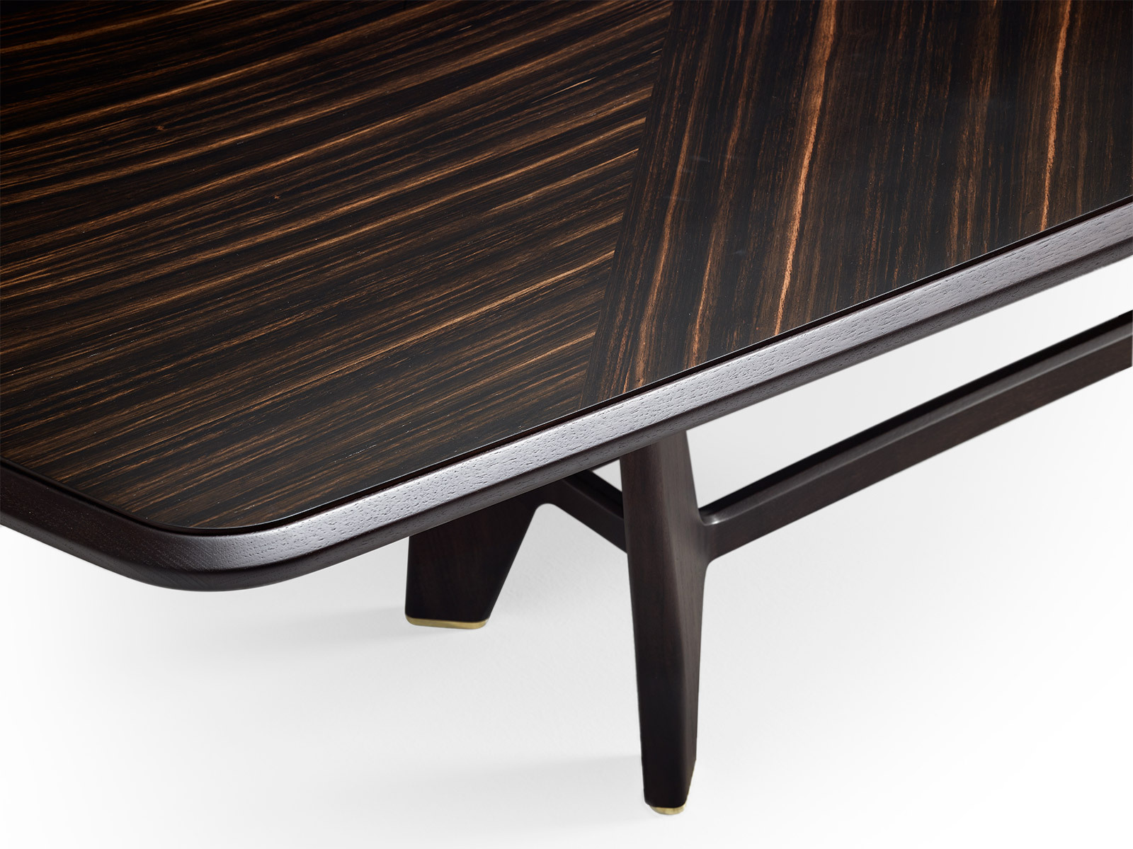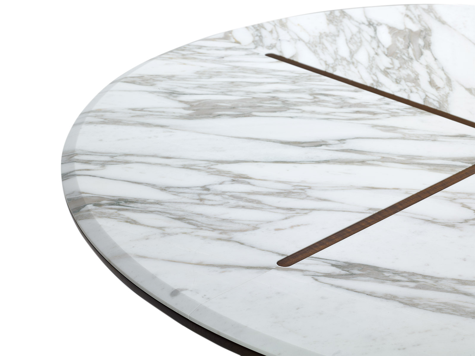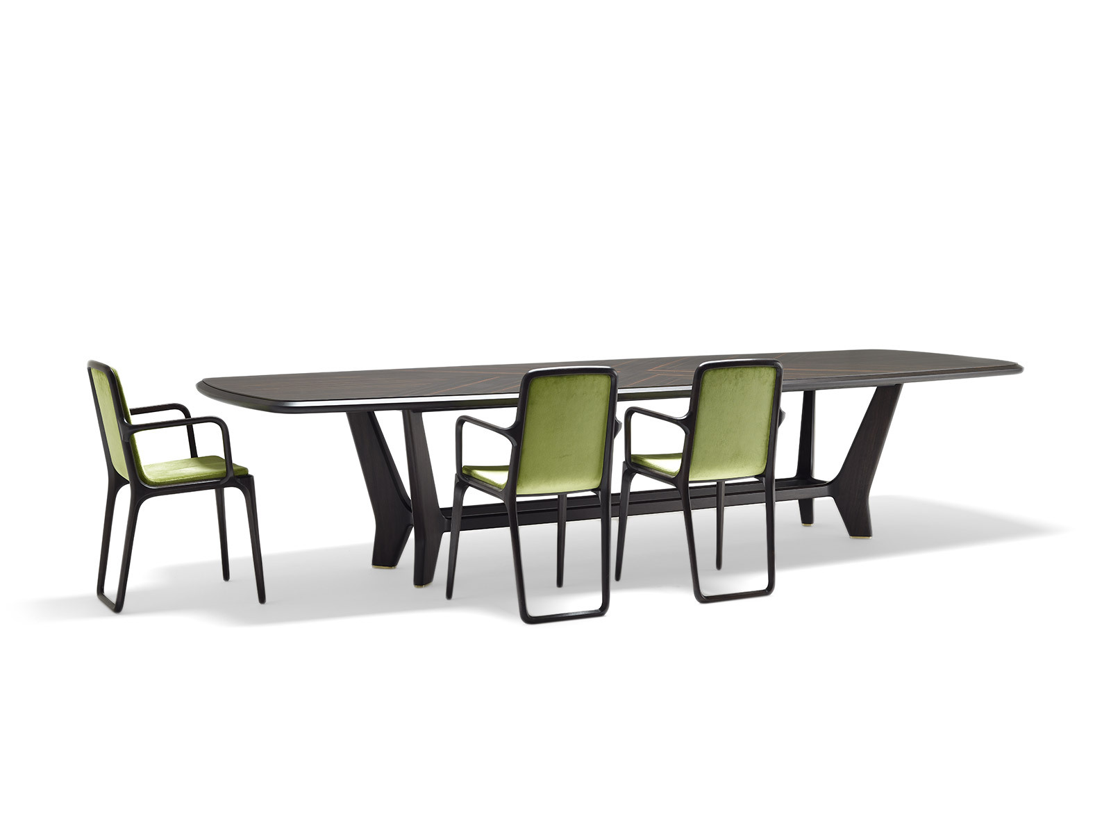 Открытость экспериментам означает принятие новых вызовов как например в дизайне стола Grand Diner созданного Джузеппе Казарозой в 2017 году. Круглая версия этого стола имеет столешницу из ореха эбенового дерева или мрамора а также доступна прямоугольная версия со столешницей из ореха или эбенового дерева. Задачей дизайна было интерпретировать материал убрав проблемы связанные с его неподвижностью и монументальным эффектом. Решением для круглого стола стало разделение столешницы на четыре секции с крестообразной вставкой из американского ореха. Это позволило облегчить громоздкий вид мраморной столешницы и создать оригинальный дизайн за счёт прожилок на деревянной. Основание выполненное с динамичным силуэтом и завершённое латунными ножками помогает смягчить общий эффект стола. В итоге получился обеденный стол с эксклюзивным дизайном безусловный центр важных общественных событий. Круглая версия может быть дополнена вращающимся деревянным подносом Lazy Susan с отделкой из ореха или эбенового дерева. Проект Grand Diner вдохновил создание другого изделия — Petit Diner.