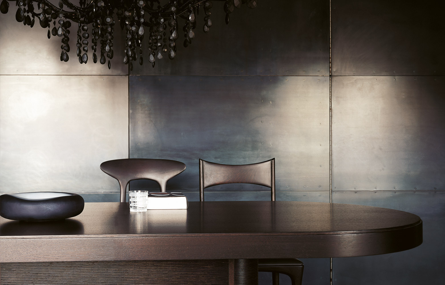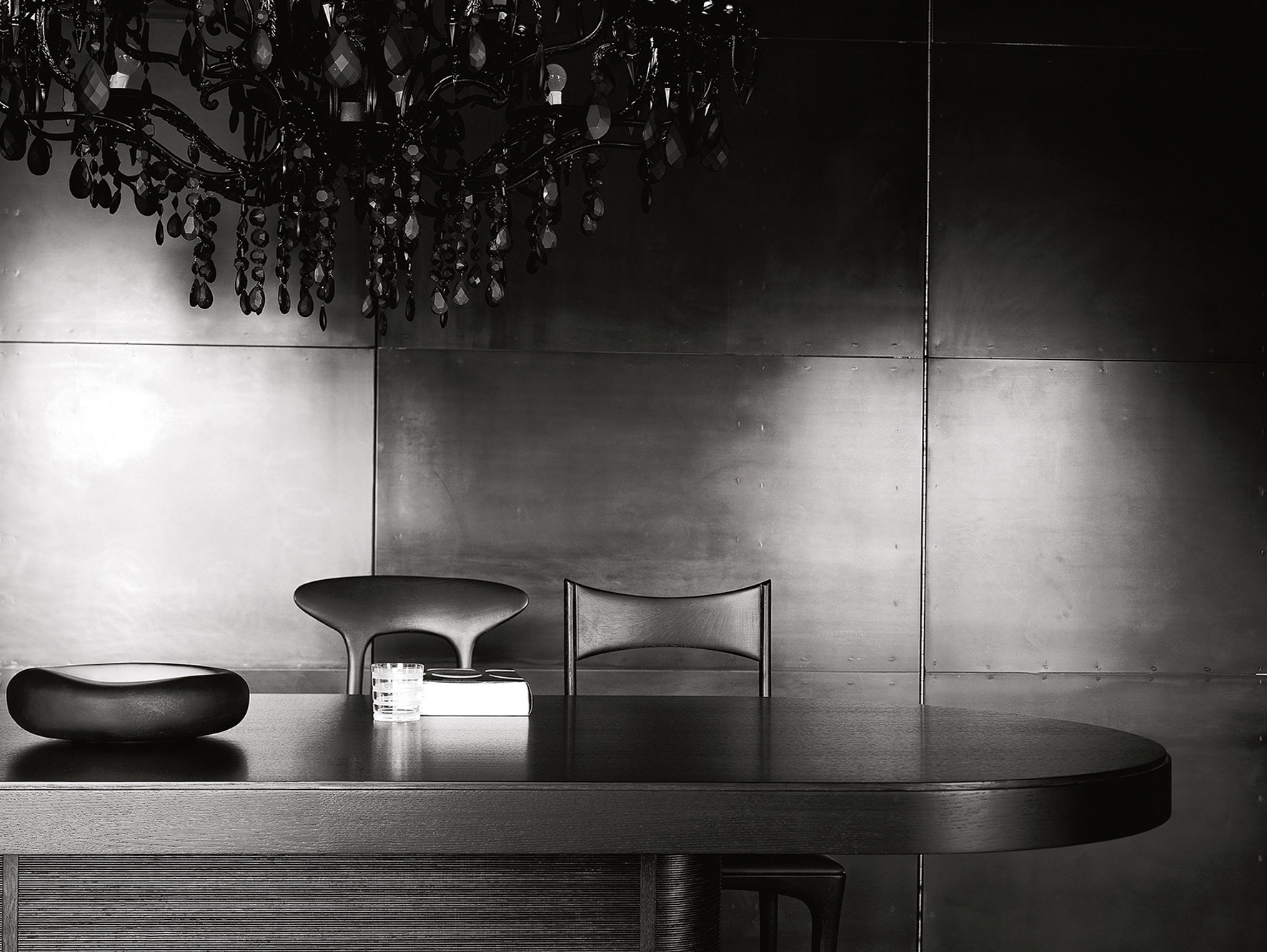 Стол I.C.S. Tavolo созданный Роберто Лаццерони в 1999 году отличается строгим линейным стилем который уравновешивает крупные размеры. Вдохновение дизайнер черпал в итальянском дизайне XX века. Этот предмет входит в коллекцию которая изначально была широкой и включала I.C.S. Tavolino консоль письменный стол и буфет. Изготовлен из массива американского ореха и шпонированной фанеры. Выпускается в различных размерах — круглой овальной квадратной и прямоугольной формы. Самой отличительной и инновационной чертой является рифленая текстура также использованная в мебели для хранения из той же коллекции. Эффект достигается нанесением наложенных слоёв шпона друг на друга и их последующей фрезеровкой создающей эффект накатки. Этот стилистический приём придаёт изделию элегантность и подчёркивает мастерство Ceccotti Collezioni как лидера в ремесле. Каркас основания выполнен из матовой нержавеющей стали однако также доступен в варианте из полированной латуни для разных стилистических решений.