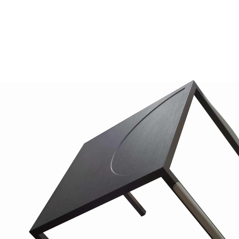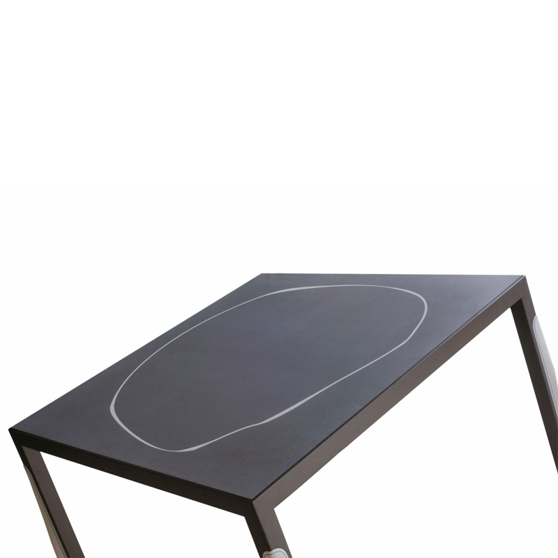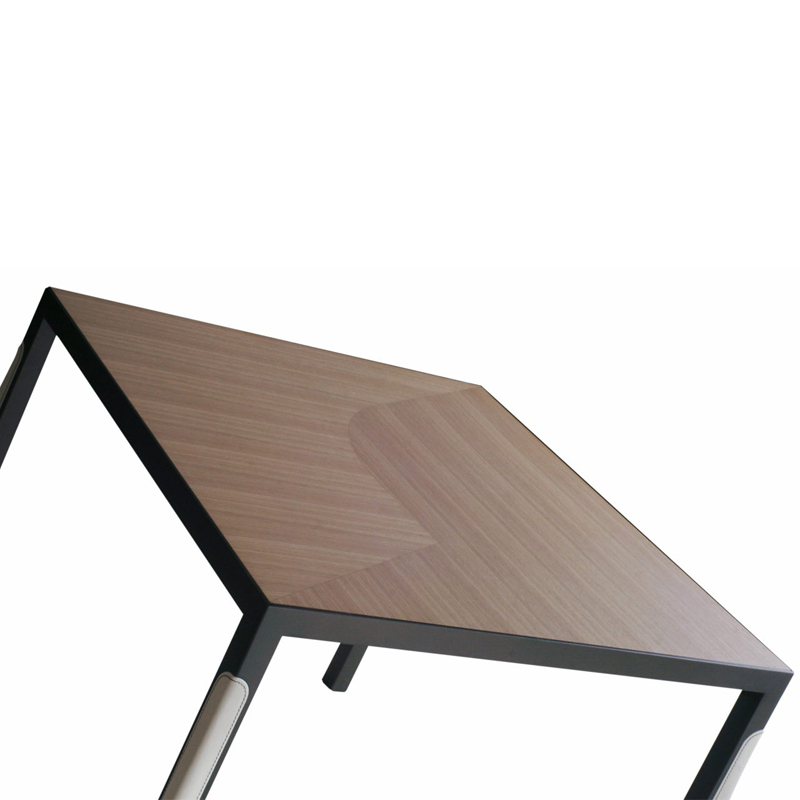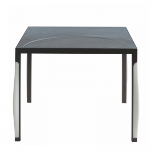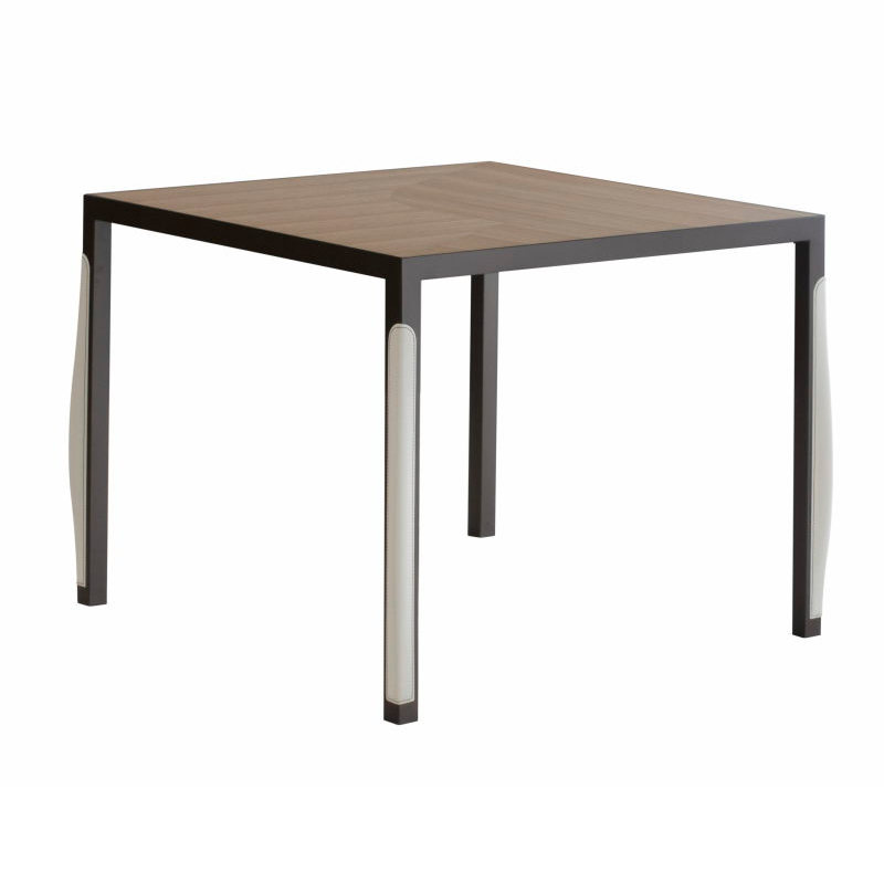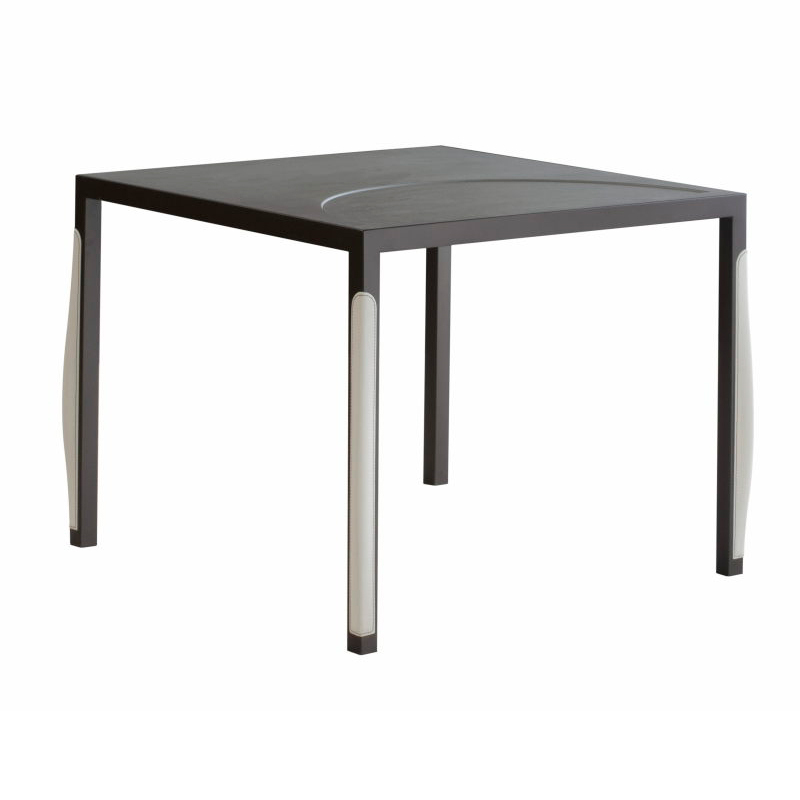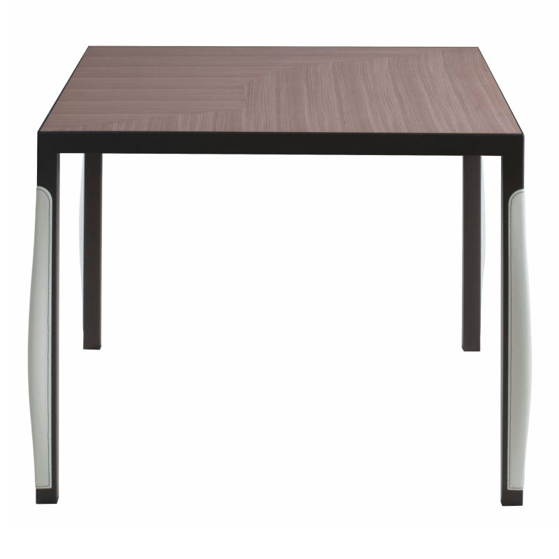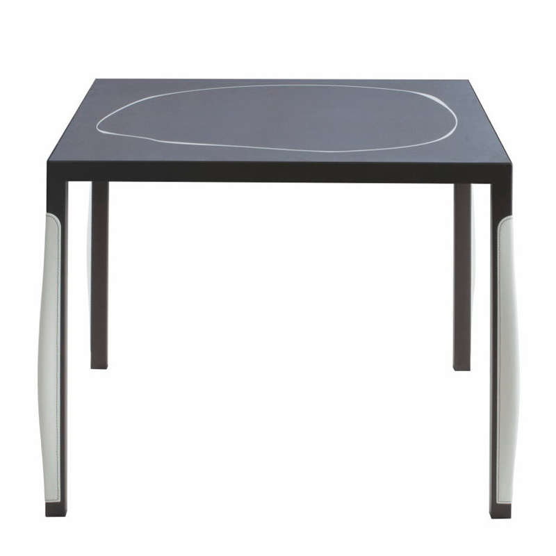 Квадратный стол FAYI 78020 со столешницей из натурального гранита K-proof, углы металлических ножек смягчены кожаной обивкой. Размеры [W x D x H] в мм: 925 x 925 x 680