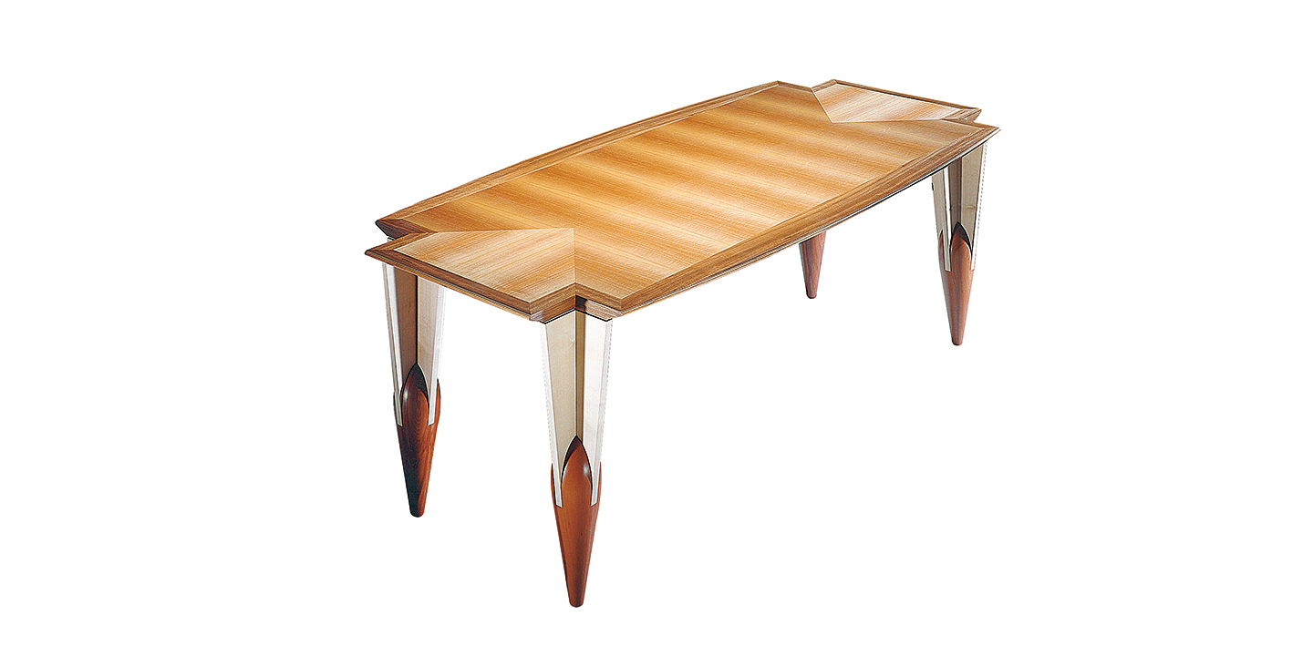 Столешница покрыта шпоном французского и итальянского ореха, ножки - груша и клен. 102 x 210 x 74 см