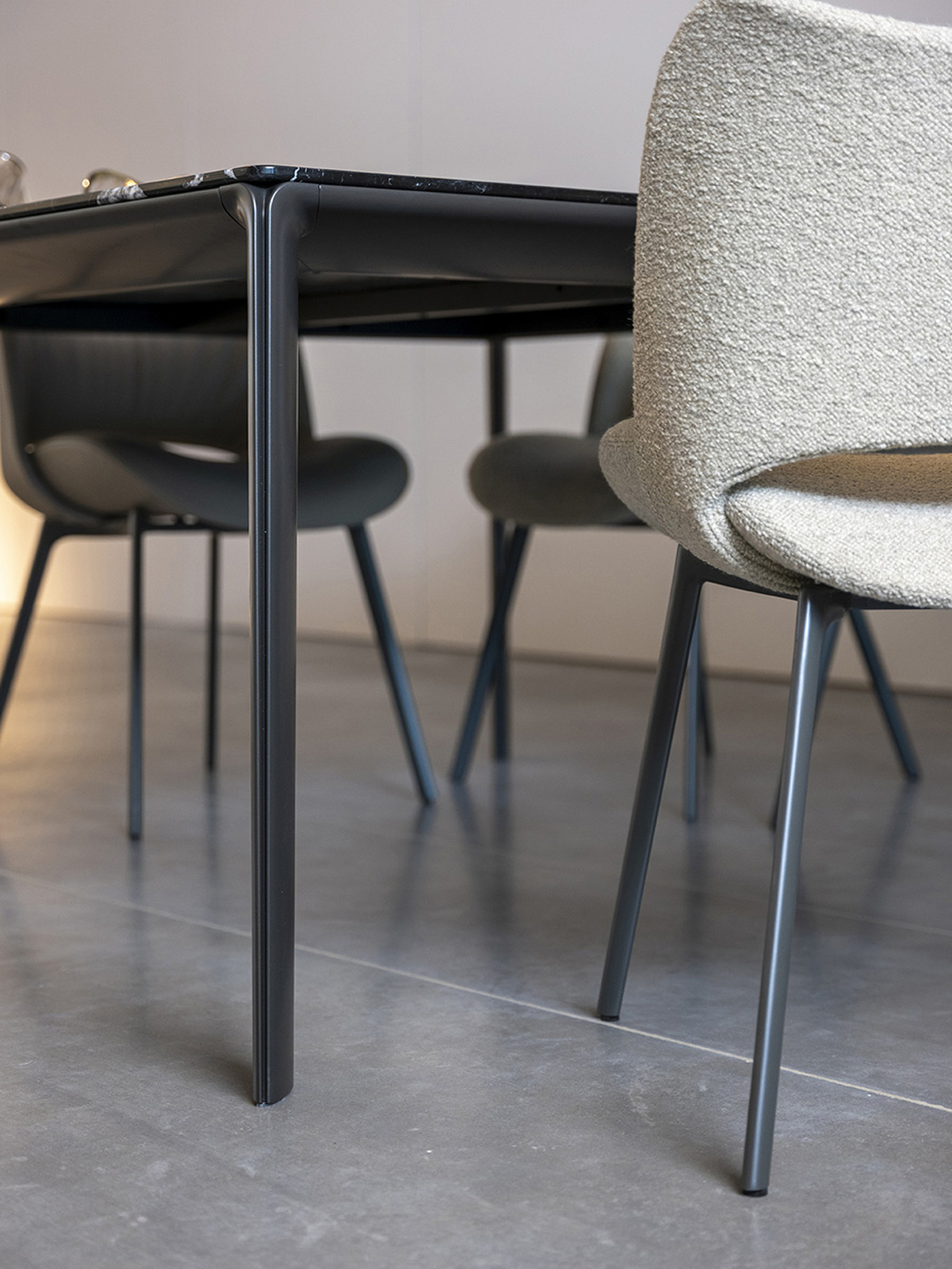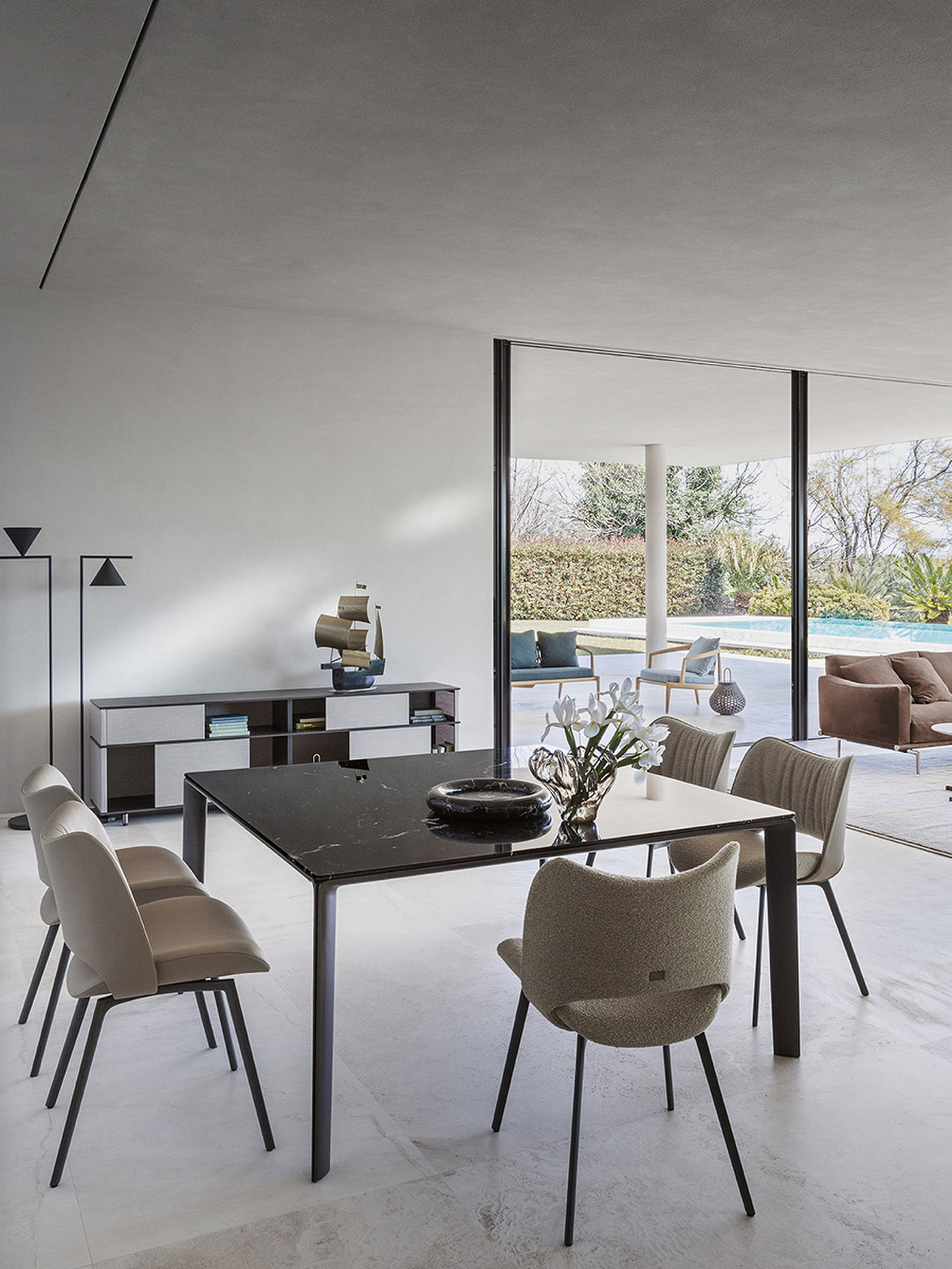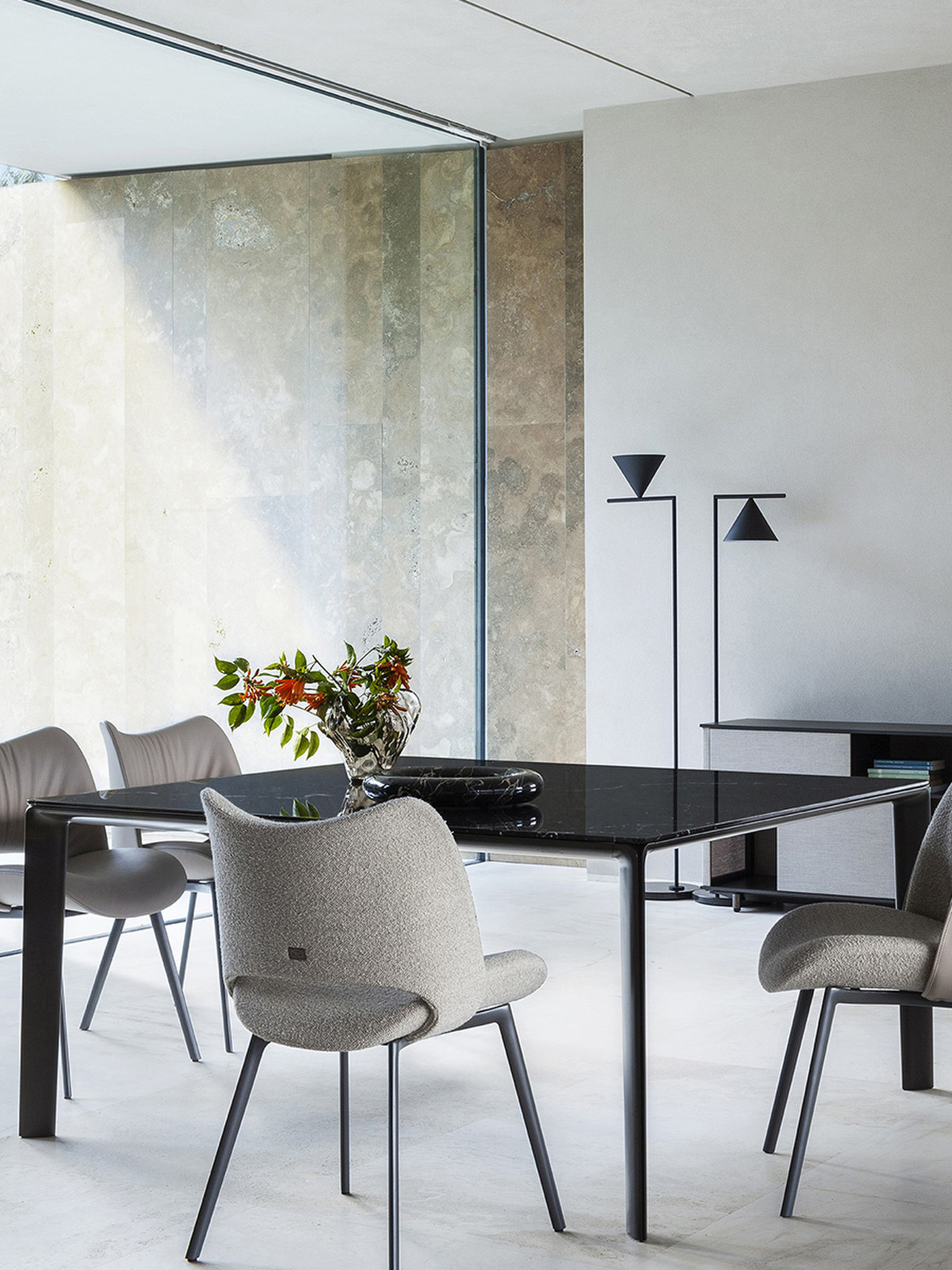 Обеденный стол выпускается в четырех размерах - прямоугольном и квадратном, с деревянными или мраморными столешницами. Homey предлагает более современный язык дизайна для создания теплого и гостеприимного дома, наполненного элегантными и самобытными изделиями.