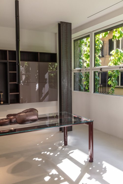 Стол Ventiquattro, разработанный Пьеро Лиссони, пополнил коллекцию Porro. Столешница из сверхпрочного стекла толщиной 12 мм с закругленными краями, благодаря чему сварная трубчатая металлическая рама основания остается полностью открытой. Ножки диаметром 8 см образуют двойную эстакаду, соединенную двумя цепями: такой подход к конструкции обеспечивает высокую прочность и жесткость даже при очень больших габаритах. Ширина представленного стола составляет 4 метра, но он также доступен в вариантах шириной 200 см, 240 см и 3 м. Доступна только глубина 1 м. Столешница выполнена из особо прозрачного стекла, в то время как для основания были разработаны новые металлические покрытия, как глянцевые, так и матовые, чтобы подчеркнуть форму: черное, белое, железное, серебристое, зеленовато-зеленое, азуки.