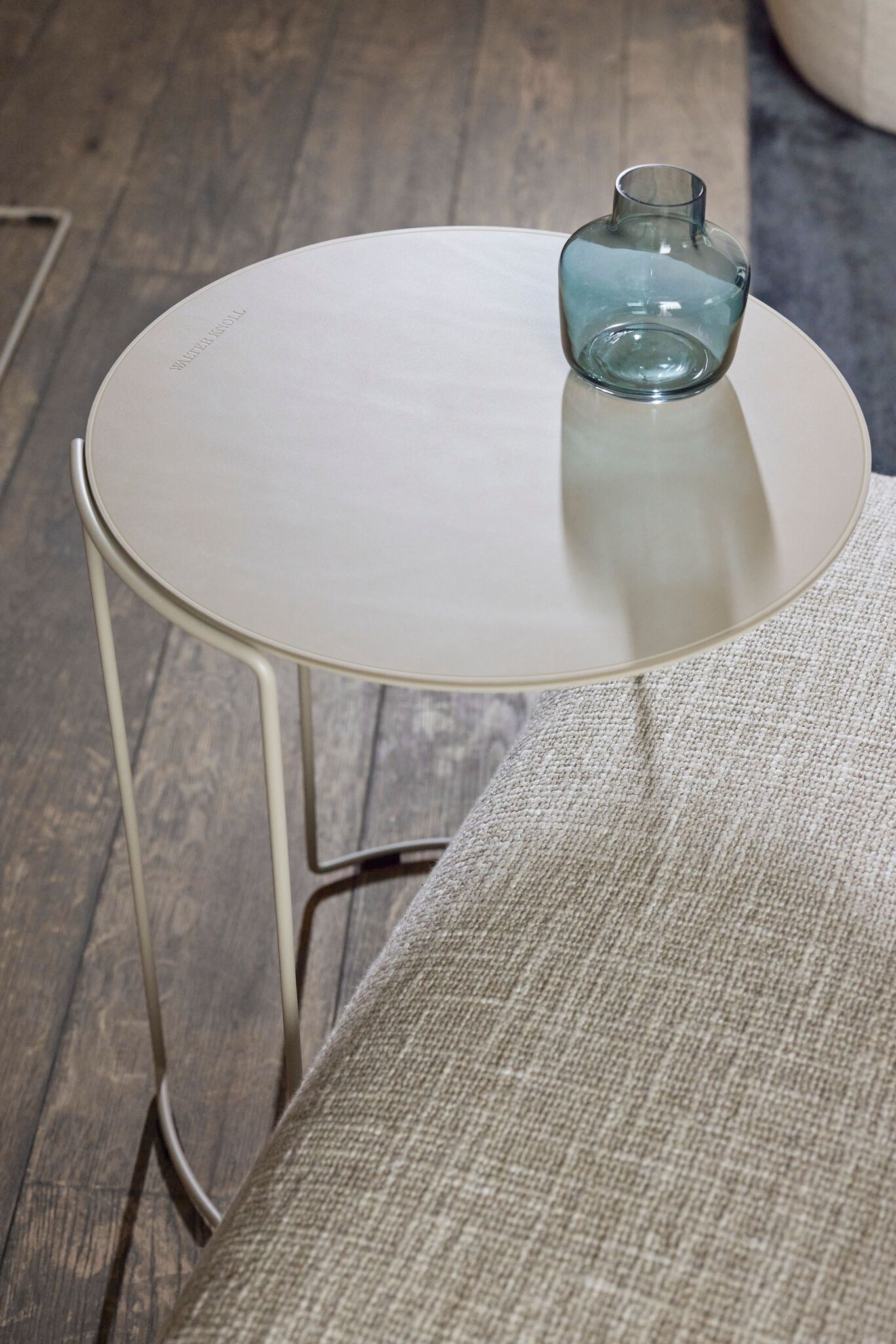 Гибкая, элегантная, универсальная. Oki легко впишется в любую обстановку - в качестве кофейного столика или сервировочного столика для чашечки чая или бокала вина. Теперь он оснащен новой поверхностью из тонкой кожи, которая придает ему теплоту и элегантность. Мягкая на ощупь и изысканная по эффекту.