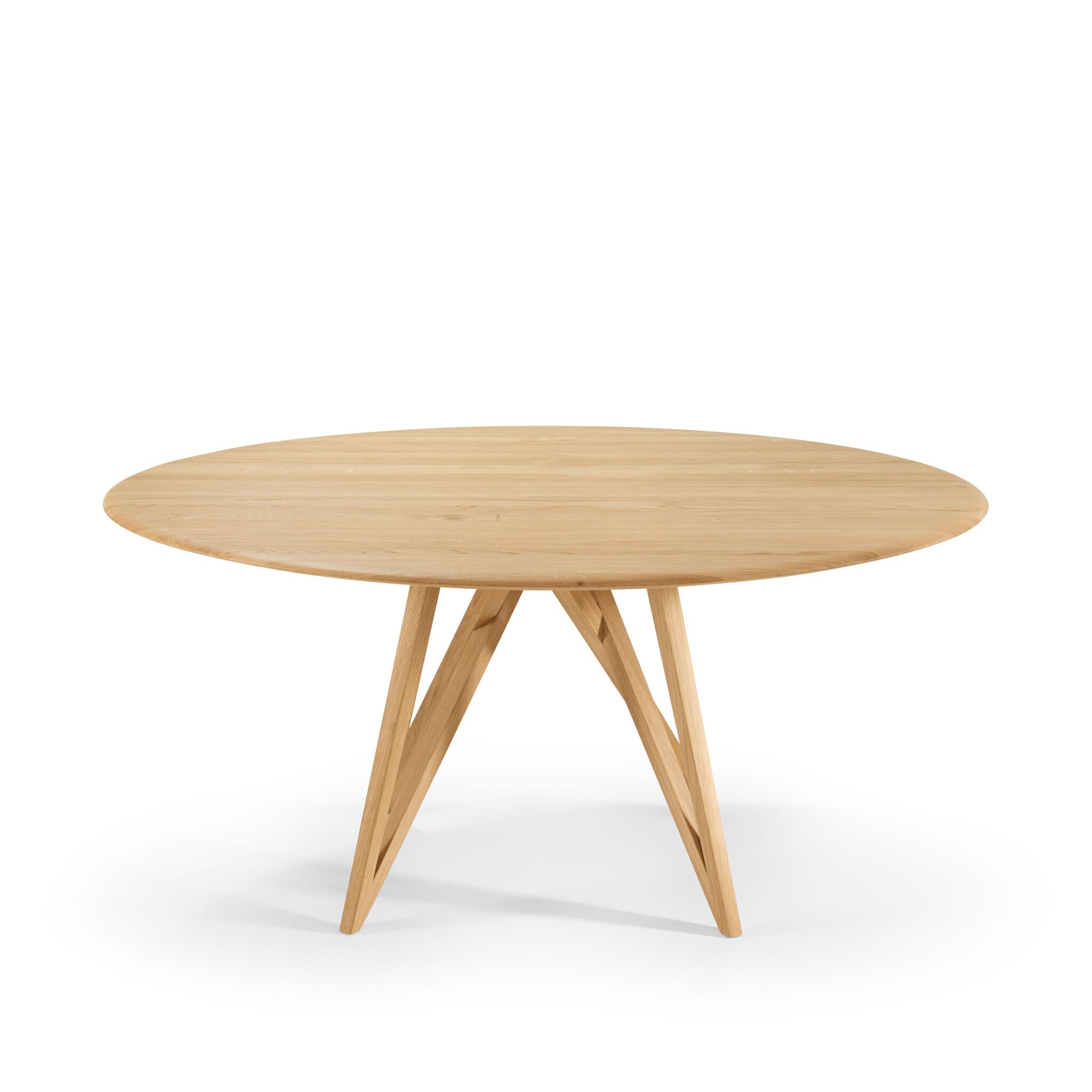 Уникальная настольная скульптура из массива дерева: благодаря балансу линий, углов и поверхностей создается игривое ощущение легкости. Столешница и скрещенное основание могут быть изготовлены из лучших пород дерева, таких как дуб или орех. Деревянный стол имеет форму лодочки и представляет собой круглый обеденный стол разных размеров.
