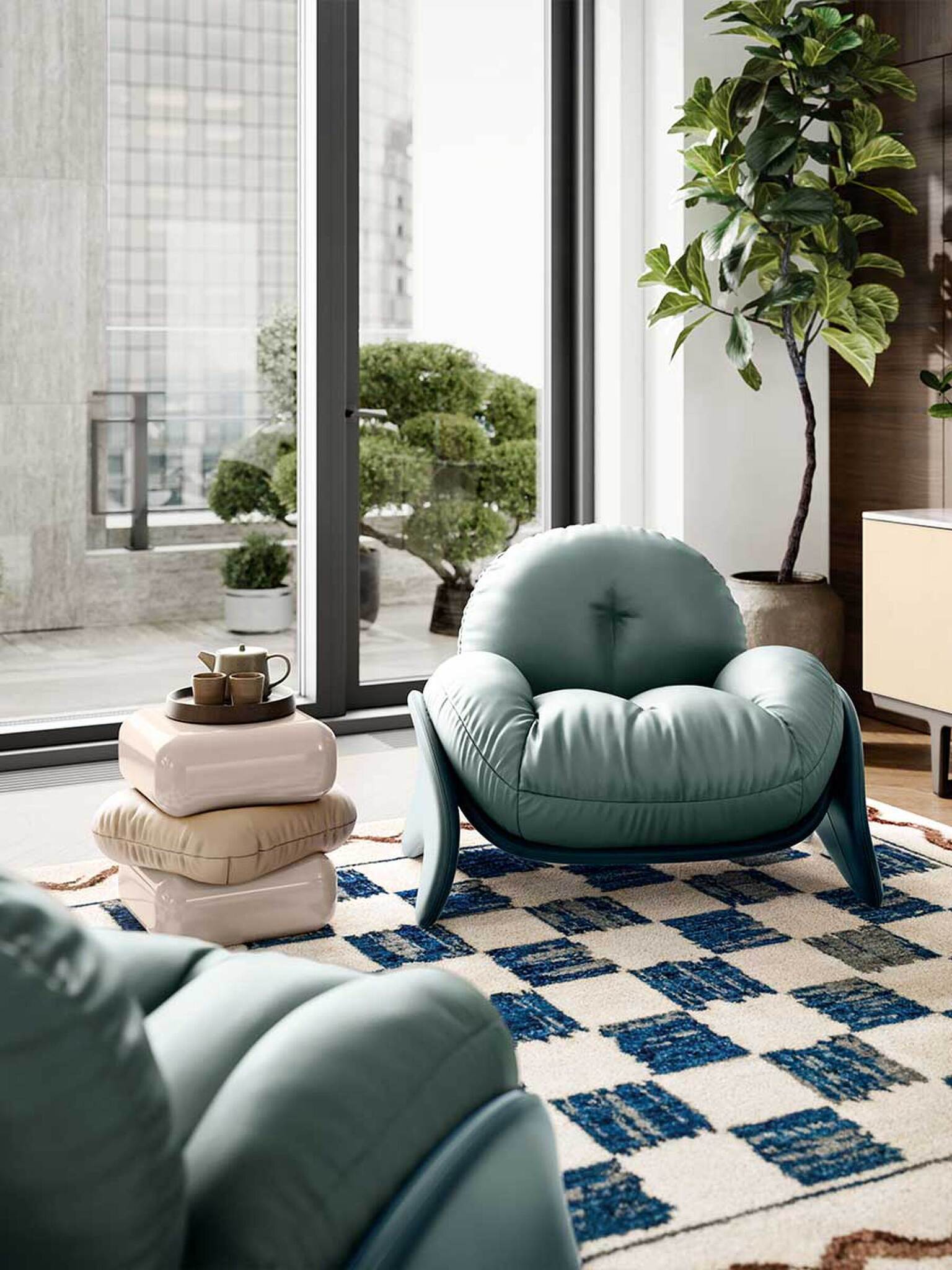 Мягкость, смелость и веселье - все это в одной коллекции: Squash, разработанной британской художницей Фэй Тугуд (Faye Toogood), очаровывает своей легкомысленной беспечностью, начиная с игривого и чувственного названия, отражающего мягкий и скульптурный подход к дизайну. Коллекция создает ощущение комфорта и уюта с первого взгляда. Пышные и смелые, но в то же время нежные и успокаивающие формы сочетаются с сочетанием мягких и жестких материалов. Плавные контуры и мягкая обивка нарушают статичность официальной мебели. Традиционные английские народные элементы переработаны и сочетаются с влиянием 1970-х годов. Сквош предлагает концепцию простой современной элегантности, основанной на уникальных предметах, которые хорошо смотрятся по отдельности, вместе или в сочетании с другой мебелью.