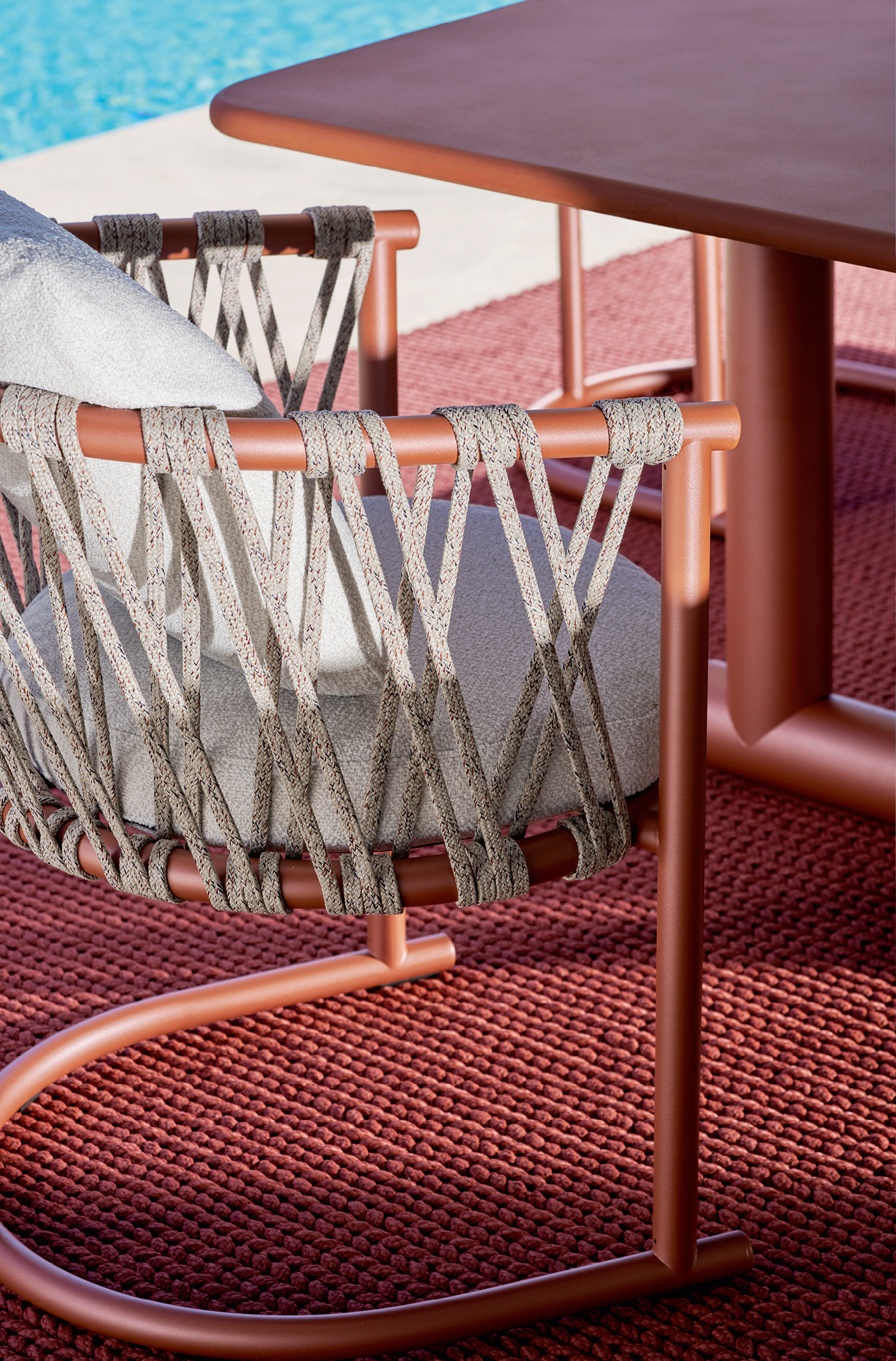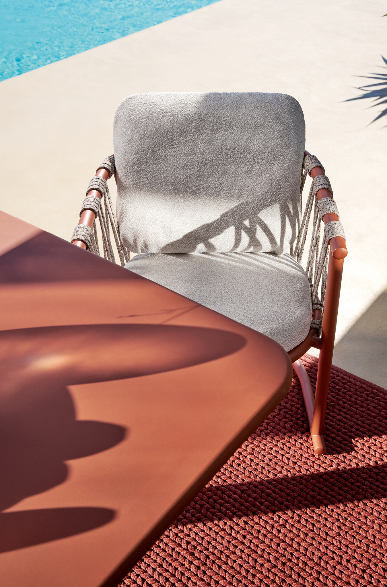 Кресло с игривым характером, округлыми контурами и намеком на средиземноморскую жизненную силу. Кресло-батут - это элегантное приглашение к веселому времяпрепровождению на свежем воздухе. Конструкция, выполненная из трубчатого алюминия, дополнена двумя съемными подушками для сиденья и спинки, каждая из которых обита материалом круглой формы. Кресло-батут - это элегантное приглашение к веселому времяпрепровождению на свежем воздухе. Конструкция, выполненная из трубчатого алюминия, дополнена двумя съемными подушками для сиденья и спинки, каждая из которых обита материалом круглой формы.
