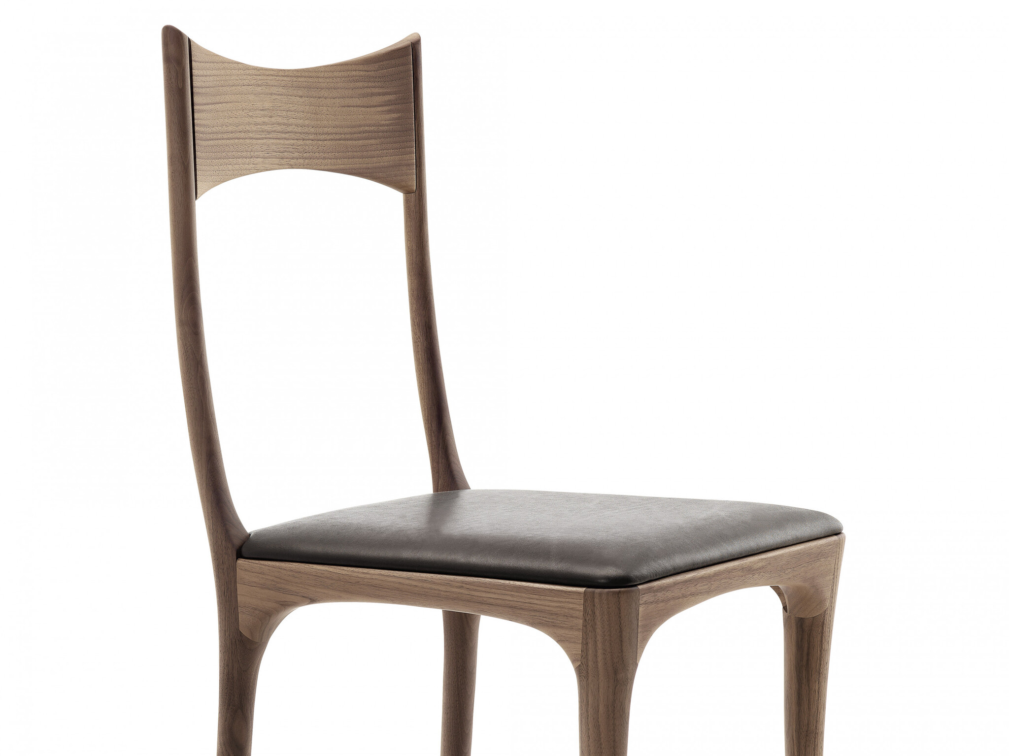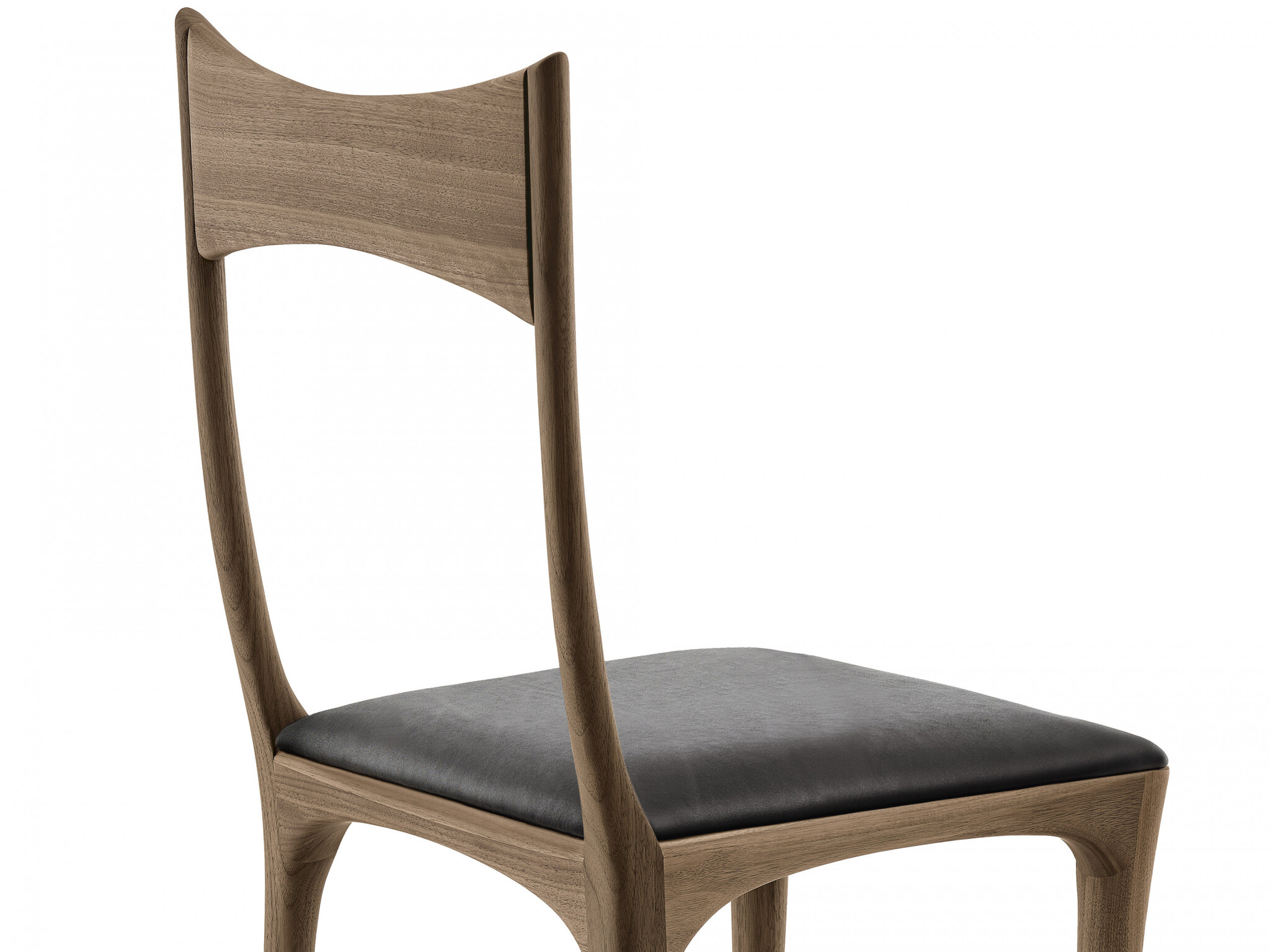 Chumbera Segunda — результат встречи выдающегося итальянского столярного мастерства и чувствительности современного дизайна. Создана в 1988 году на основе успеха модели Chumbera Primera для Ceccotti Collezioni. Роберто Лаццерони вдохновлялся органической архитектурой Гауди выразительным дизайном Моллино сюрреализмом Дали и мастерством изготовления стула Superleggera Джо Понти. Элегантная повернутая деревянная спинка соединяет задние ножки и четыре боковые планки с использованием шипового соединения (mortise and tenon). В результате получается плавный и органичный ансамбль с изысканным дизайном соединений и мягкими линиями ручной работы. Кресло выполнено из массива американского ореха с мягким фанерным сиденьем обеспечивающим комфорт и может быть обито кожей натуральной кожей или тканью для максимальной персонализации.