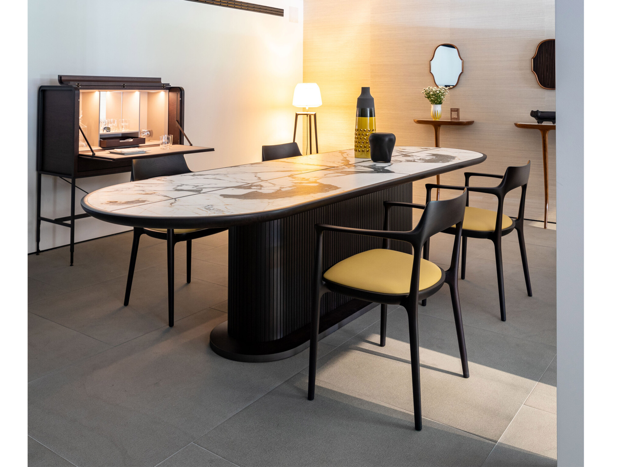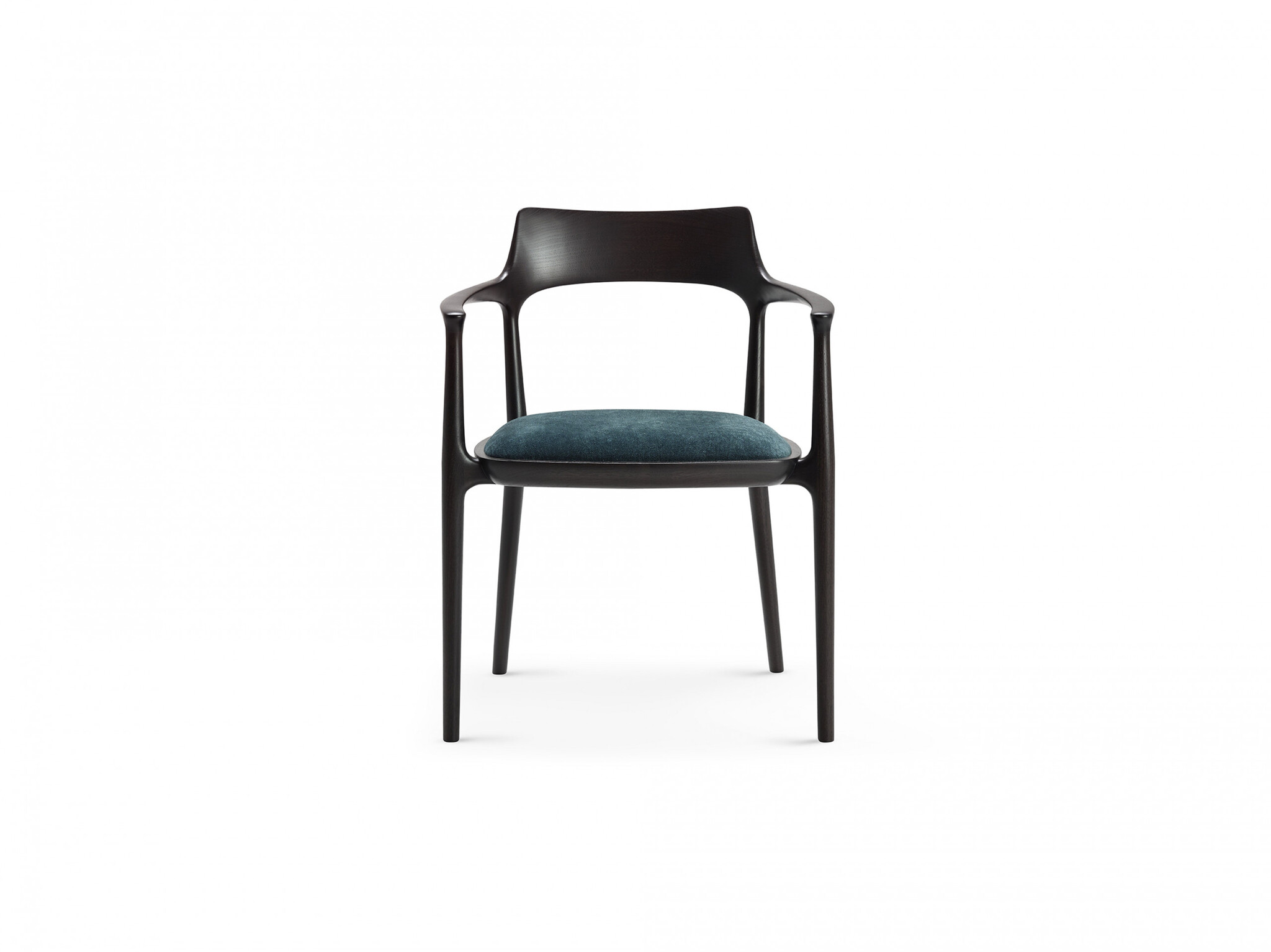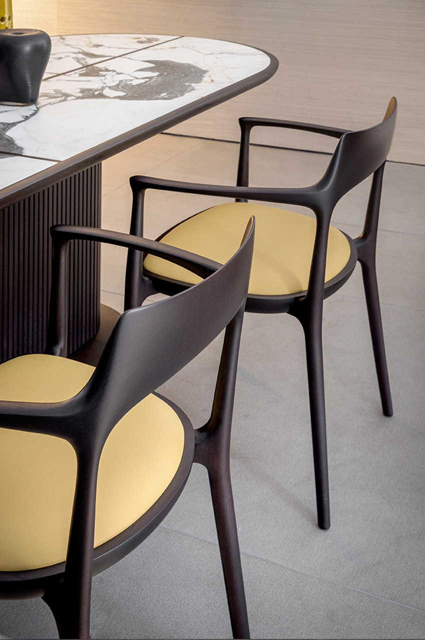 Janine — современная интерпретация одного из исторических продуктов тосканской компании кресла Cigarra. Кресло имеет полированную спинку из массива дерева и мягкое сиденье для максимального комфорта. Тянущийся ремешковый каркас помогает сделать сиденье более мягким и удобным. Кресло доступно в обивке из ткани или кожи Poltrona Frau в различных цветах перечисленных в прайс-листе.