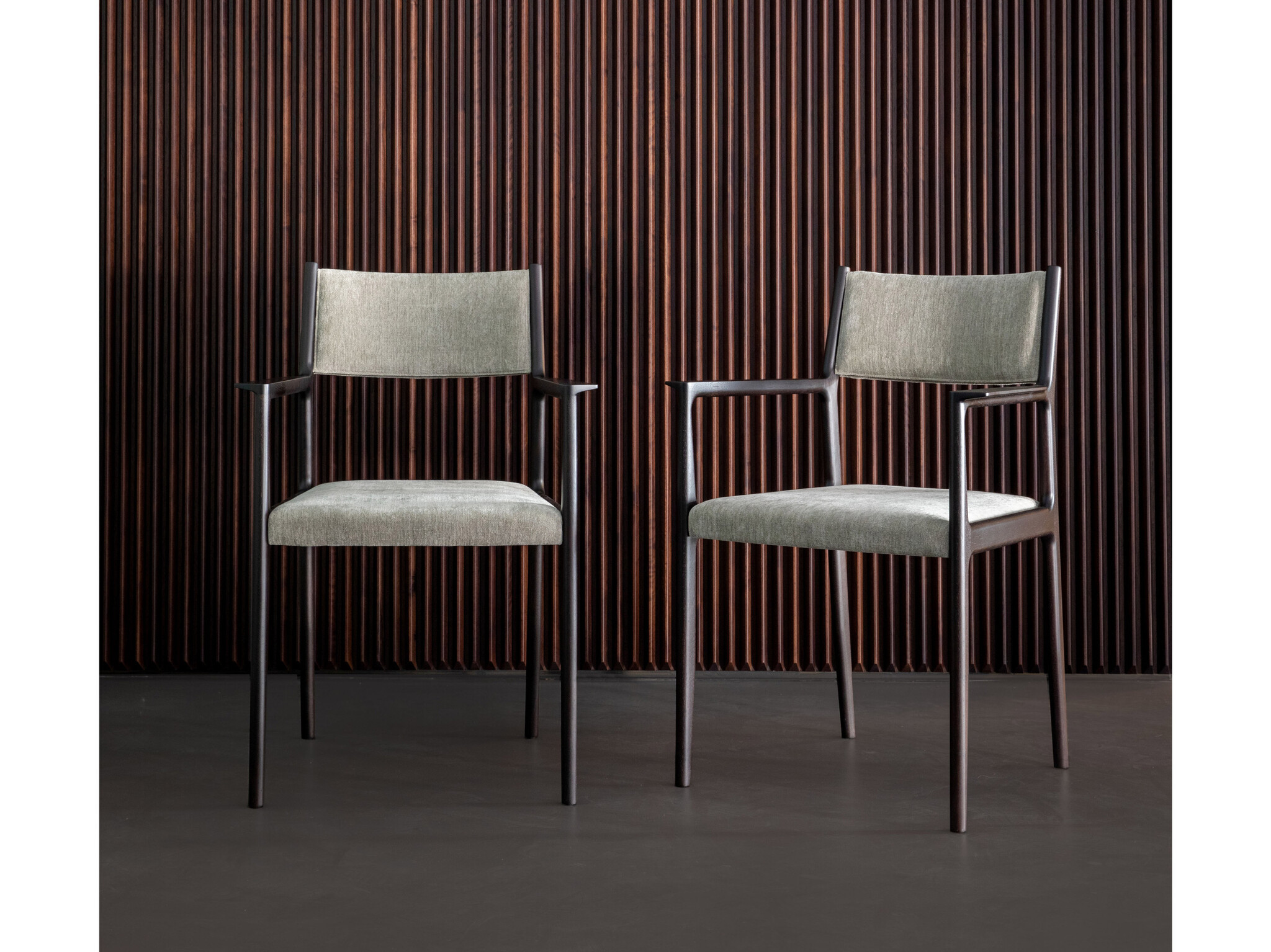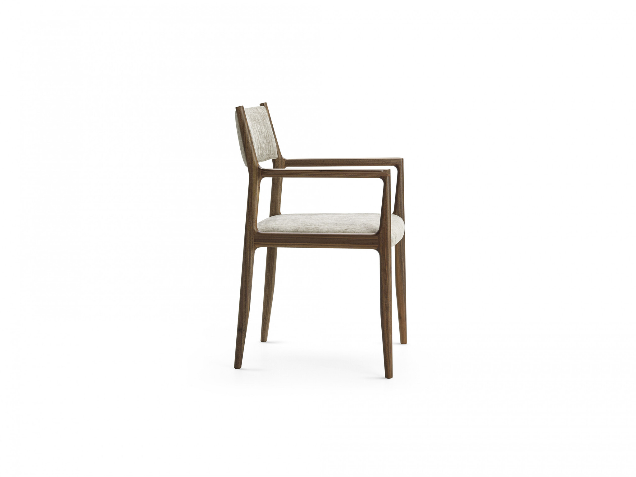 Стул Lisa вдохновлен возможно самым знаковым изделием созданным Джо Понти — стулом Superleggera который оставил свой след в истории дизайна сохранив функциональную сущность и вечную привлекательность делающие его актуальным в любом интерьере. Название — нежное напоминание о фигуре и характере дочери Джо Понти Лизы Личитра Понти. С детства изучая работы отца от которого она унаследовала страсть к искусству она отличалась утонченностью и элегантностью как и стул посвящённый ей. Lisa выполнена по уникальной технологии: две симметричные стороны вырезаны из единой доски ореха или тополя где единственным выступающим элементом является широкий и комфортный но строгий по форме подлокотник. Стул можно обить тканью или кожей Poltrona Frau в цветах из прайс-листа. Lisa переосмысливает суть и чистоту Superleggera Понти создавая знаковое изделие максимально раскрывающее потенциал материала как с конструктивной стороны так и с технической.