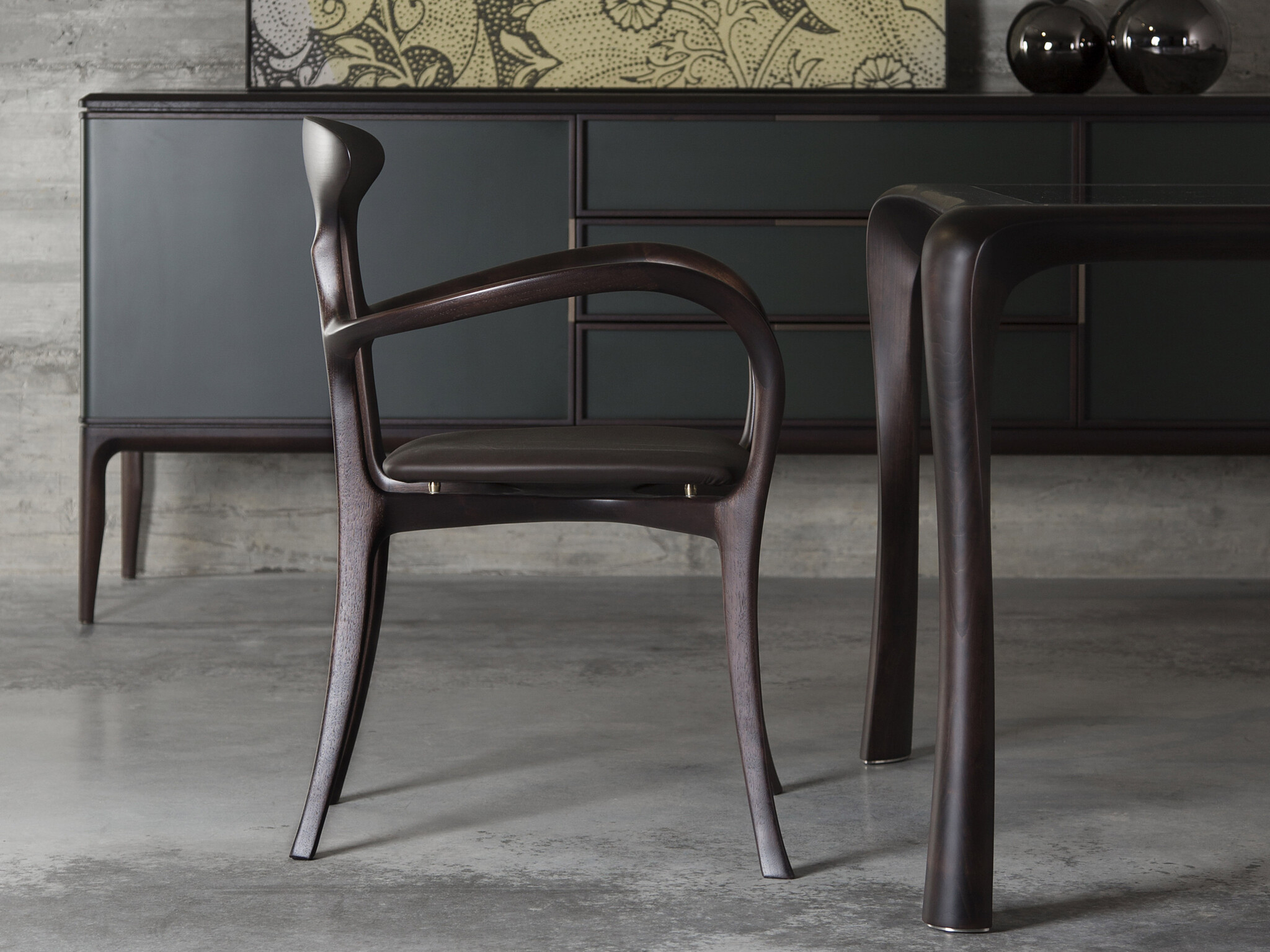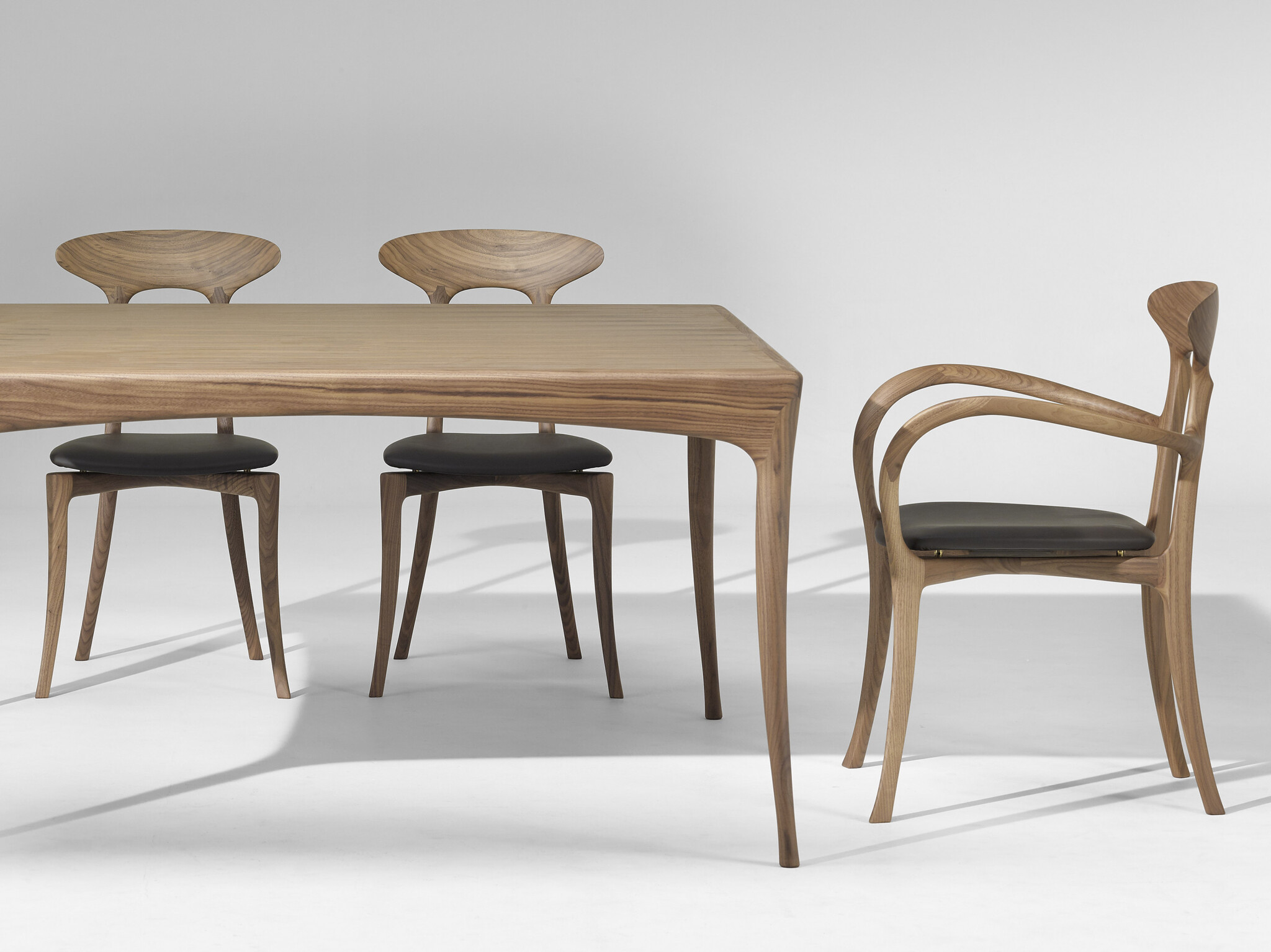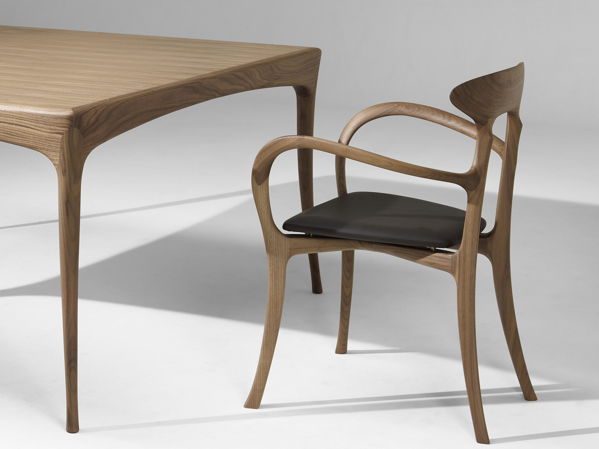 Стул Ma Belle с изысканным и узнаваемым силуэтом вдохновленным дизайном 1950-60-х годов добавляет индивидуальности и прекрасно вписывается в любые жилые и коммерческие интерьеры. Разработан Роберто Лаццерони в 1994 году — отличный пример того как традиционное столярное мастерство можно транслировать в промышленное производство. Стул имеет органичную форму и необычайно легкое ощущение — результат игры плавных линий и больших пустот. Доступен с подлокотниками и без. В версии с подлокотниками они соединяют спинку с передними ножками создавая уникальный дизайн. Ma Belle изготовлен из массива американского ореха различной толщины: мастерски выполненная спинка вырезана из цельного куска толщиной 100 мм. Планки соединены образуя X-образную конструкцию которая надежно поддерживает сиденье. Мягкое сиденье из фанеры тополя размещено на четырёх латунных втулках обеспечивающих фиксацию и стабильность. Нижняя часть выполнена из шпона ореха.