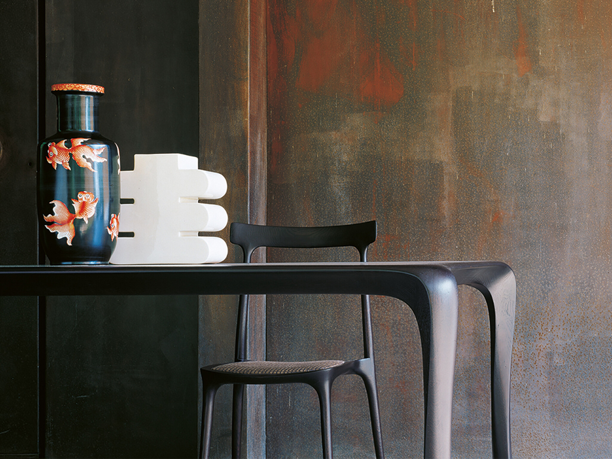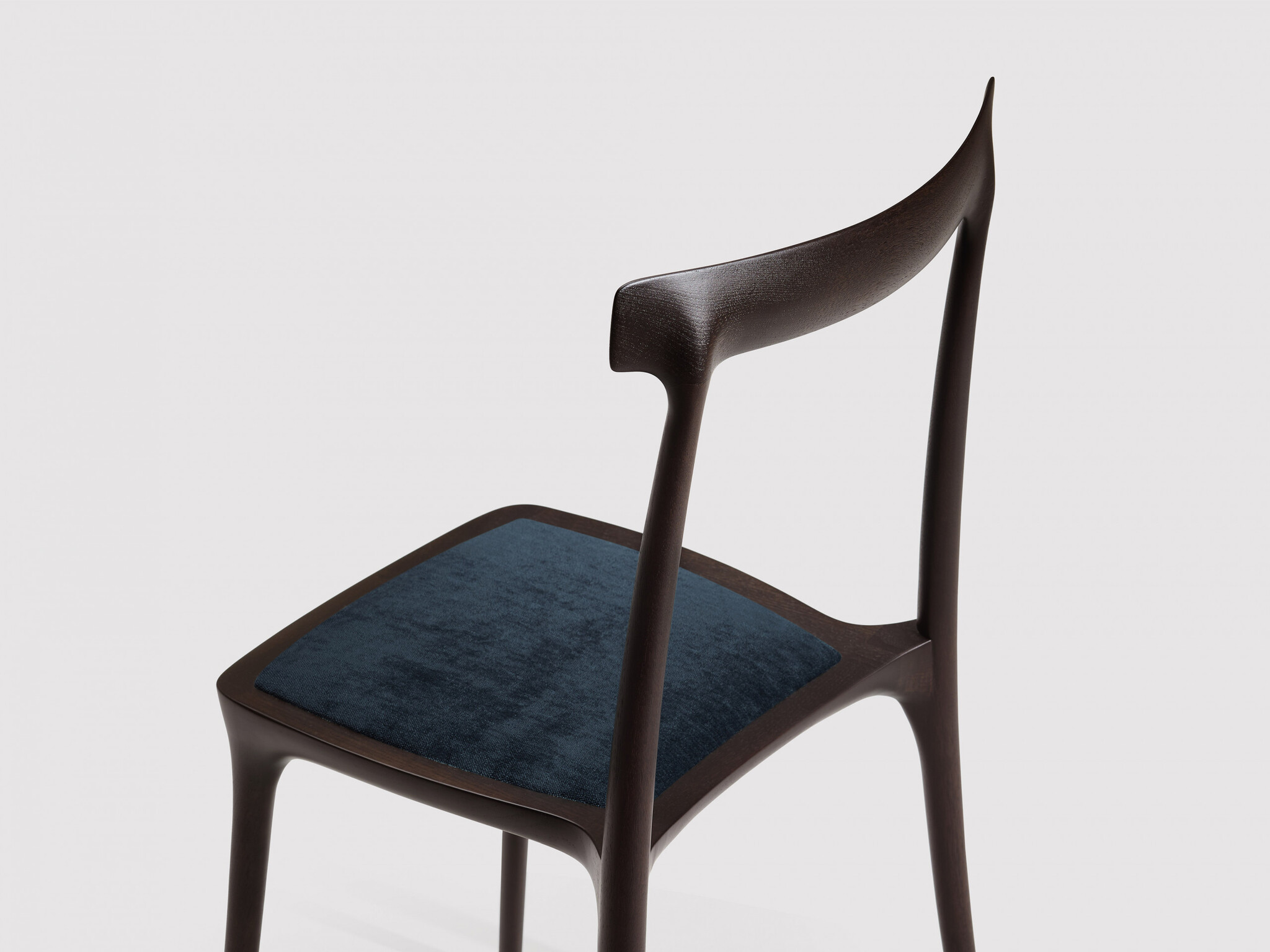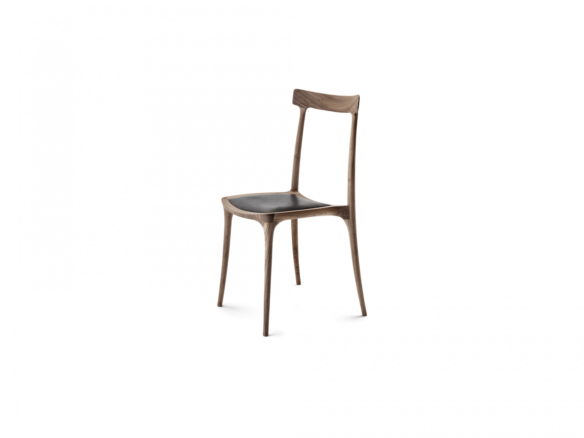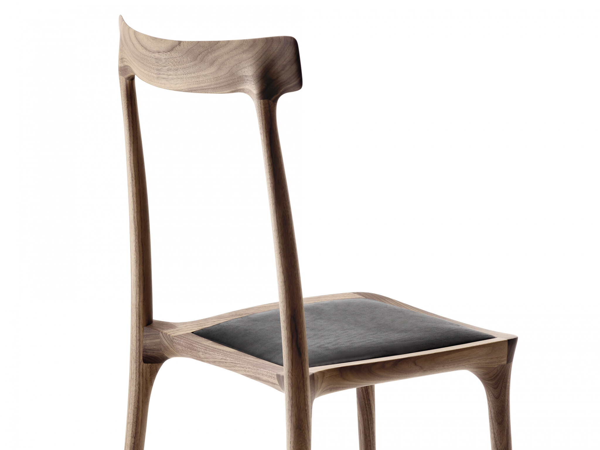 Кресло P.J. спроектированное Роберто Лаццерони в 1998 году представляет собой новое прочтение архетипа кресла с упором на простые формы. Оно мастерски выполнено из массива американского ореха с максимальным вниманием к деталям что гарантирует создание качественного дизайна с изящными элементами создающими ощущение легкости. Спинка выполнена из цельного куска массива дерева толщиной 105 мм с плавными линиями. Простое по форме сиденье имеет мягкую набивку сверху для комфорта и может быть обито тканью кожей или натуральной кожей. Сиденье ровное по отношению к каркасу состоит из изогнутой верхней части из фанеры тополя и нижней части из ореха.