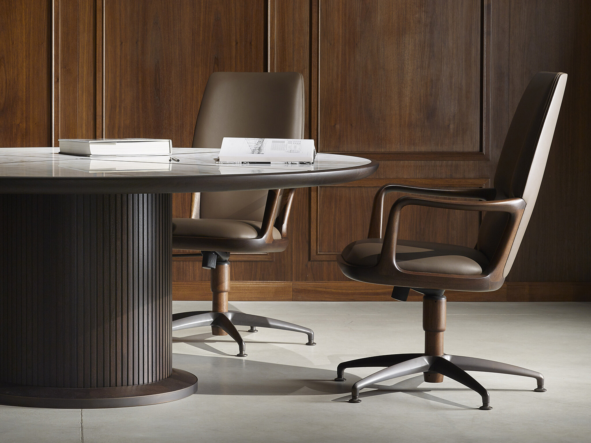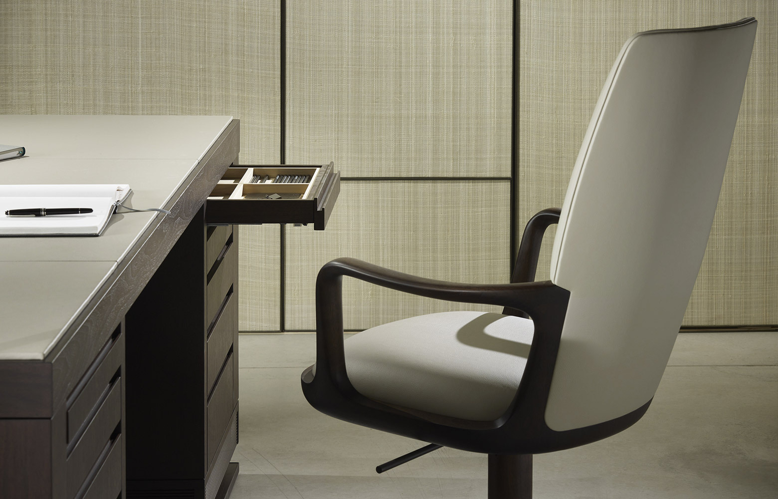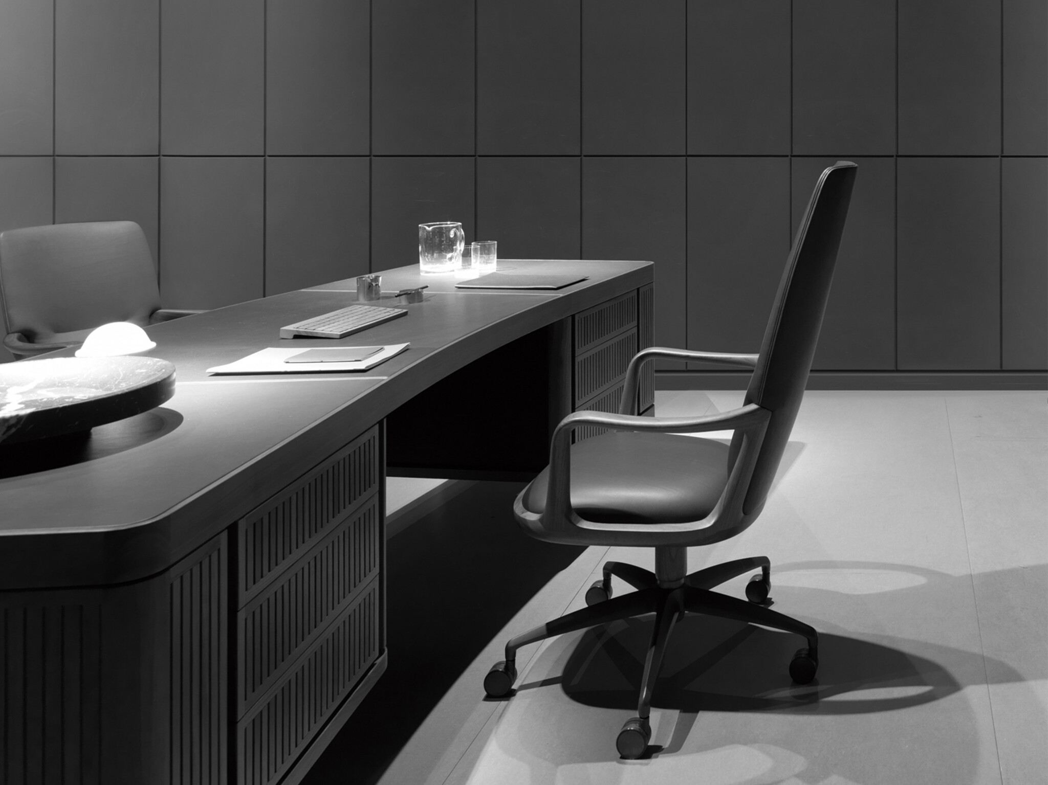 Vossia разработанный Джузеппе Казароза в 2016 году — элегантное кресло руководителя из массива американского ореха с сертификатом FSC. Изогнутая спинка из фанеры тополя с полиуретановой набивкой. Основание на пяти поворотных колесиках выполнено из шлифованного алюминия с бронзовым покрытием. По запросу доступна версия с фиксированными латунными ножками. Основание оснащено фиксированным или газовым подъемным механизмом расположенным между двумя деревянными цилиндрами позволяющим регулировать высоту. Обивка не снимается и предлагается из ткани кожи или натуральной кожи в разных цветах. Для большего комфорта спинка предлагается в трех вариантах высоты; низкая версия напоминает гостевое кресло.