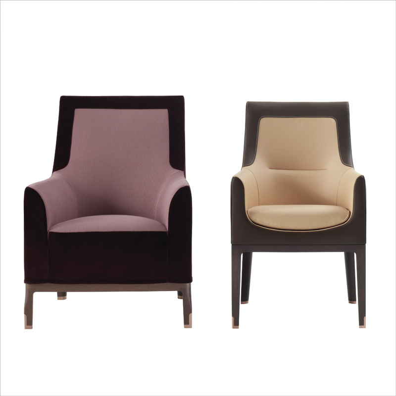 Кресло ELXI 20013 2013u кресло с обивкой, каркас из суккупиры или натурального дуба, снаружи спинка из ткани или кожи, внутри и сиденье из той же или другой ткани или кожи, металлические наконечники Размеры [W x D x H] в мм: 600 x 620 x 920