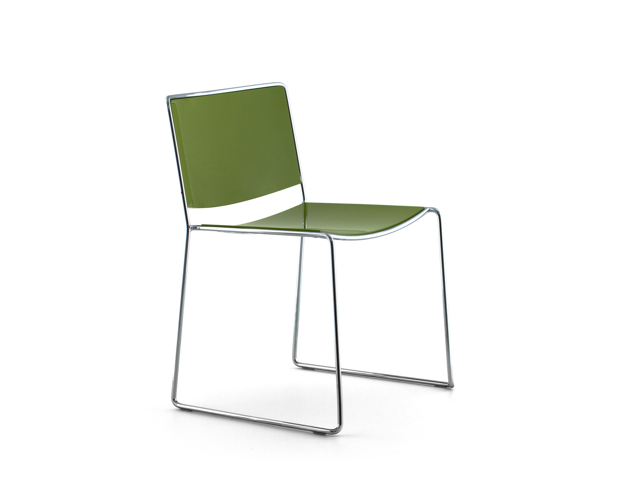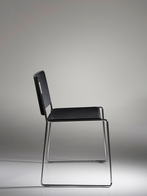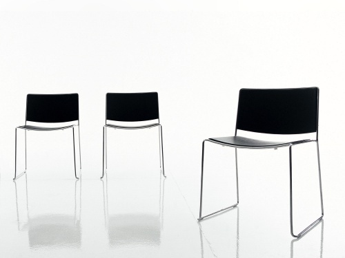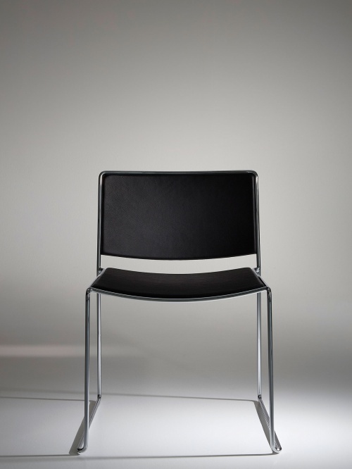 Чрезвычайно прочный, штабелируемый, одинаково подходящий как для работы, так и для дома и в общественных местах, шпиндель изготовлен из хромированной проволоки сверхмалого сечения. Легкость конструкции и материала усиливается за счет поверхностей сиденья и спинки: двух полок из гнутой фанеры. Изготавливается также в варианте табурета, доступен во всех глянцевых цветах нашей коллекции, из кожи, экокожи или набука.