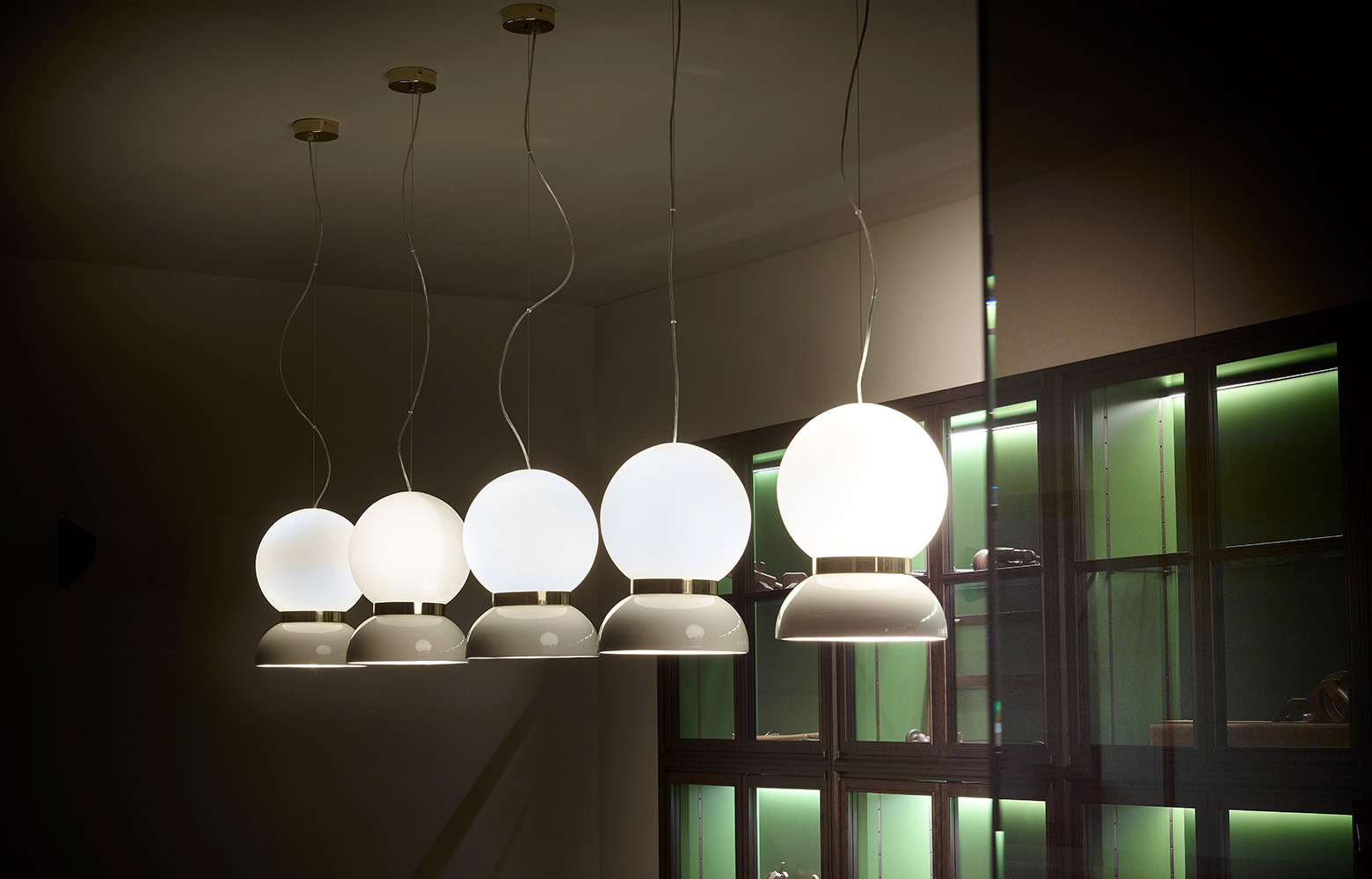 Подвесной светильник Saint Louis был разработан в 2015 году Хайме Хайоном (Jaime Hayon). Произведенный компанией Ceccotti Collezioni он идеально подходит для установки над обеденным столом как отдельно так и в нескольких конфигурациях. Его также можно установить над прикроватным столиком в спальне. Латунная конструкция соединяет белую сферу и керамический абажур доступный в широком ассортименте цветов. Главной особенностью этой лампы является то что свет может быть направлен вниз и в то же время рассеиваться по комнате освещая стеклянную сферу.