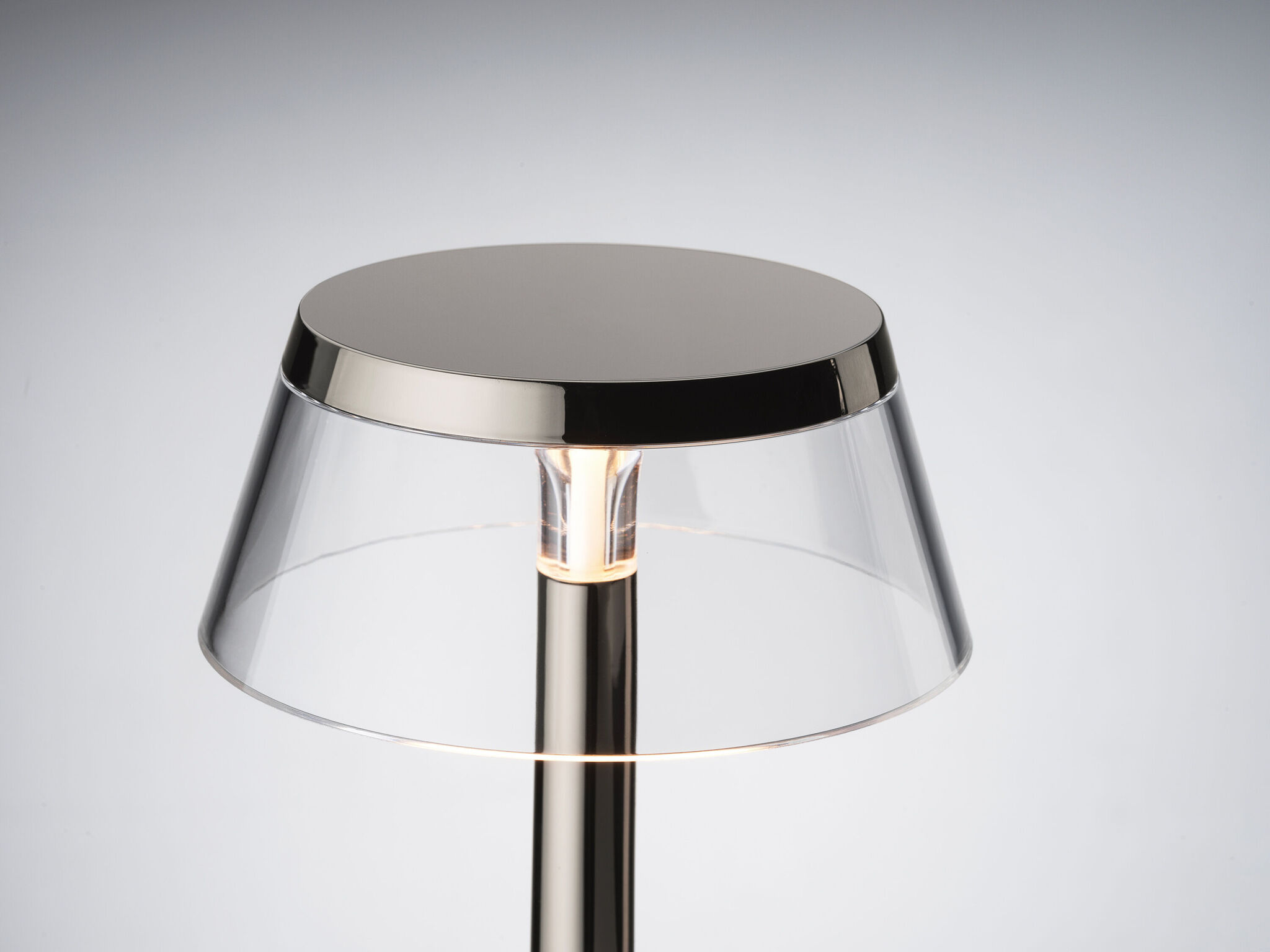 Беспроводная настольная лампа, обеспечивающая прямое освещение. Корпус изготовлен из литьевого сплава и прозрачного рассеивателя PMMA clear. Источник света Edge Lighting technology. Время автономной работы от 6 до 24 часов, перезаряжаемый с помощью USB C и Qi. Оптический датчик переключения на базе, который обеспечивает 4-ступенчатую регулировку яркости и 3-ступенчатую регулировку цветовой температуры (2200 К, 2700 К и 3000 К). В комплект поставки входит кабель для зарядки USB-C полезной длиной 120 см. Подробнее