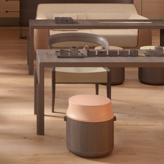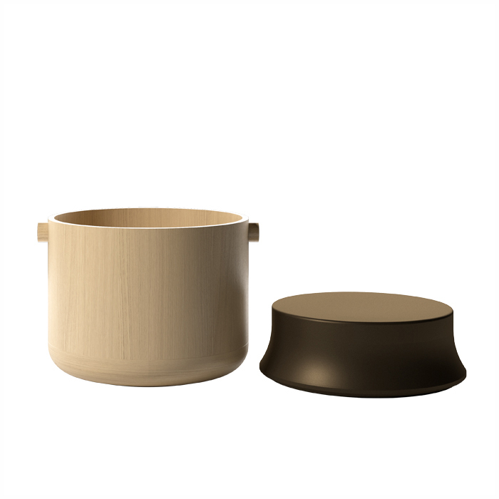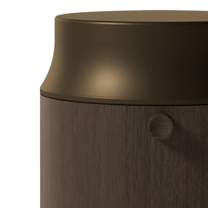 Табурет-барабан POZA 36015 - круглый шкаф из сукупиры или натурального дуба, крышка покрыта металлическим лаком. Размеры [DIA x H] в мм: 445 x 405